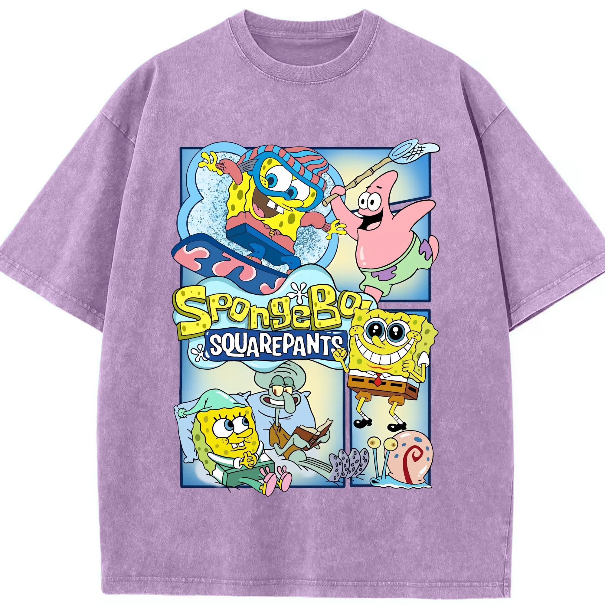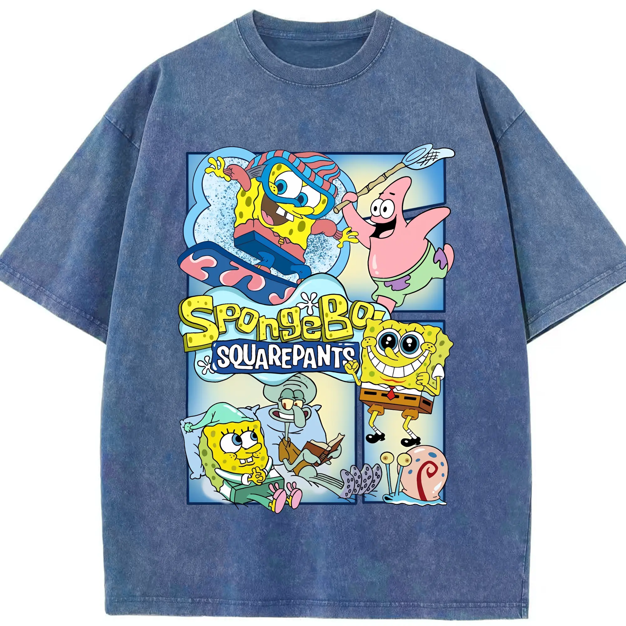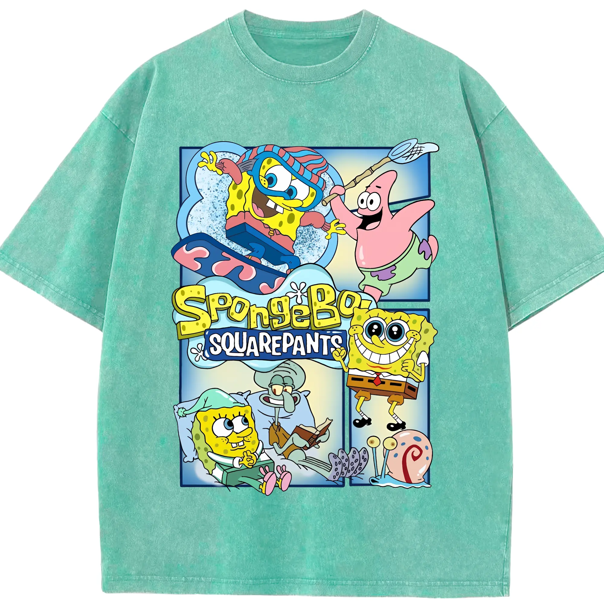 スポンジボブ グッズ スポンジボブ - 綿100% ヴィンテージ風 半袖Tシャツ ・ 背面プリント ・ 柔らか肌触り ・ 通気性 快適 ・ スポーツ カジュアル 外出用