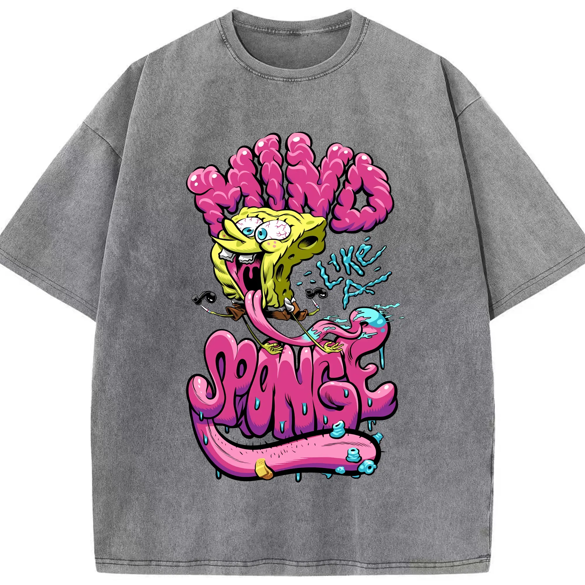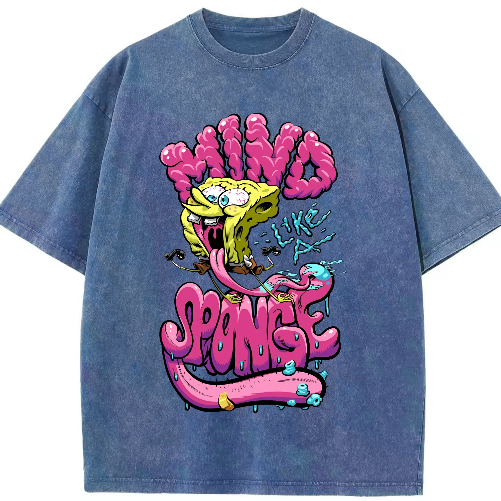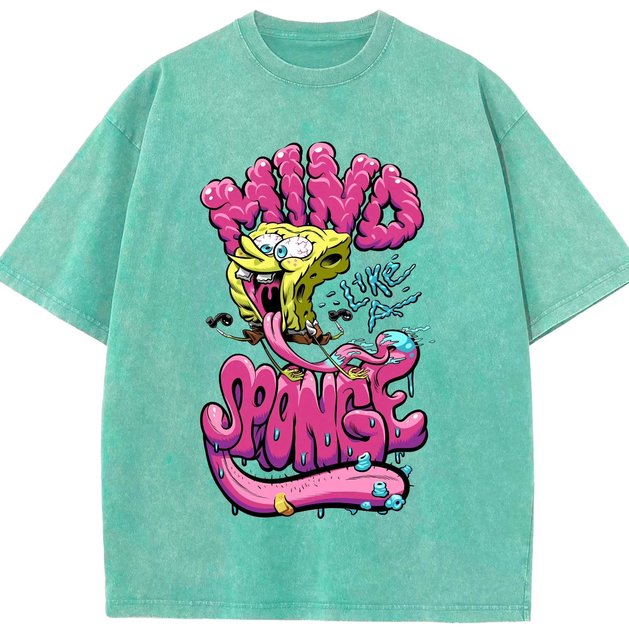 スポンジボブ グッズ スポンジボブ - 綿100% ヴィンテージ風 半袖Tシャツ ・ 背面プリント ・ 柔らか肌触り ・ 通気性 快適 ・ スポーツ カジュアル 外出用