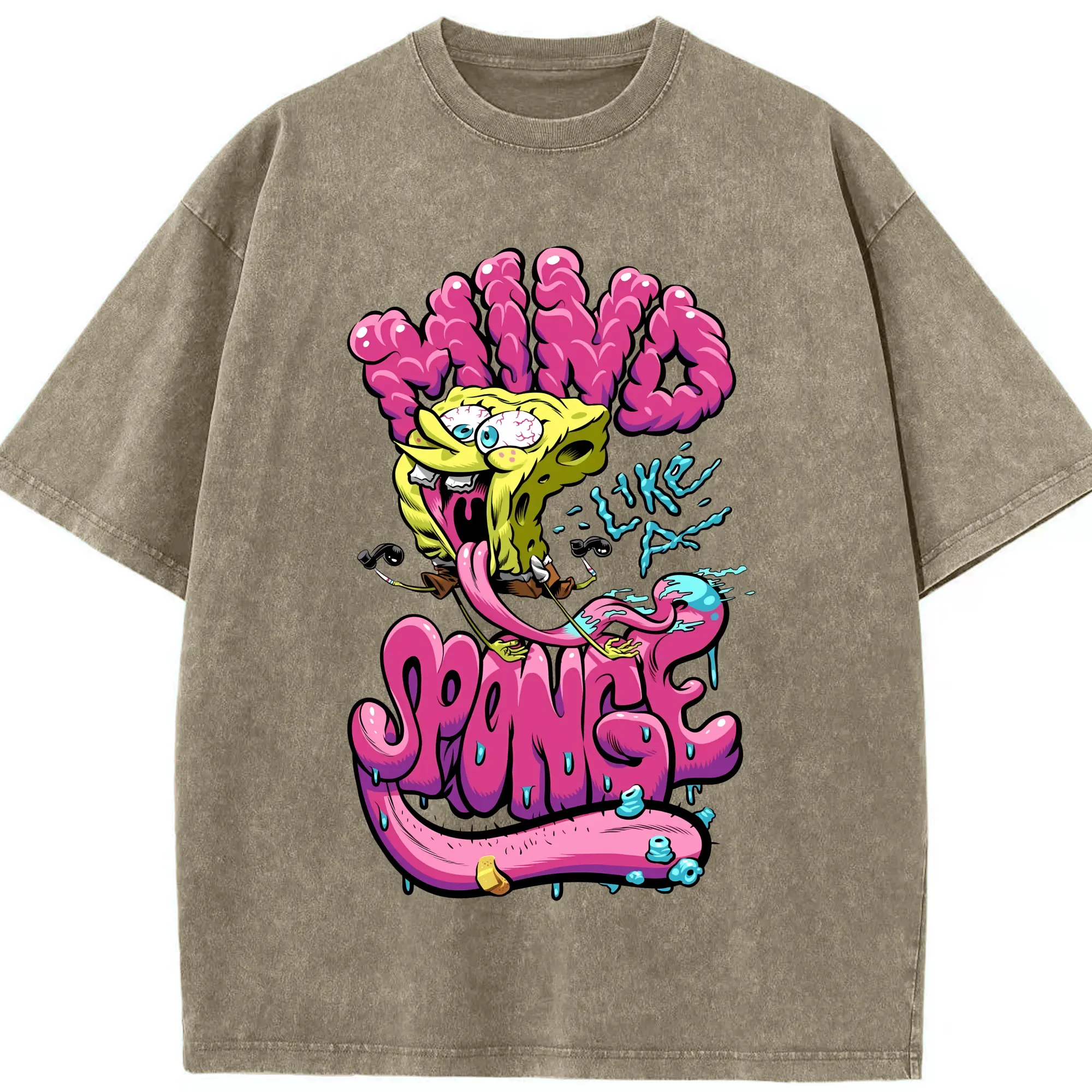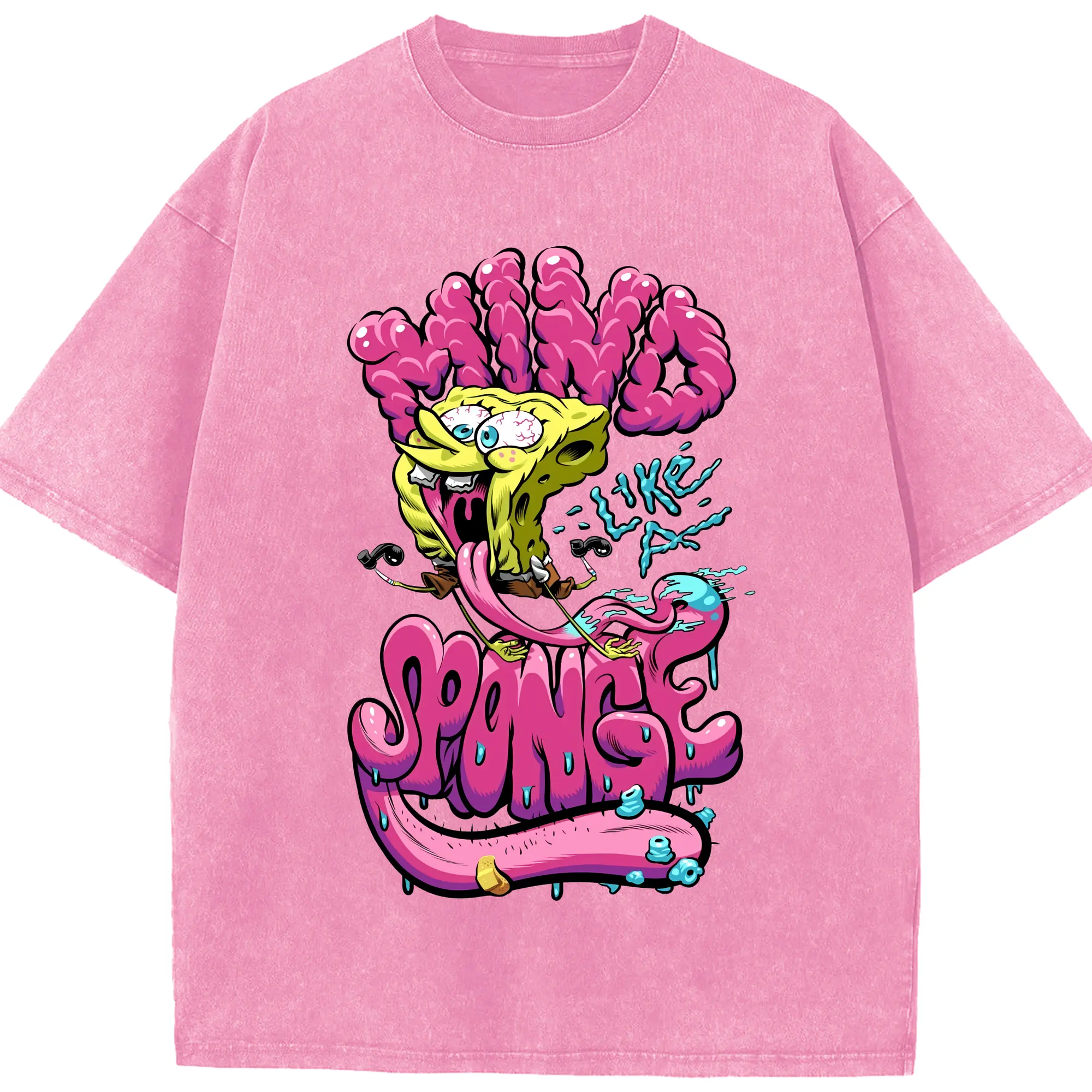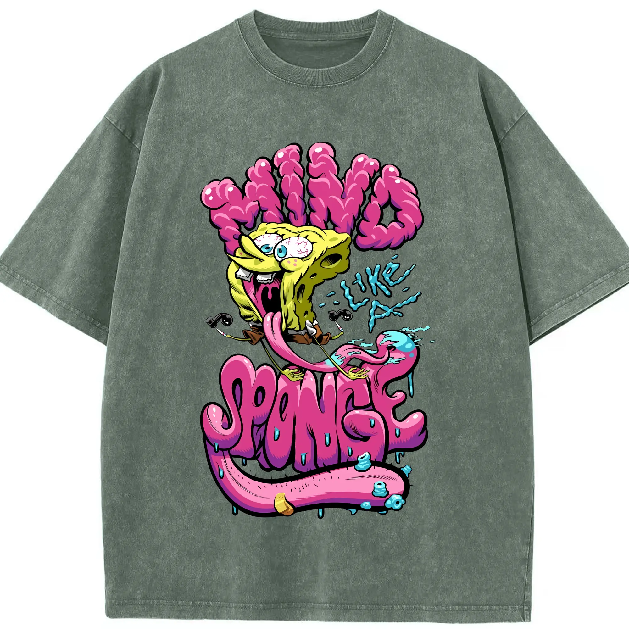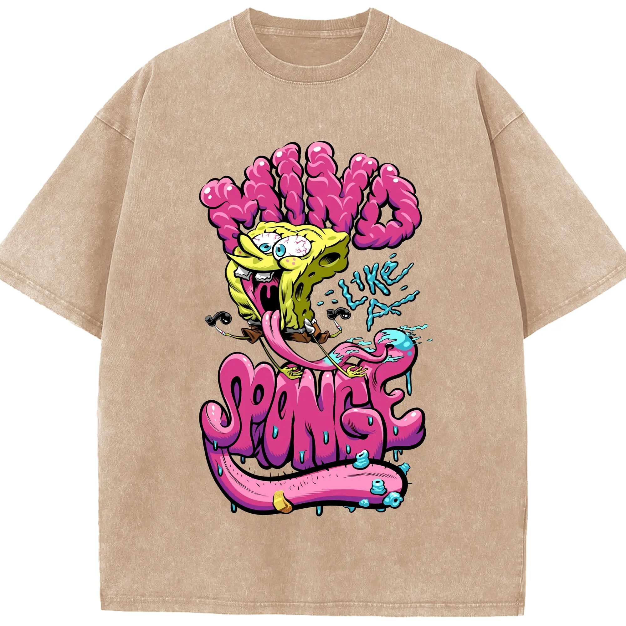 スポンジボブ グッズ スポンジボブ - 綿100% ヴィンテージ風 半袖Tシャツ ・ 背面プリント ・ 柔らか肌触り ・ 通気性 快適 ・ スポーツ カジュアル 外出用
