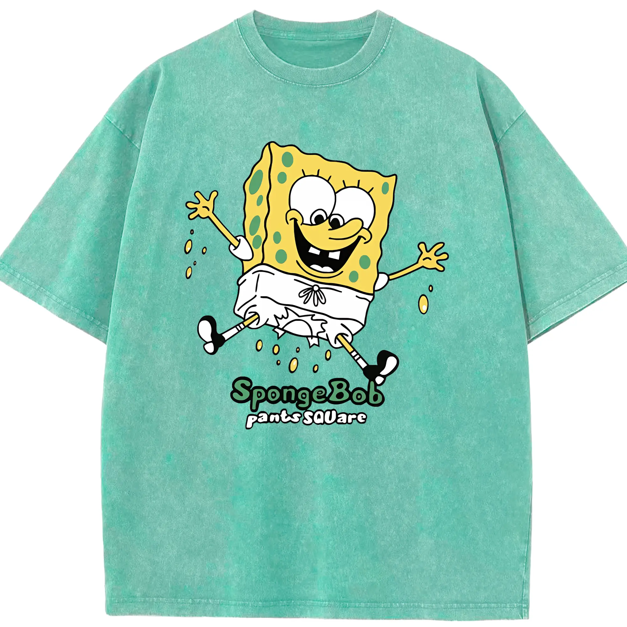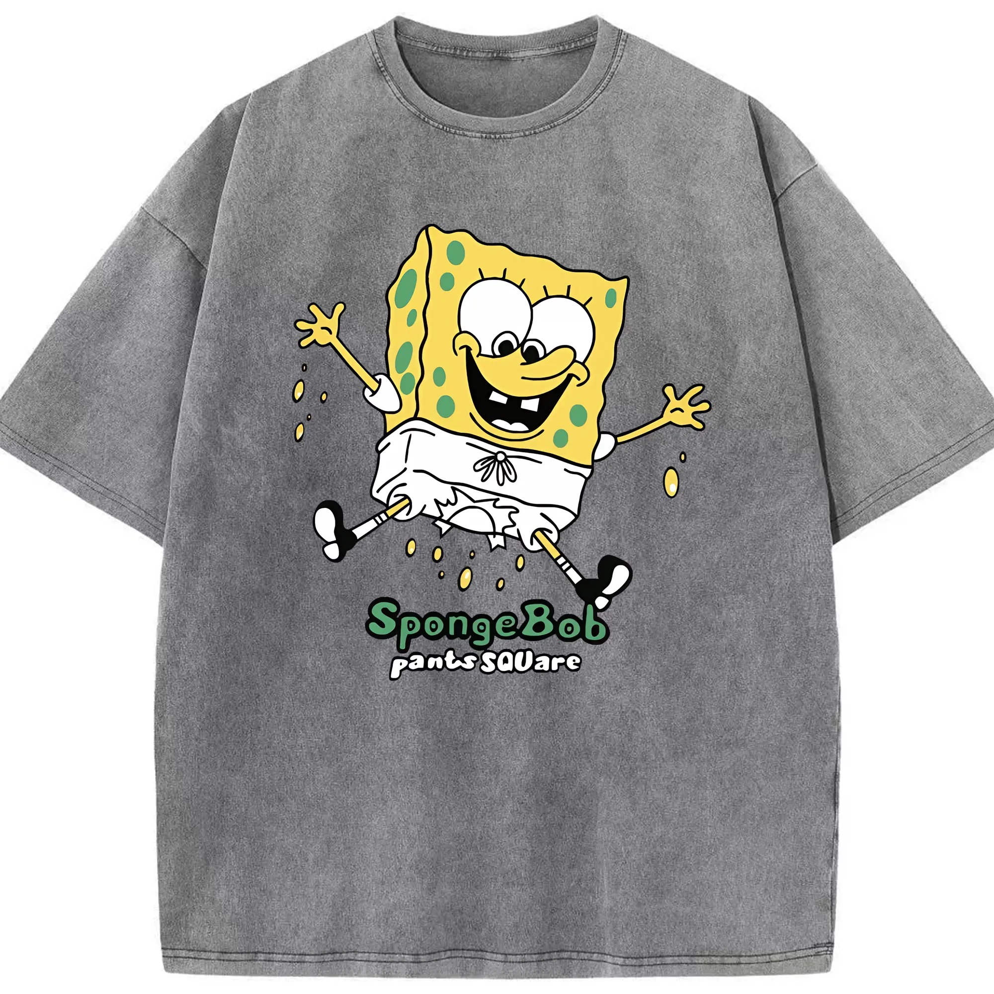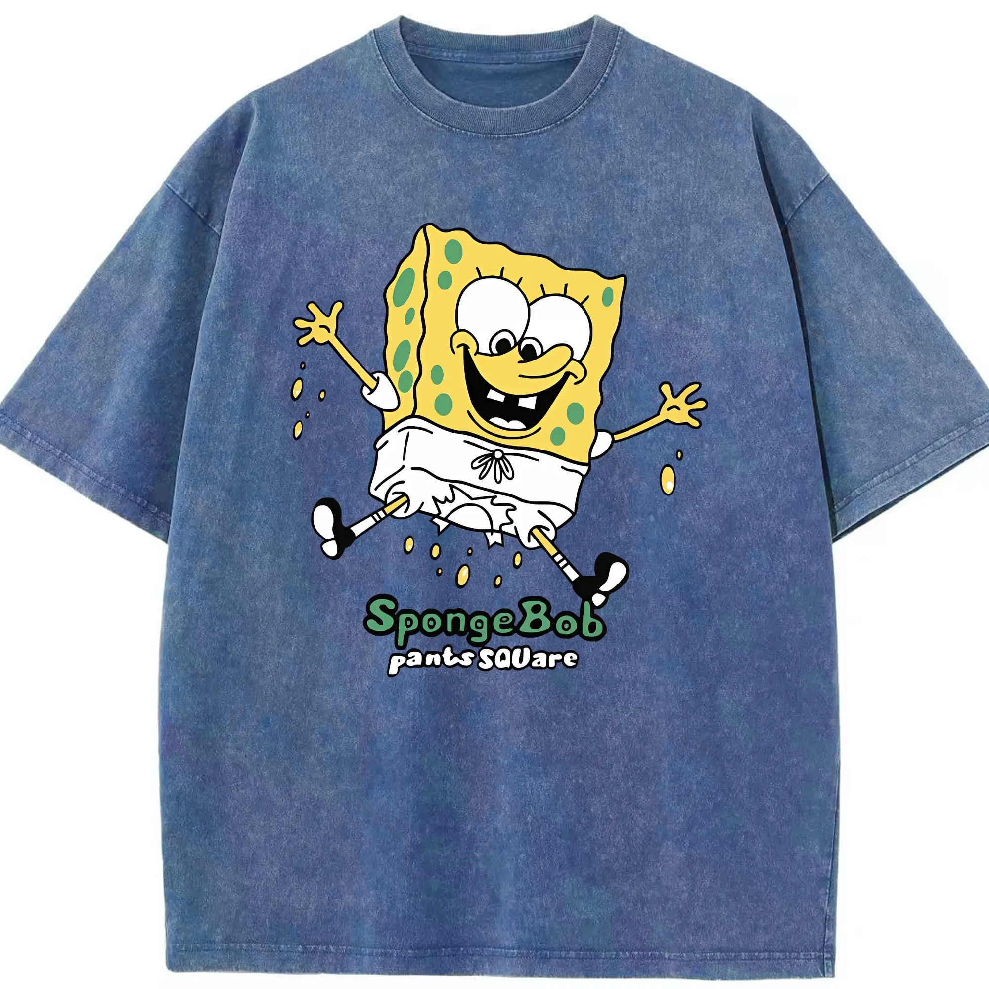 スポンジボブ グッズ スポンジボブ - 綿100% ヴィンテージ風 半袖Tシャツ ・ 背面プリント ・ 柔らか肌触り ・ 通気性 快適 ・ スポーツ カジュアル 外出用