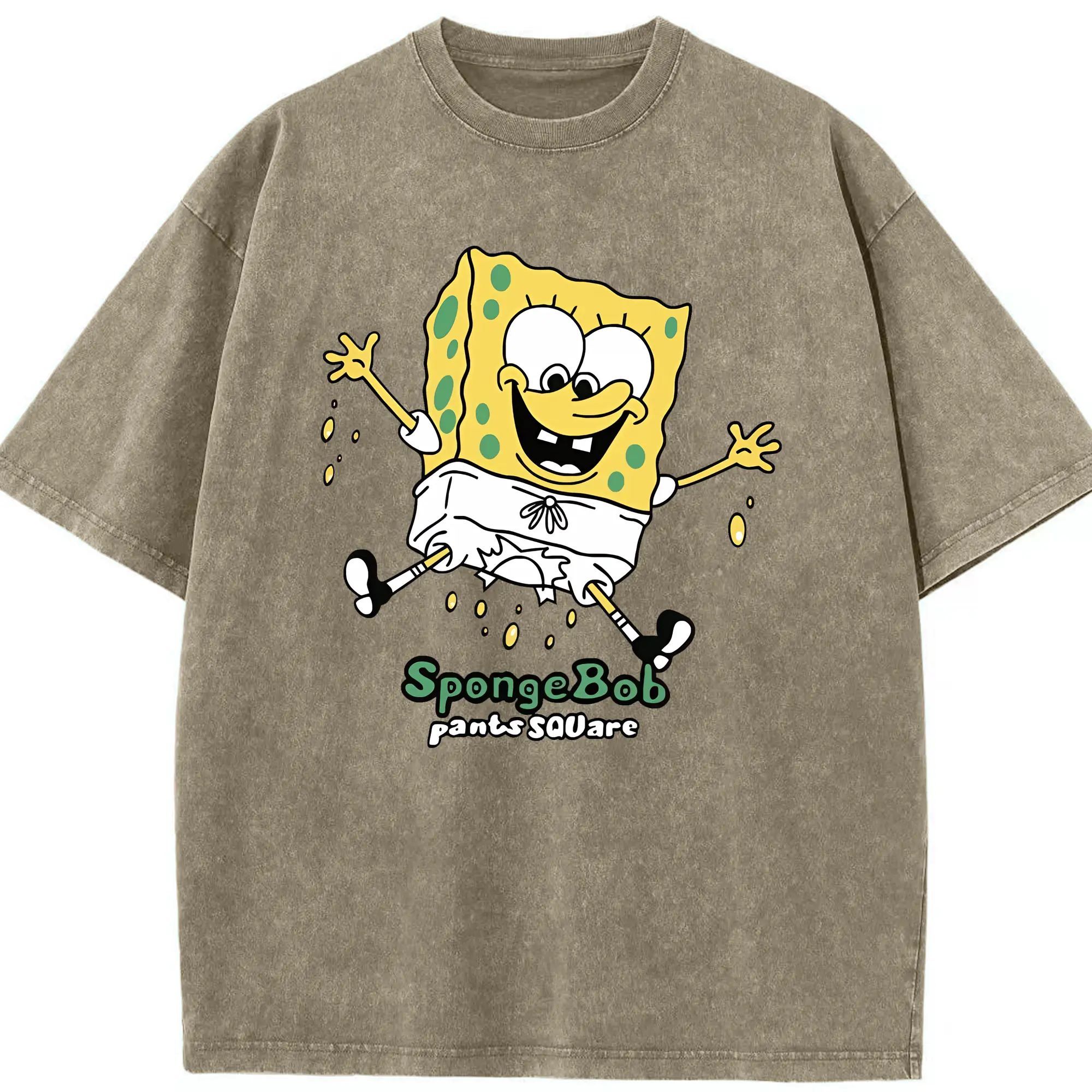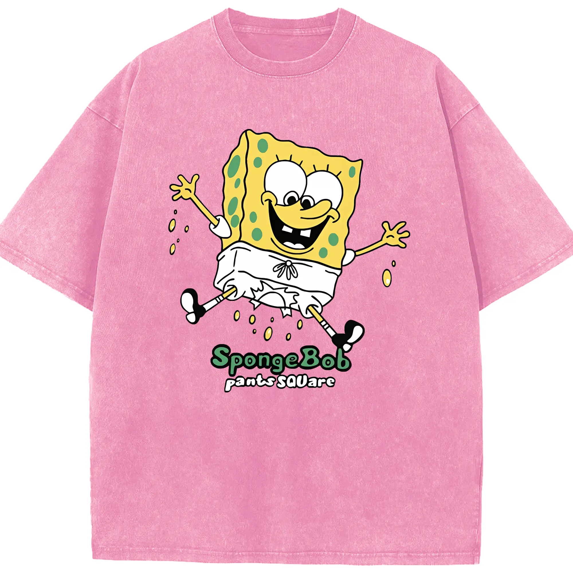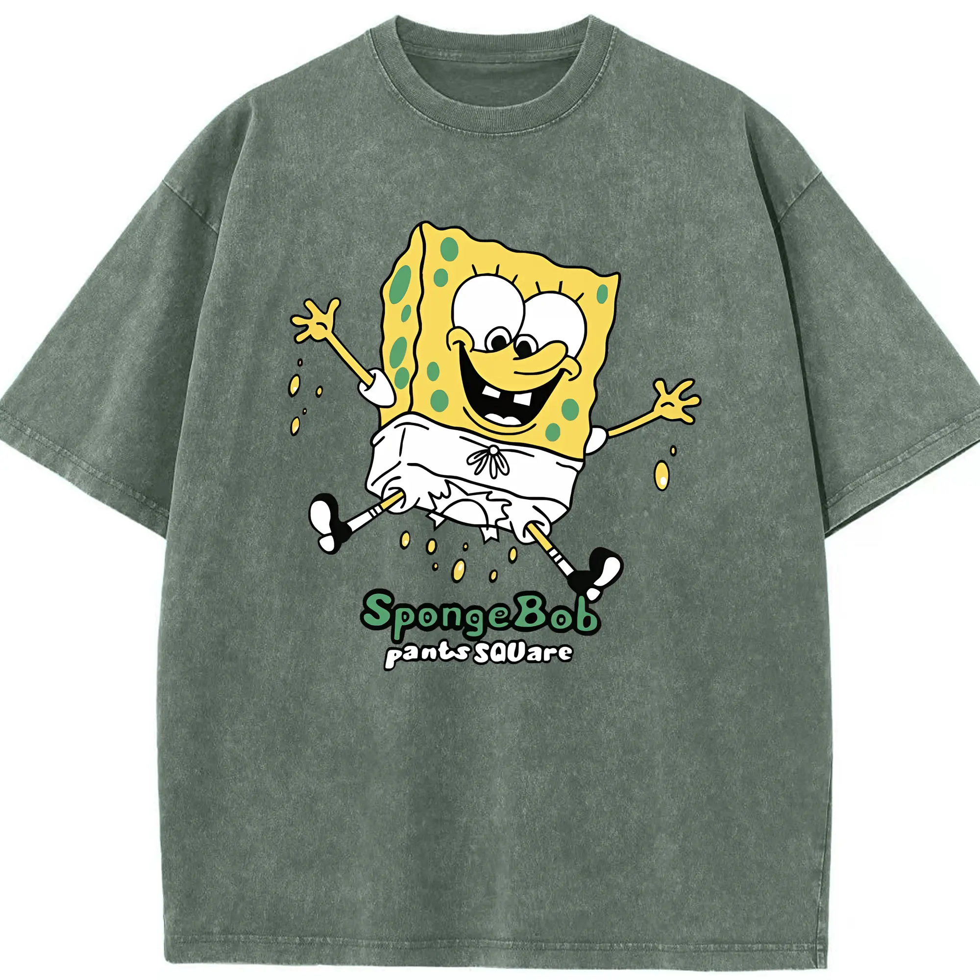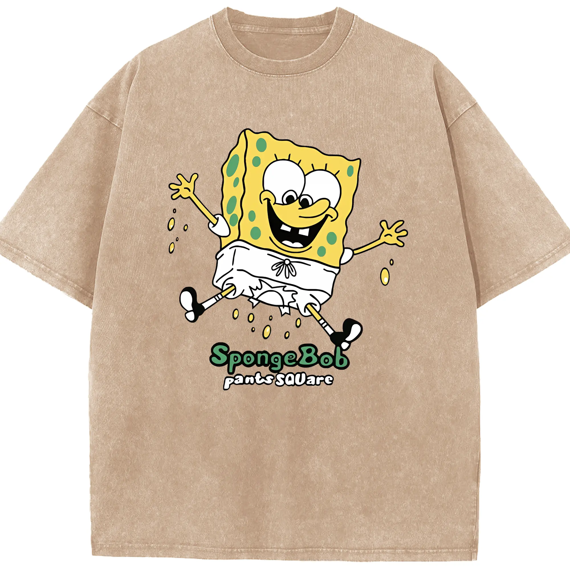 スポンジボブ グッズ スポンジボブ - 綿100% ヴィンテージ風 半袖Tシャツ ・ 背面プリント ・ 柔らか肌触り ・ 通気性 快適 ・ スポーツ カジュアル 外出用