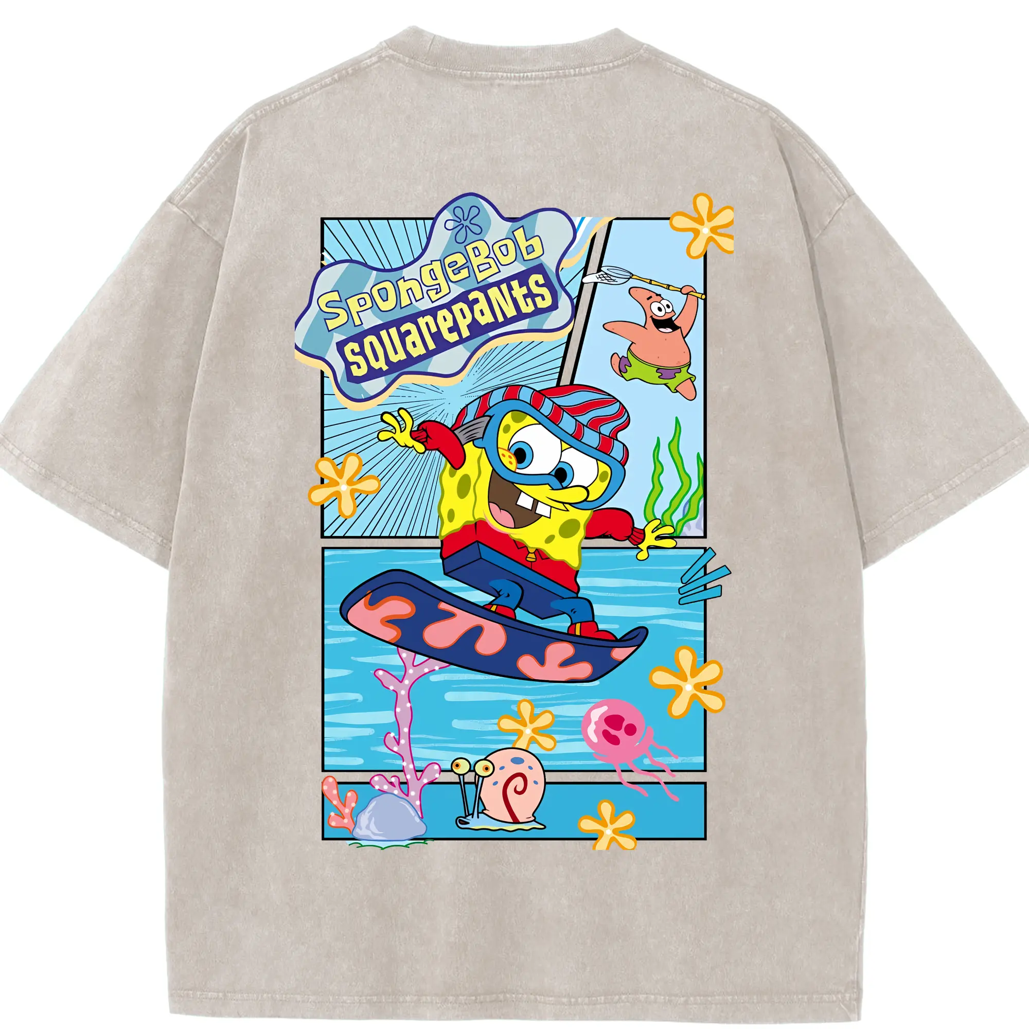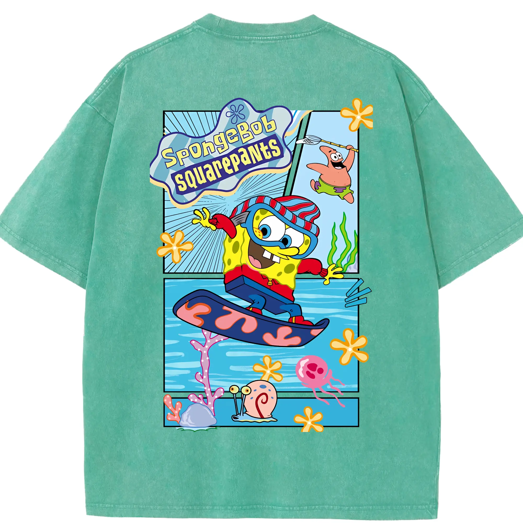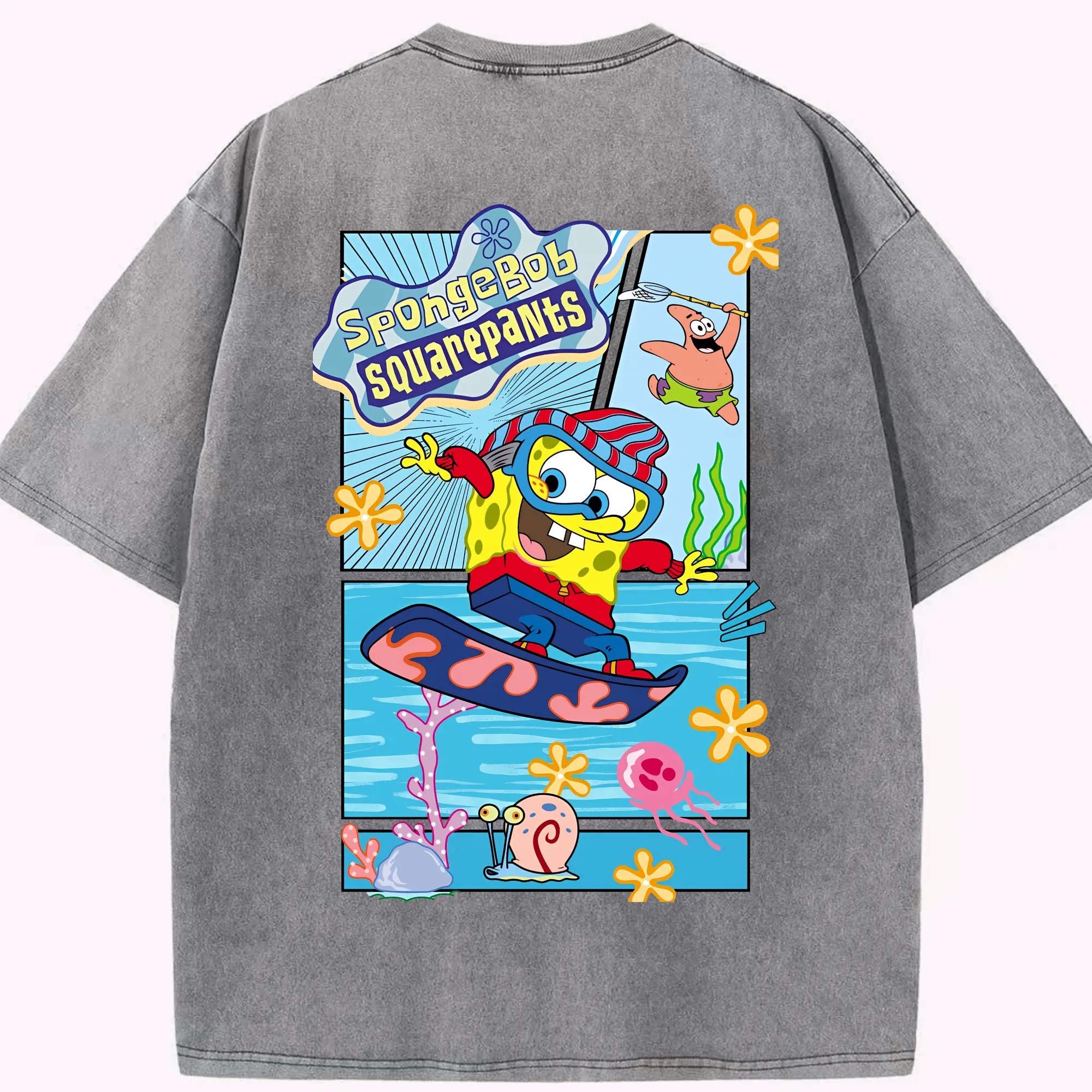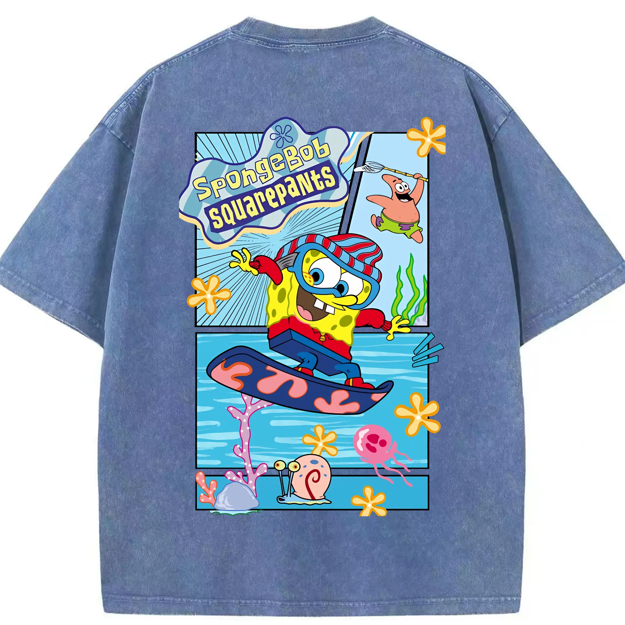 スポンジボブ グッズ スポンジボブ - 綿100% ヴィンテージ風 半袖Tシャツ ・ フロントプリント ・ 柔らか肌触り ・ 通気性 快適 ・ スポーツ カジュアル 外出用