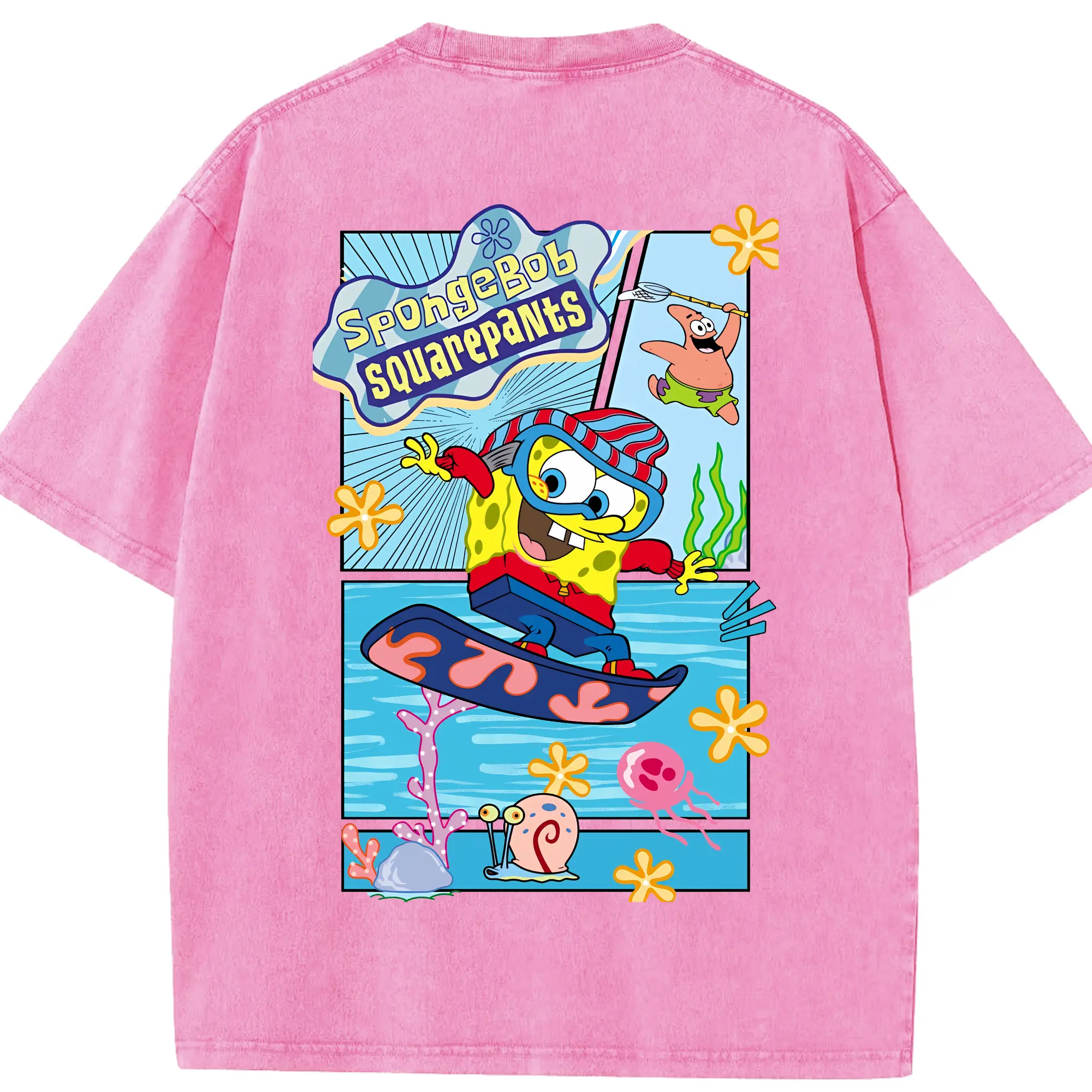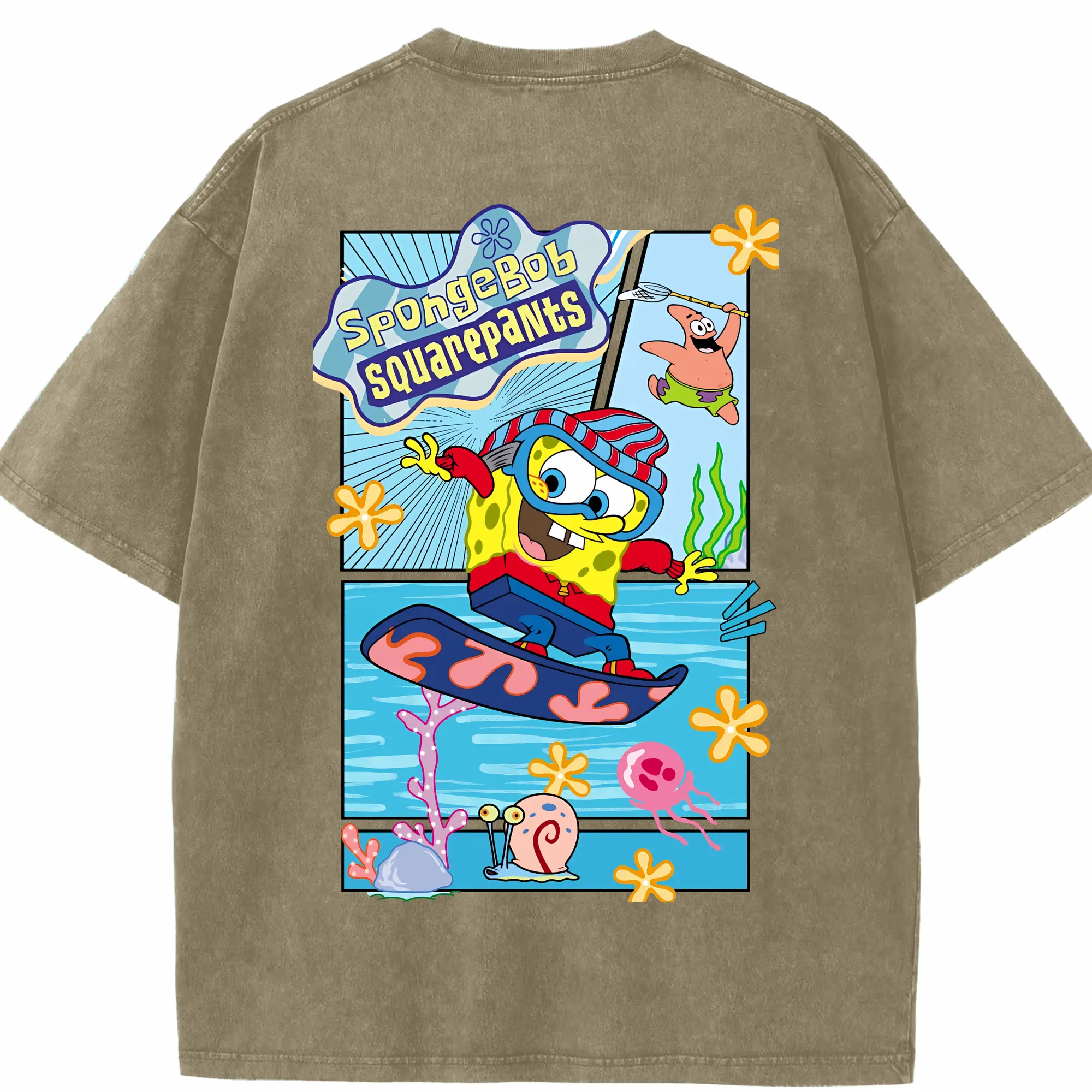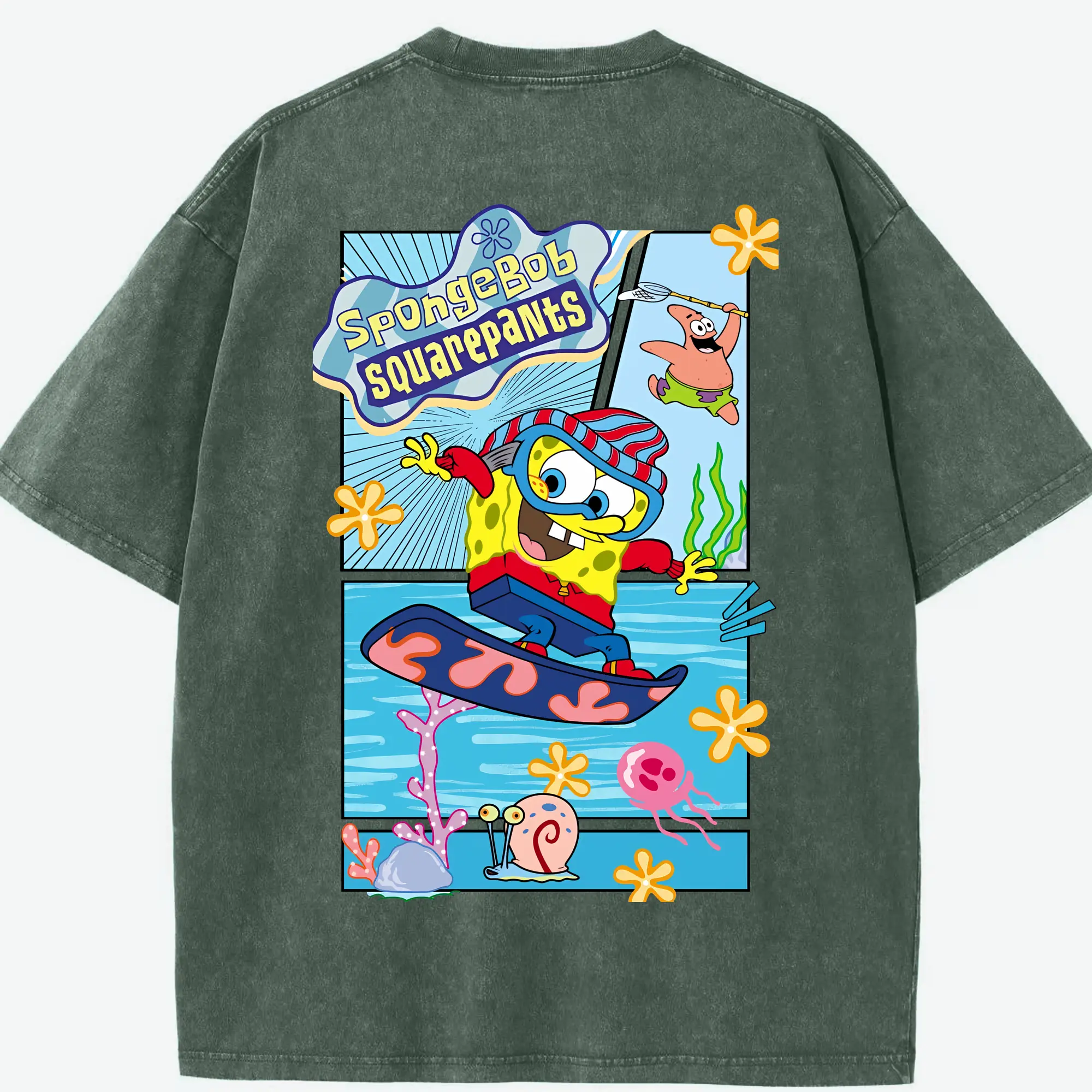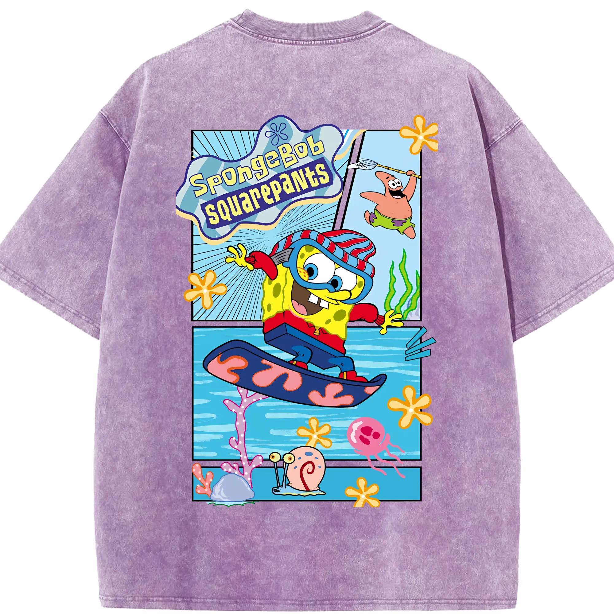 スポンジボブ グッズ スポンジボブ - 綿100% ヴィンテージ風 半袖Tシャツ ・ フロントプリント ・ 柔らか肌触り ・ 通気性 快適 ・ スポーツ カジュアル 外出用