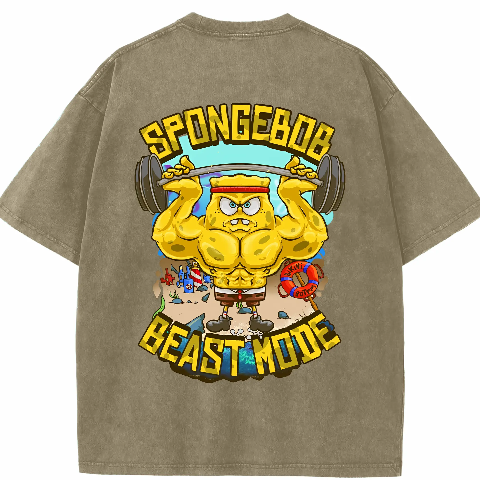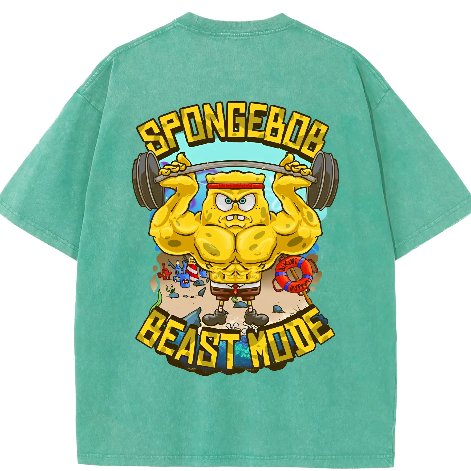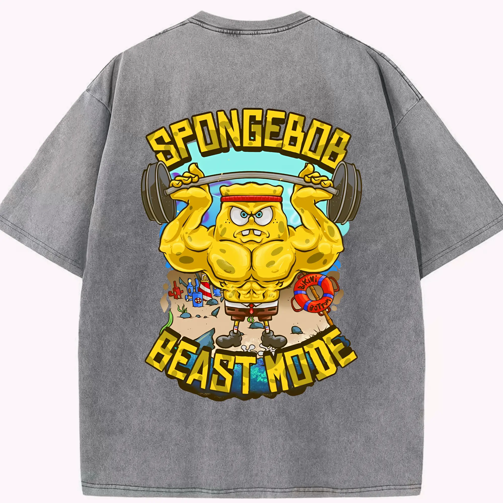 スポンジボブ グッズ スポンジボブ - 綿100% ヴィンテージ風 半袖Tシャツ ・ フロントプリント ・ 柔らか肌触り ・ 通気性 快適 ・ スポーツ カジュアル 外出用