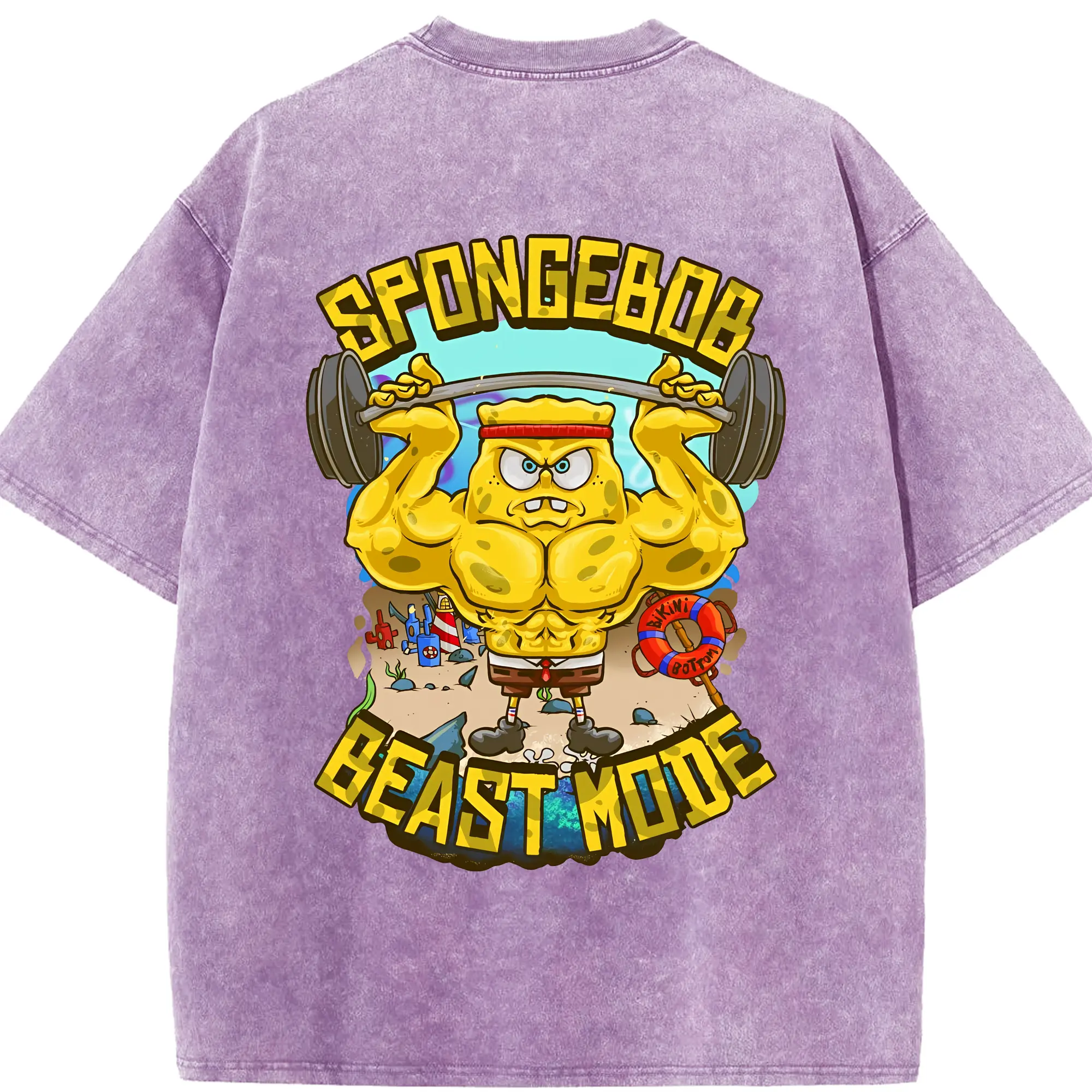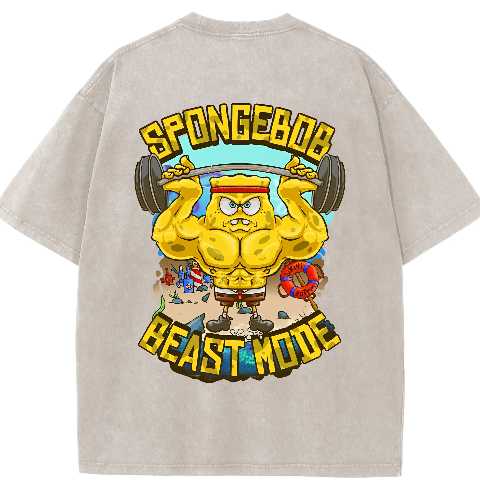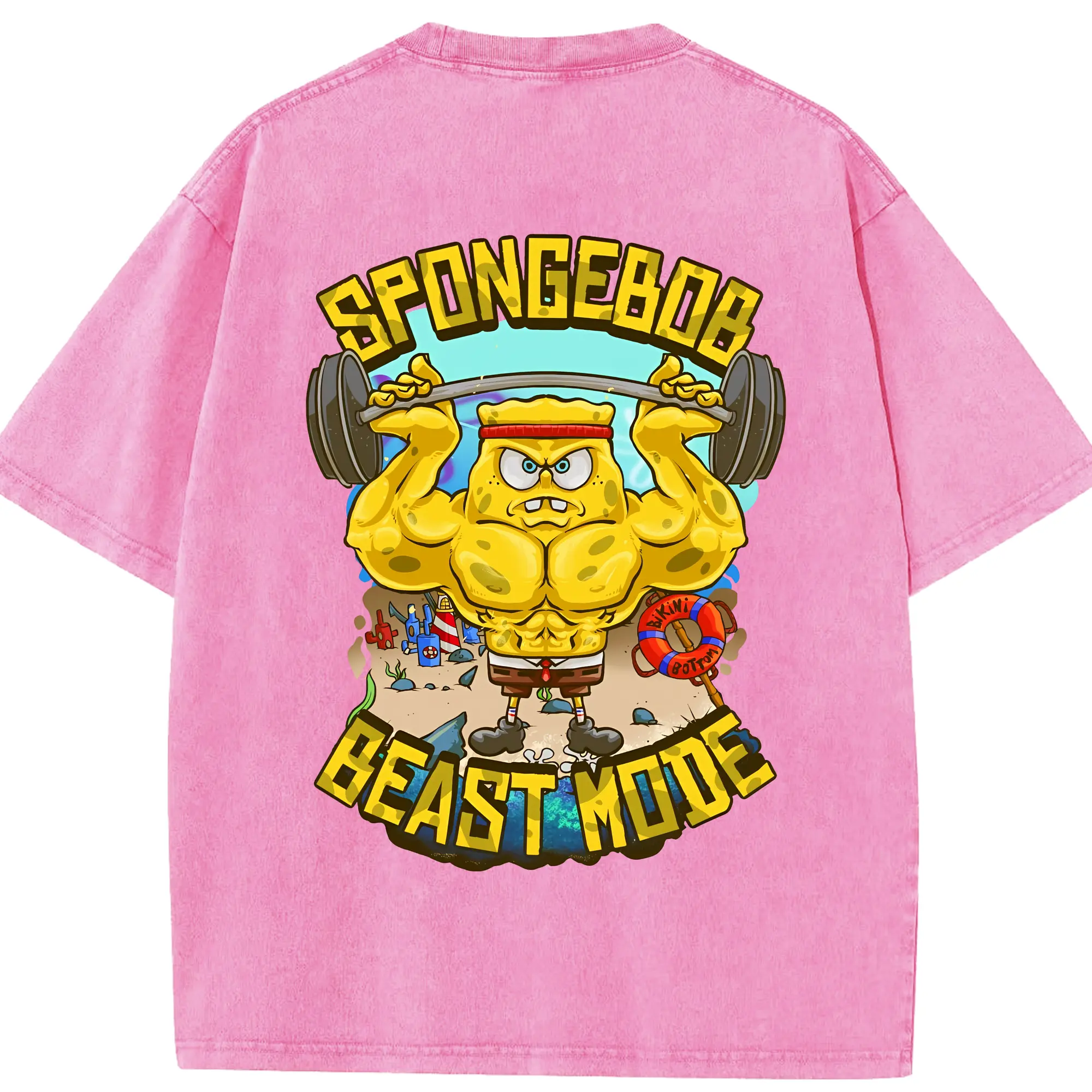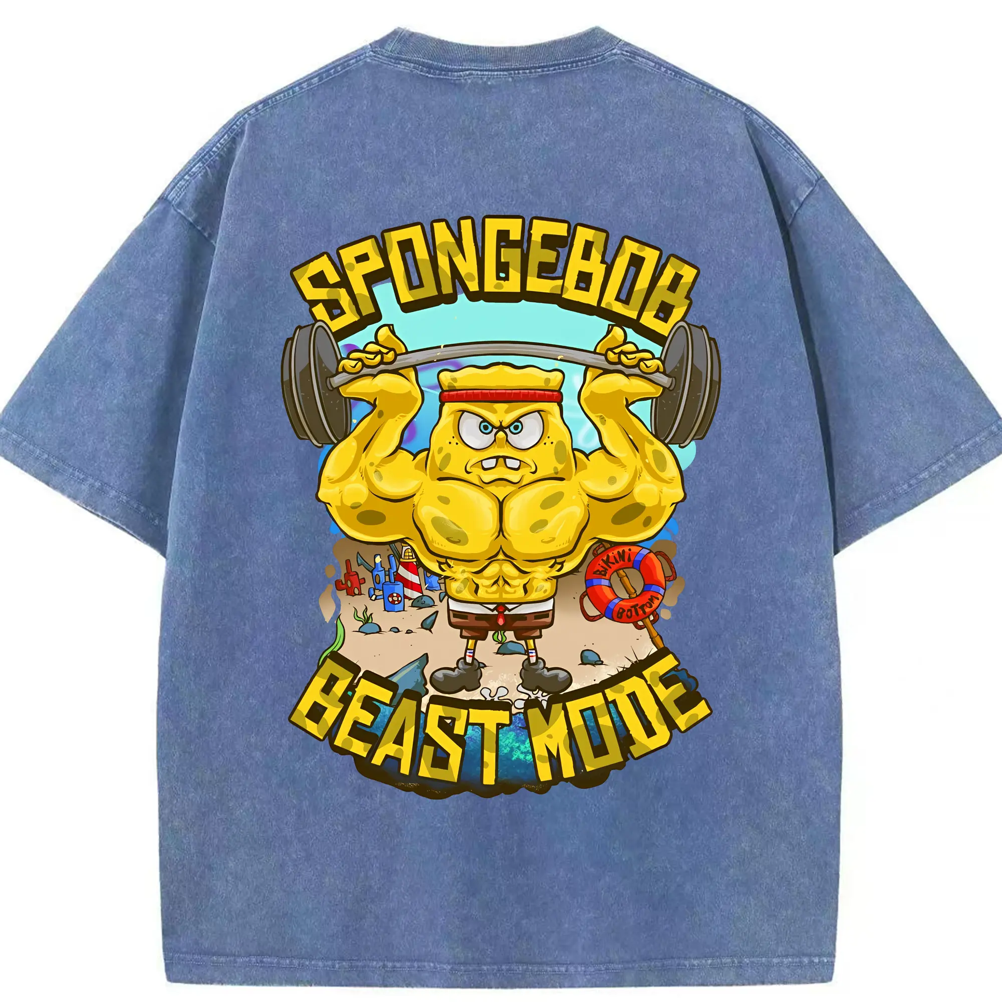 スポンジボブ グッズ スポンジボブ - 綿100% ヴィンテージ風 半袖Tシャツ ・ フロントプリント ・ 柔らか肌触り ・ 通気性 快適 ・ スポーツ カジュアル 外出用