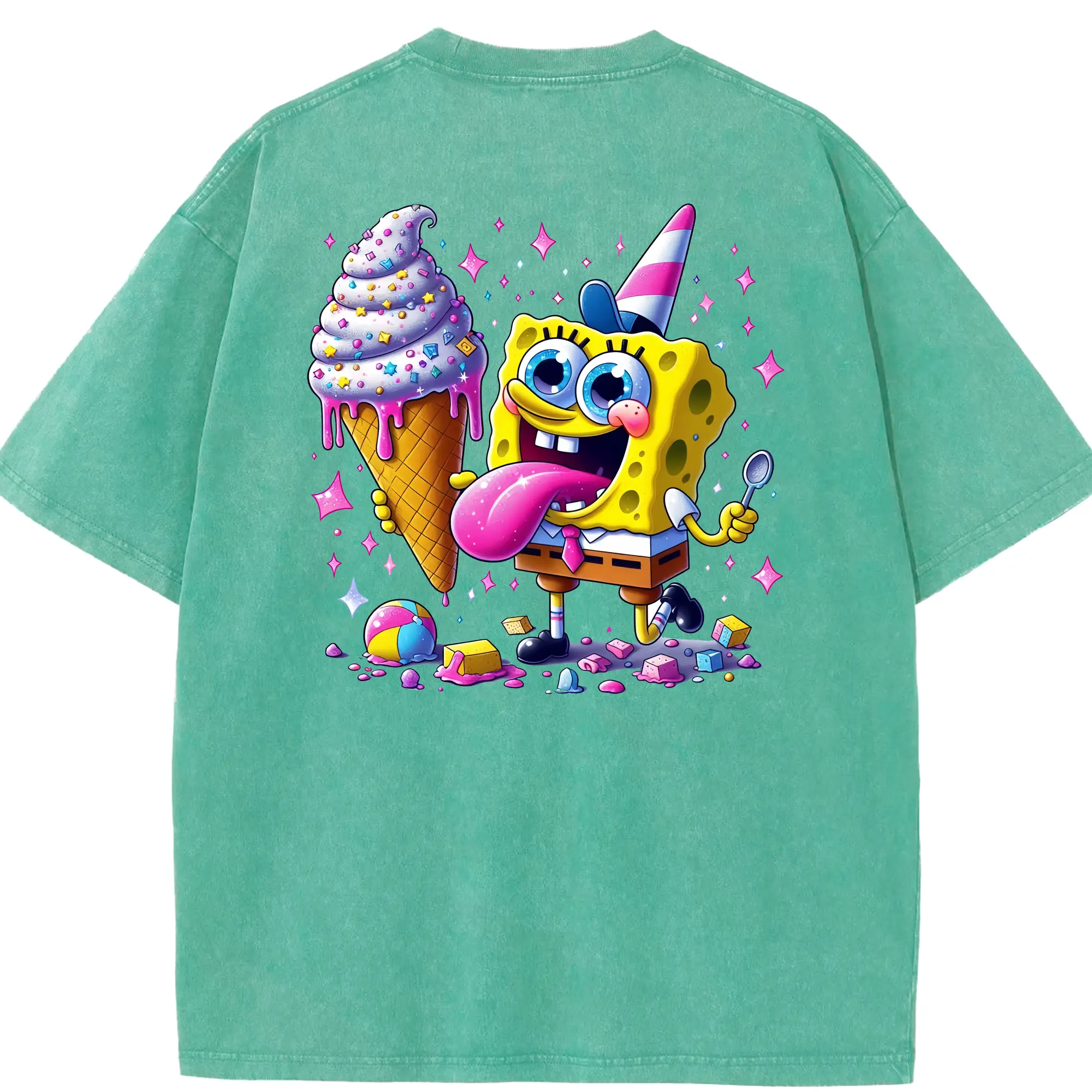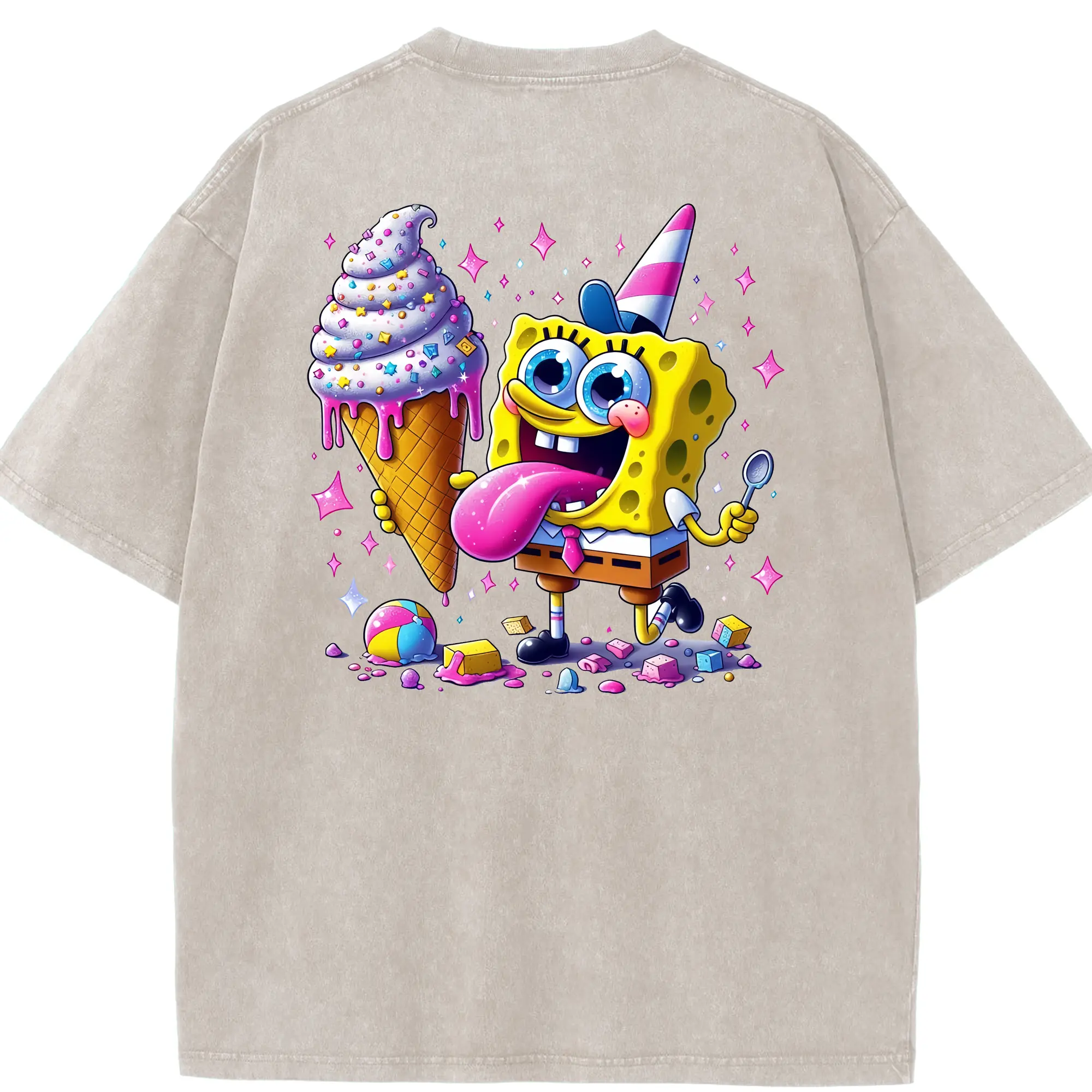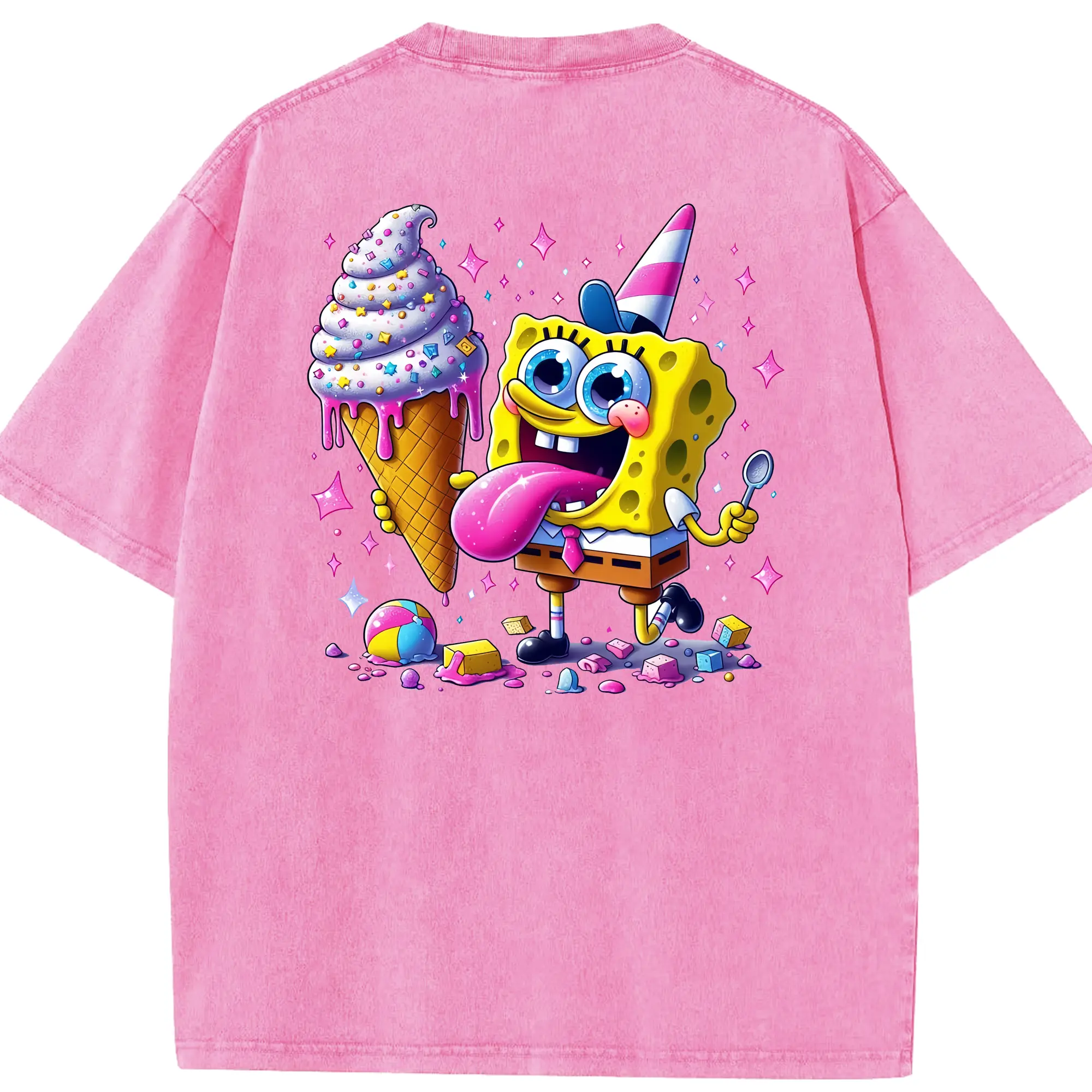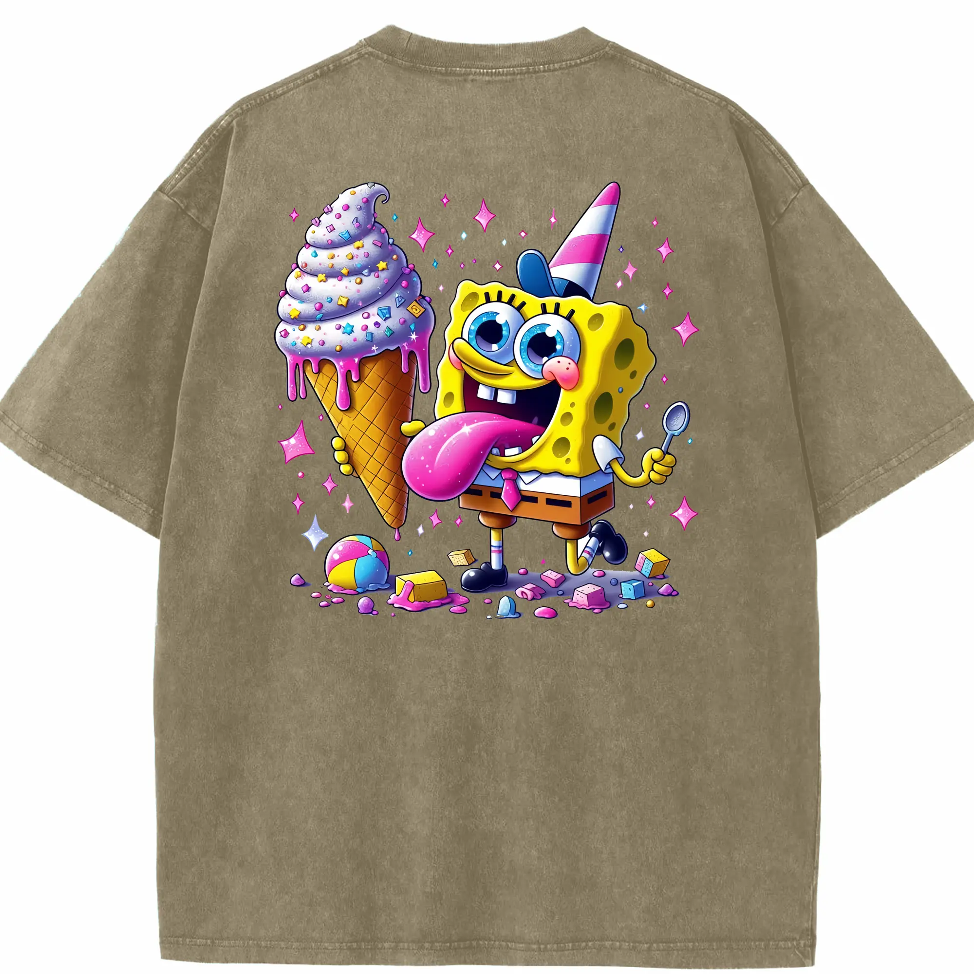 スポンジボブ グッズ スポンジボブ - 綿100% ヴィンテージ風 半袖Tシャツ ・ フロントプリント ・ 柔らか肌触り ・ 通気性 快適 ・ スポーツ カジュアル 外出用
