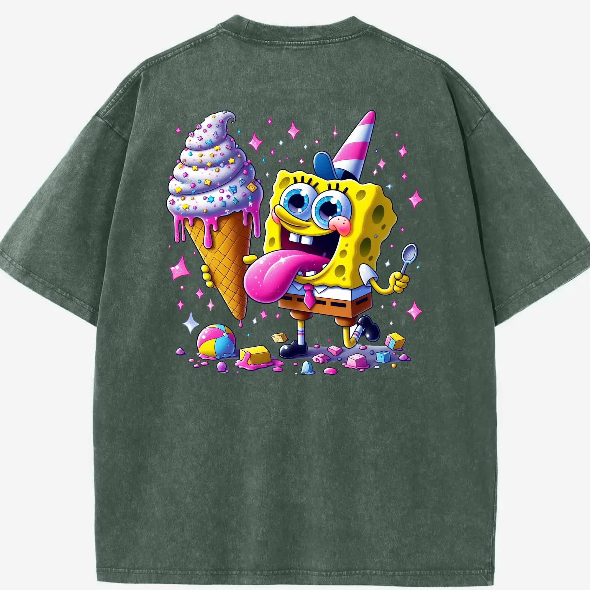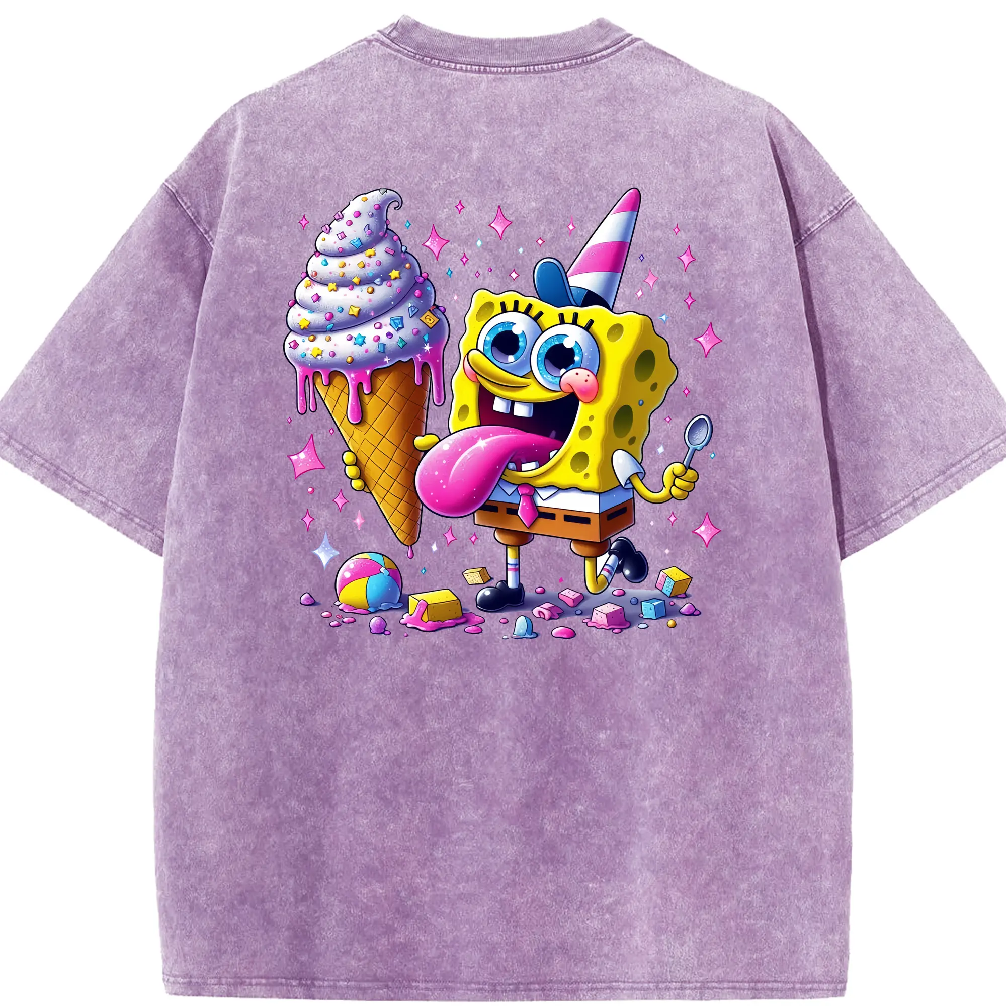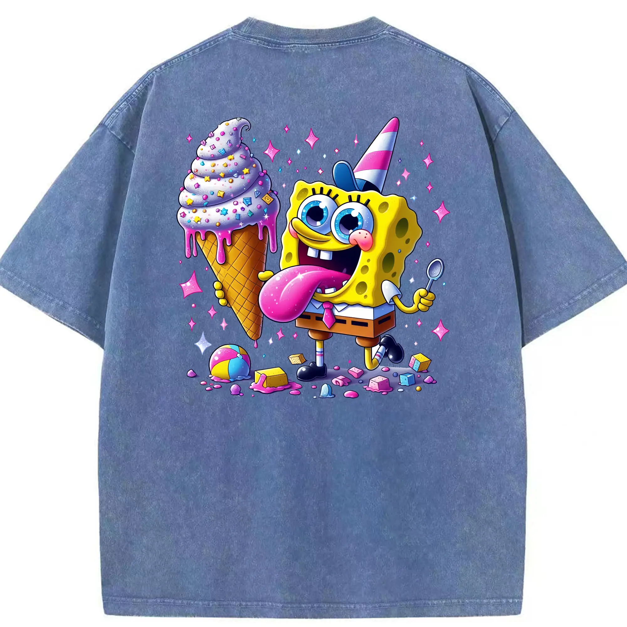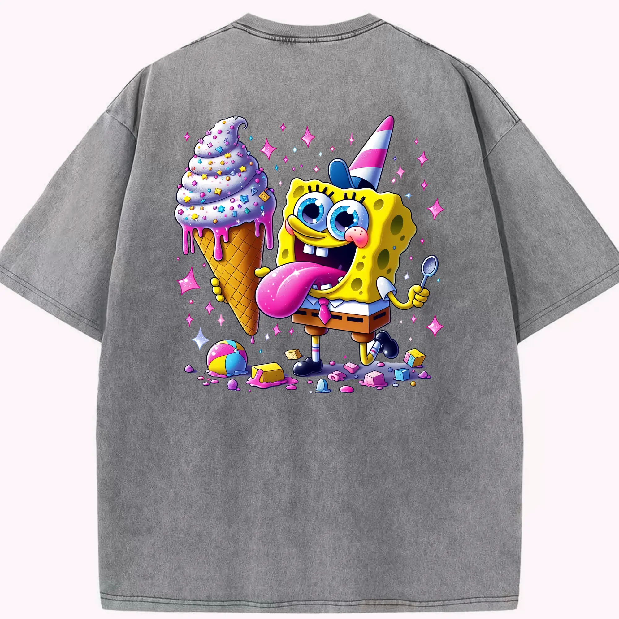 スポンジボブ グッズ スポンジボブ - 綿100% ヴィンテージ風 半袖Tシャツ ・ フロントプリント ・ 柔らか肌触り ・ 通気性 快適 ・ スポーツ カジュアル 外出用