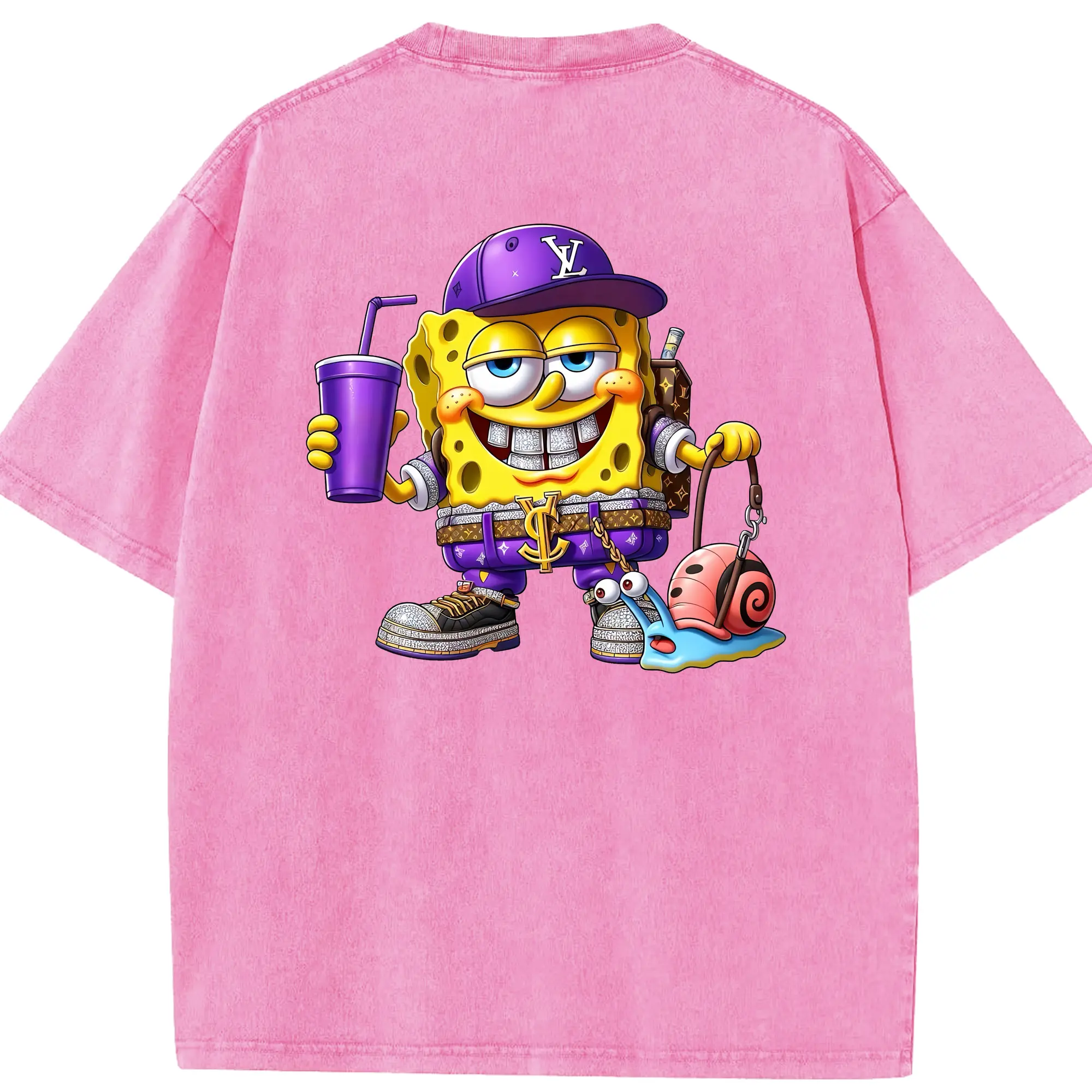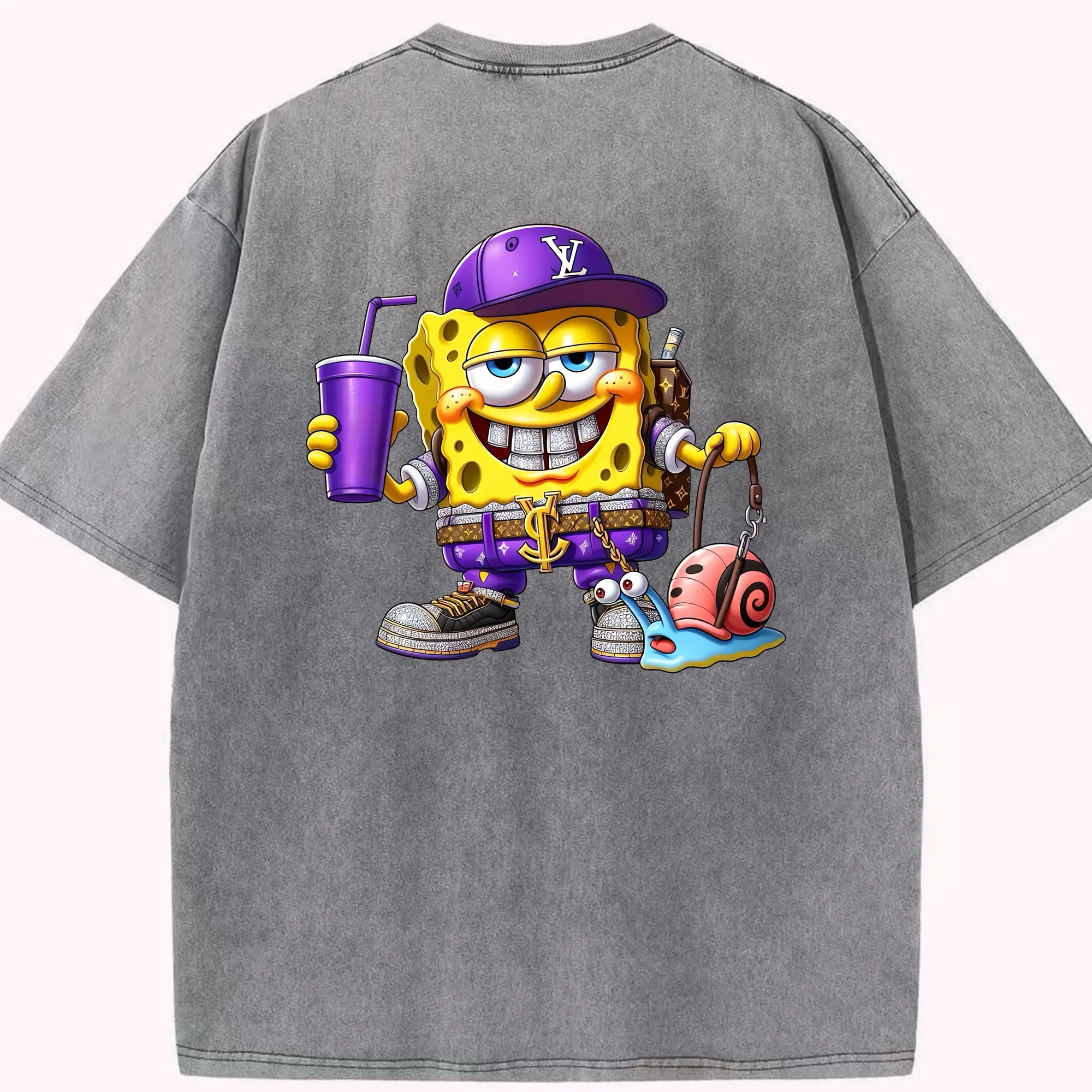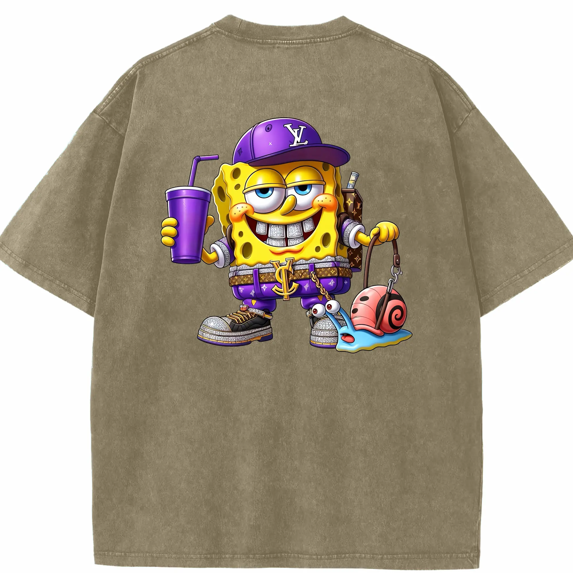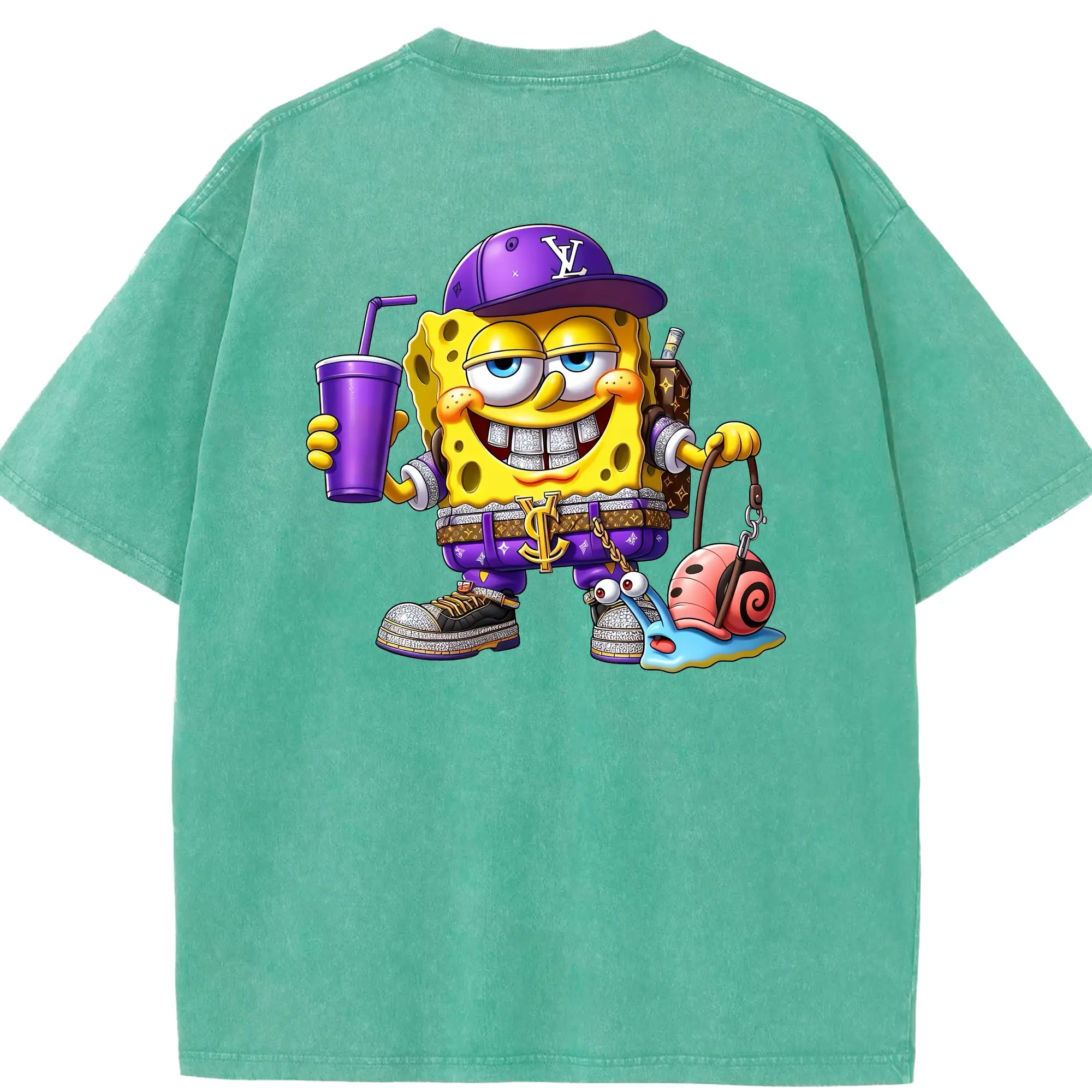 スポンジボブ グッズ スポンジボブ - 綿100% ヴィンテージ風 半袖Tシャツ ・ フロントプリント ・ 柔らか肌触り ・ 通気性 快適 ・ スポーツ カジュアル 外出用