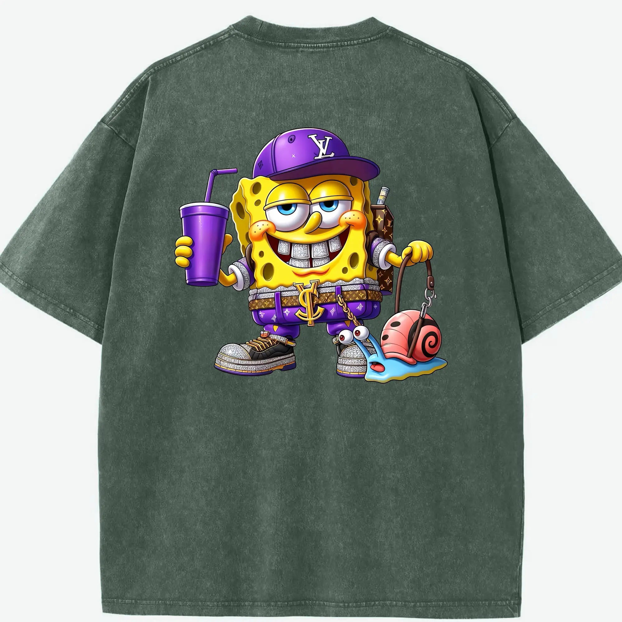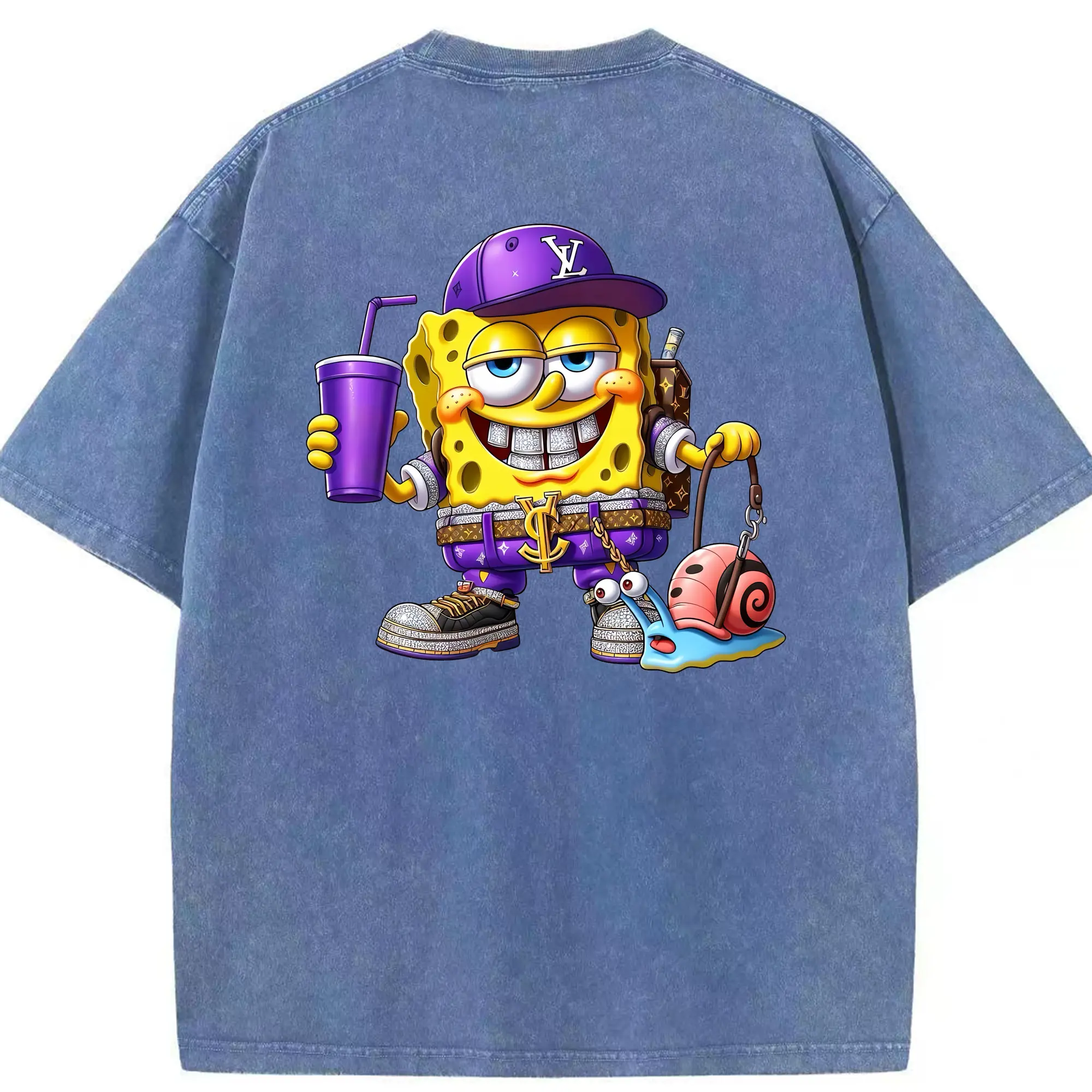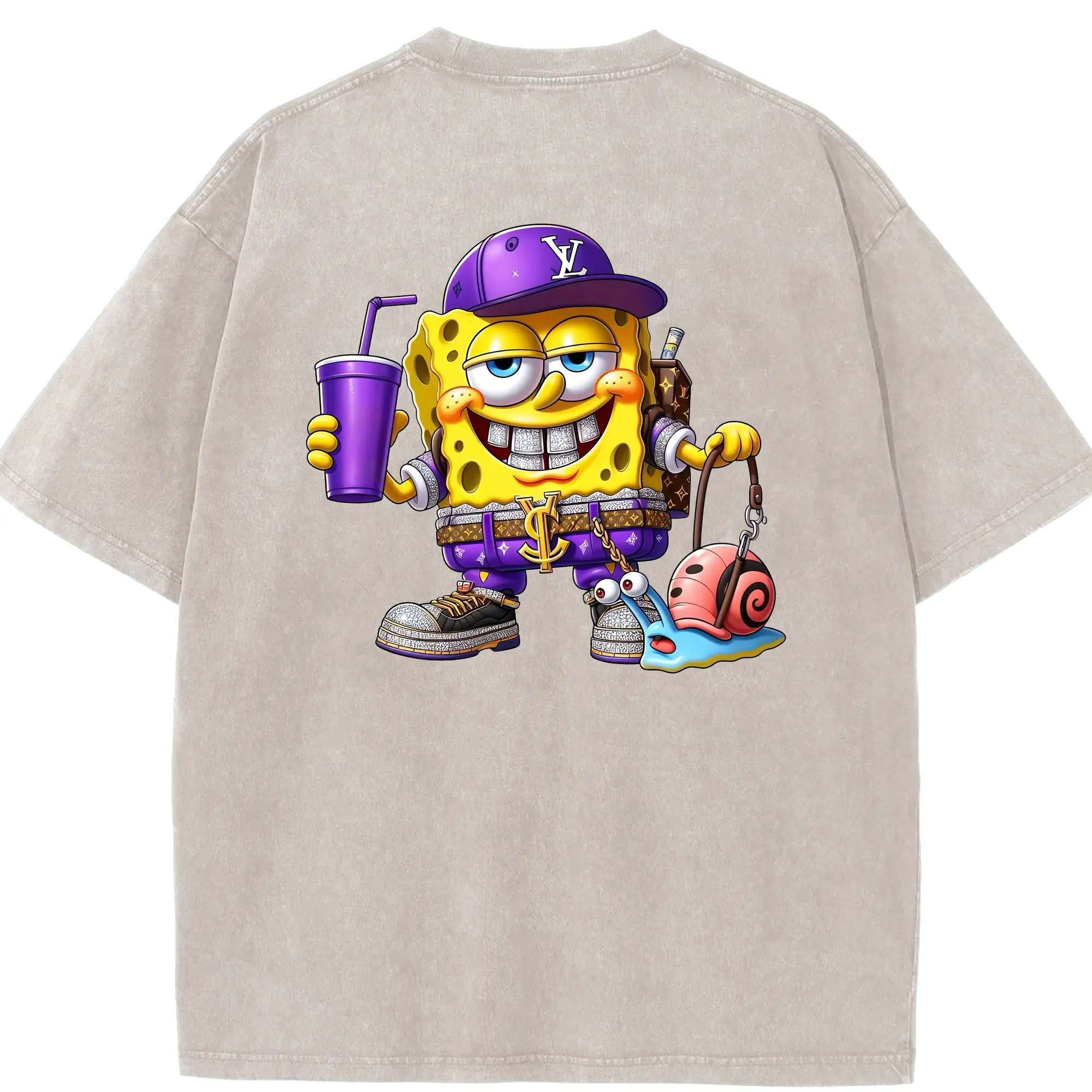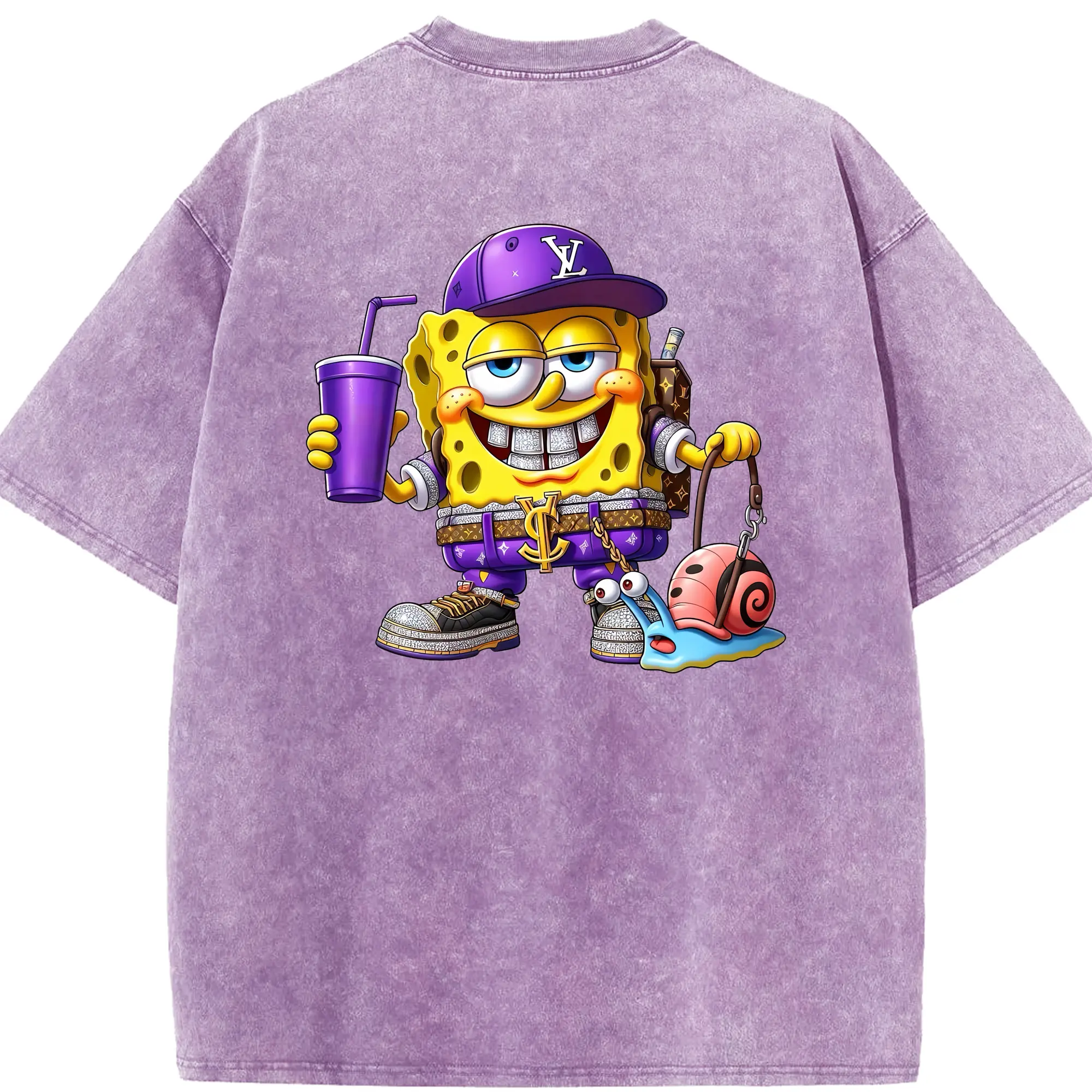 スポンジボブ グッズ スポンジボブ - 綿100% ヴィンテージ風 半袖Tシャツ ・ フロントプリント ・ 柔らか肌触り ・ 通気性 快適 ・ スポーツ カジュアル 外出用