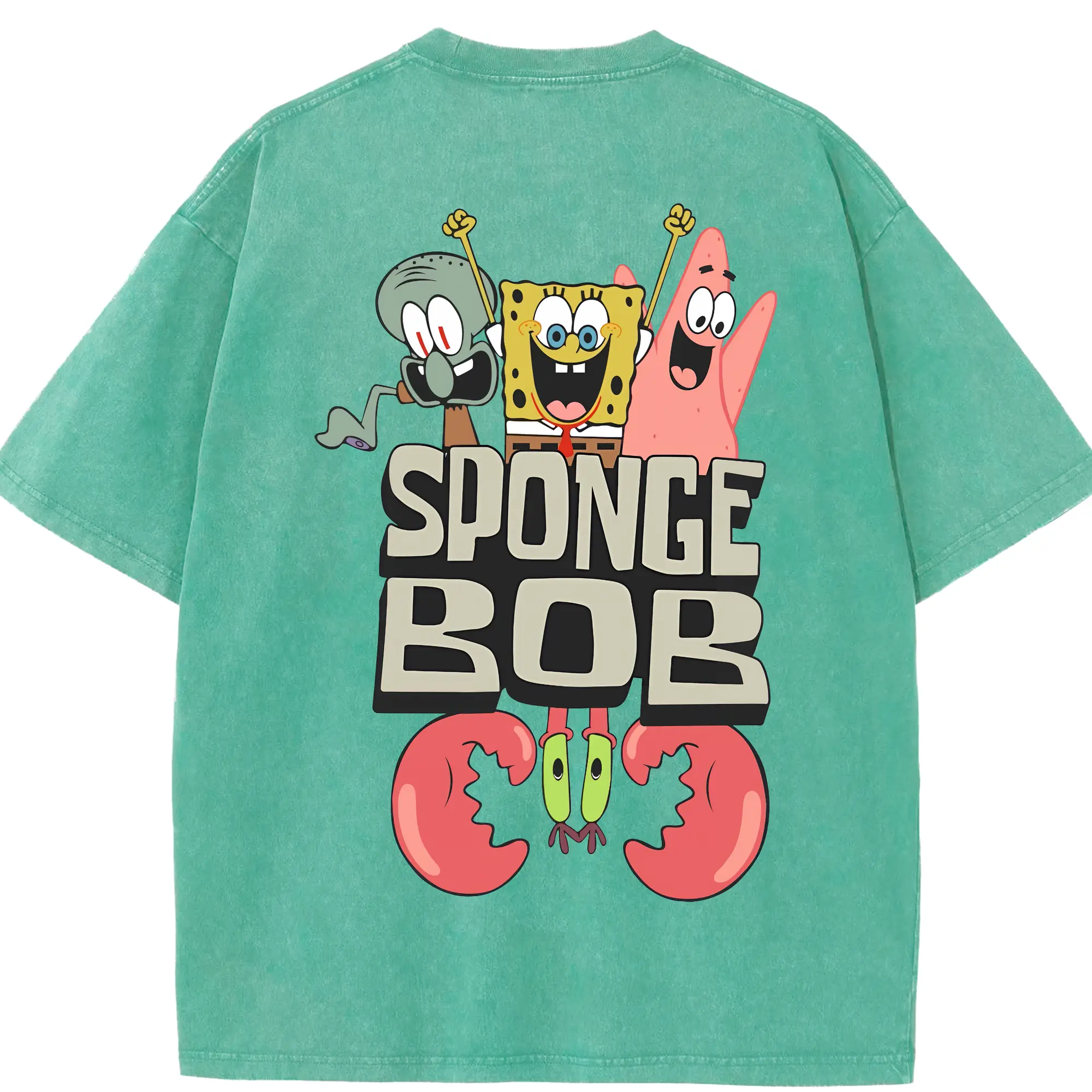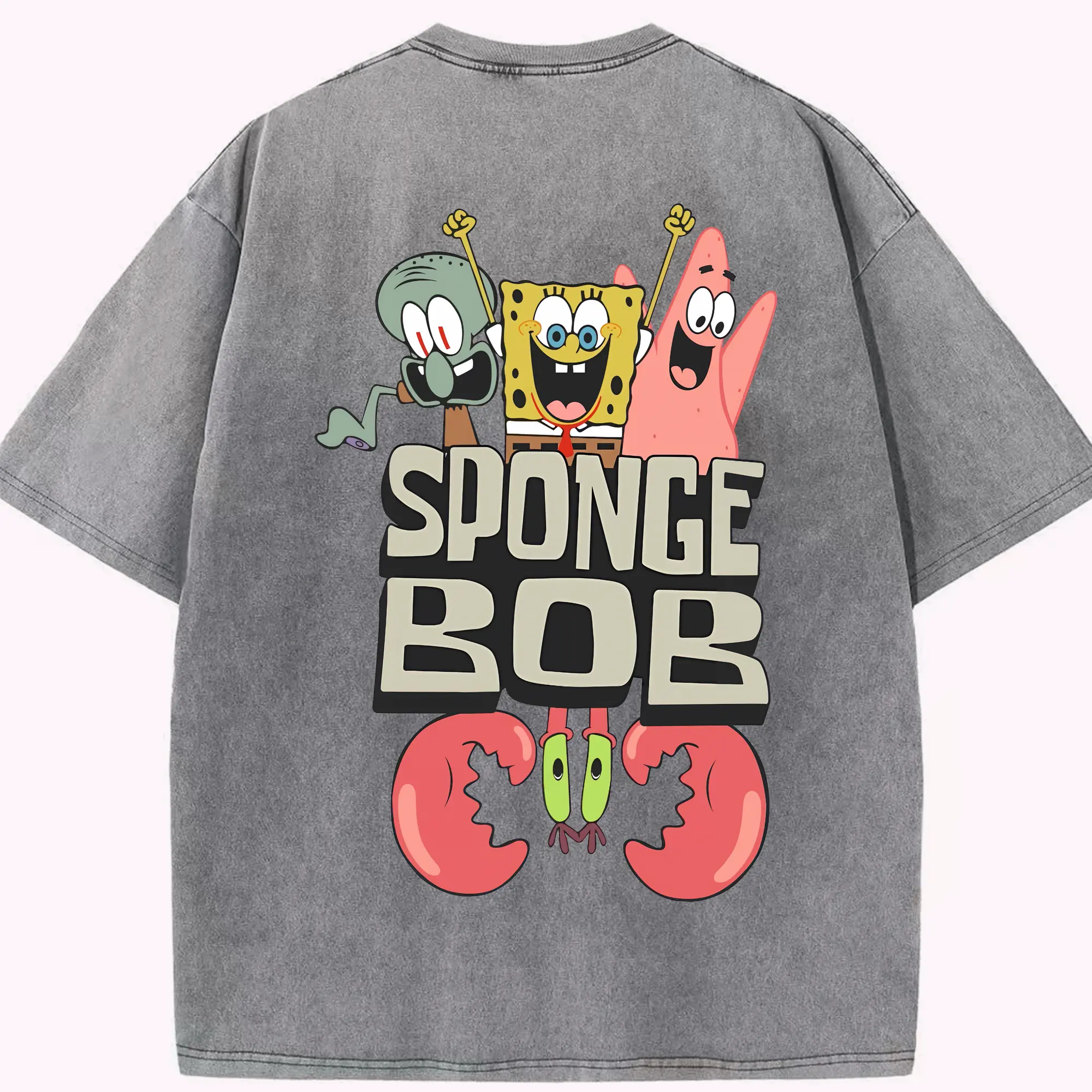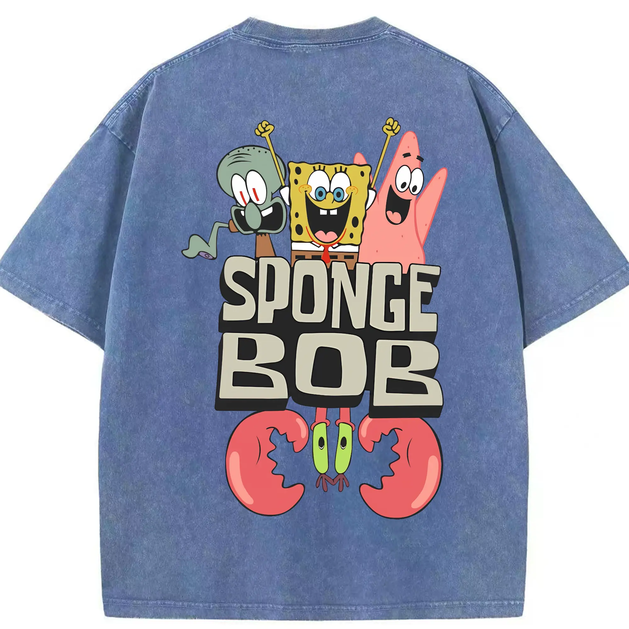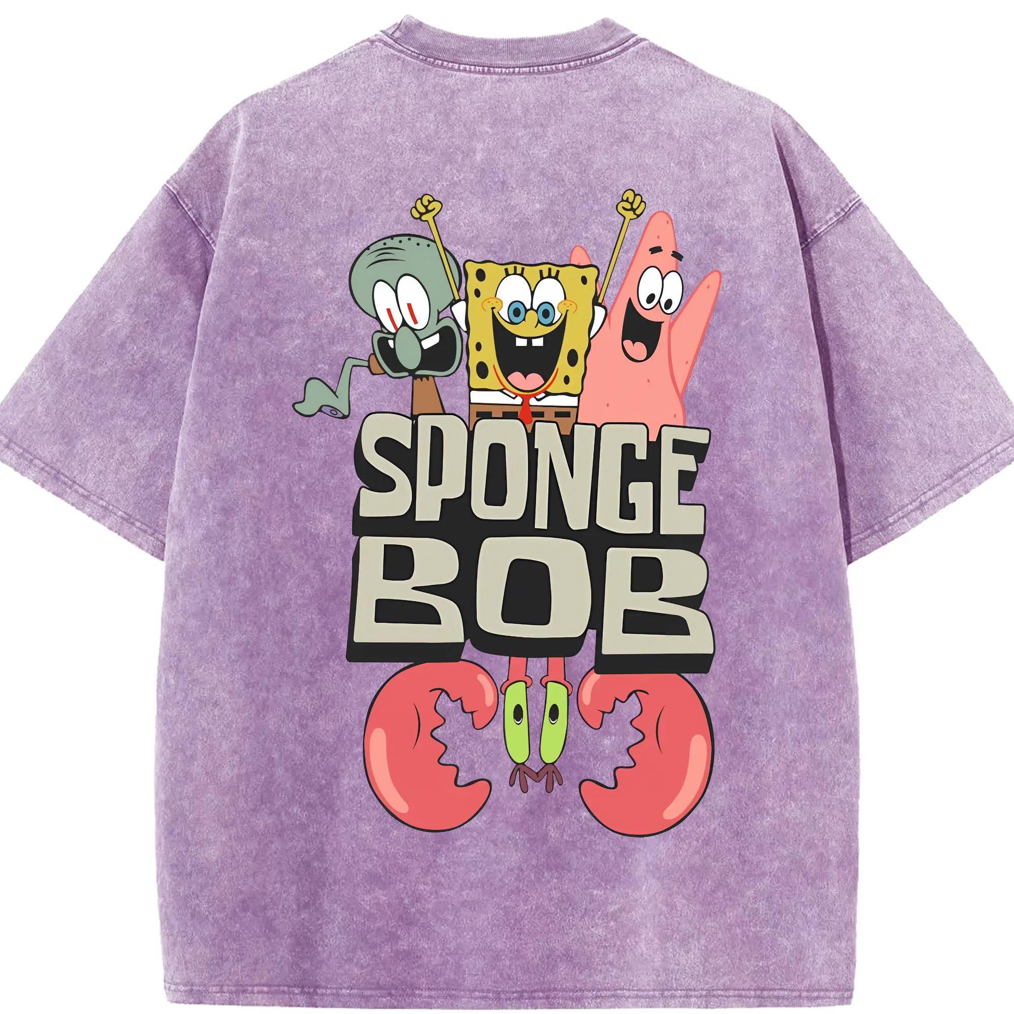 スポンジボブ グッズ スポンジボブ - 綿100% ヴィンテージ風 半袖Tシャツ ・ フロントプリント ・ 柔らか肌触り ・ 通気性 快適 ・ スポーツ カジュアル 外出用