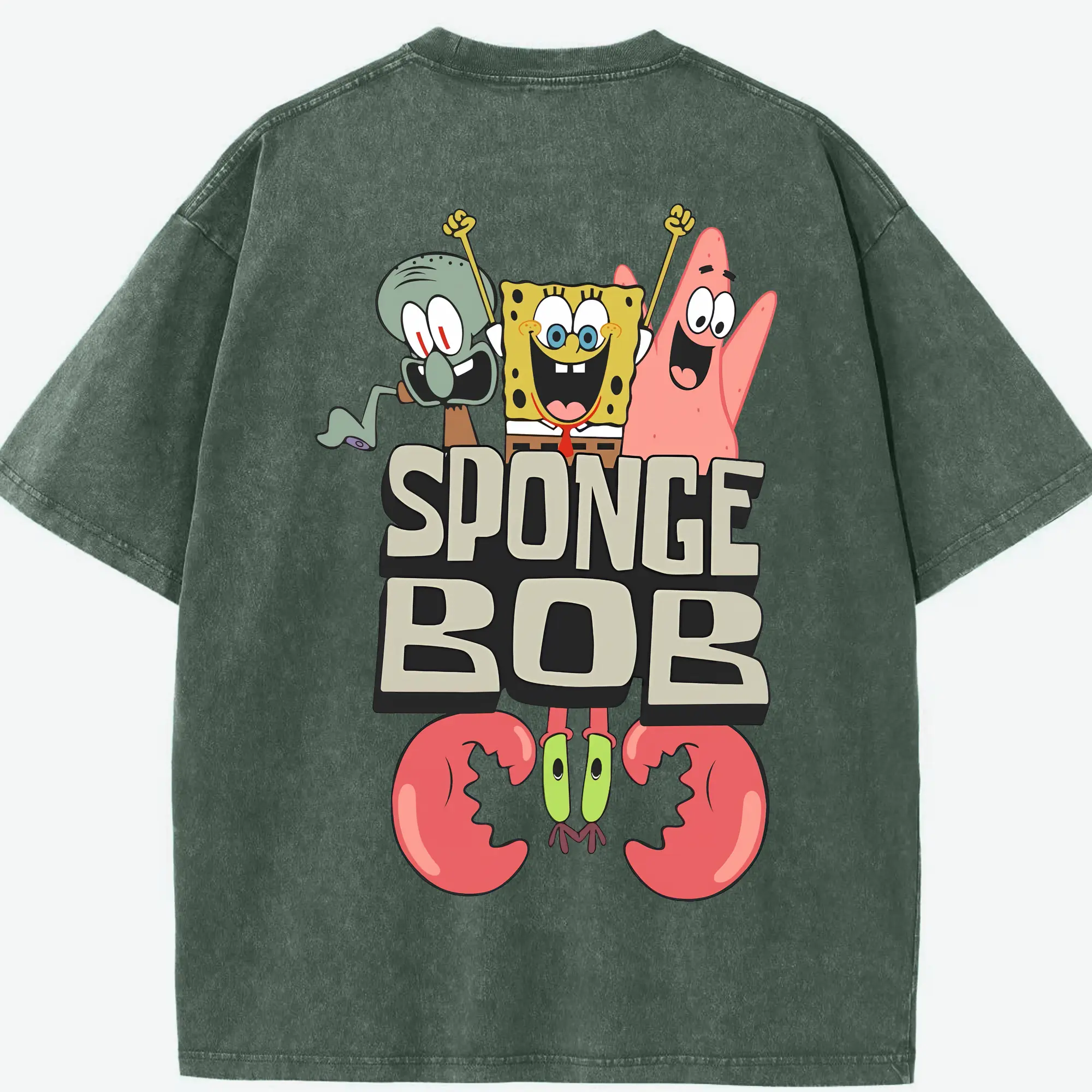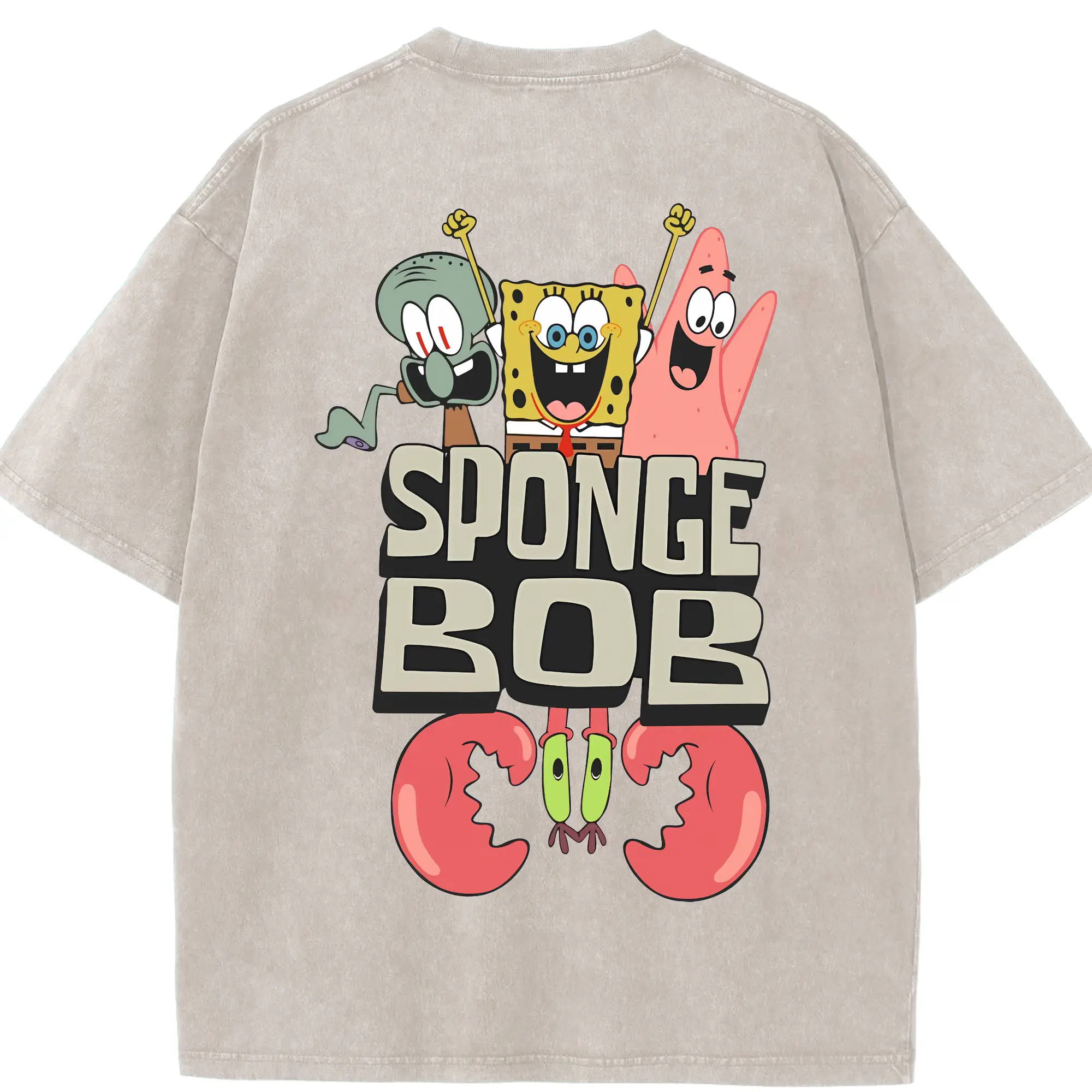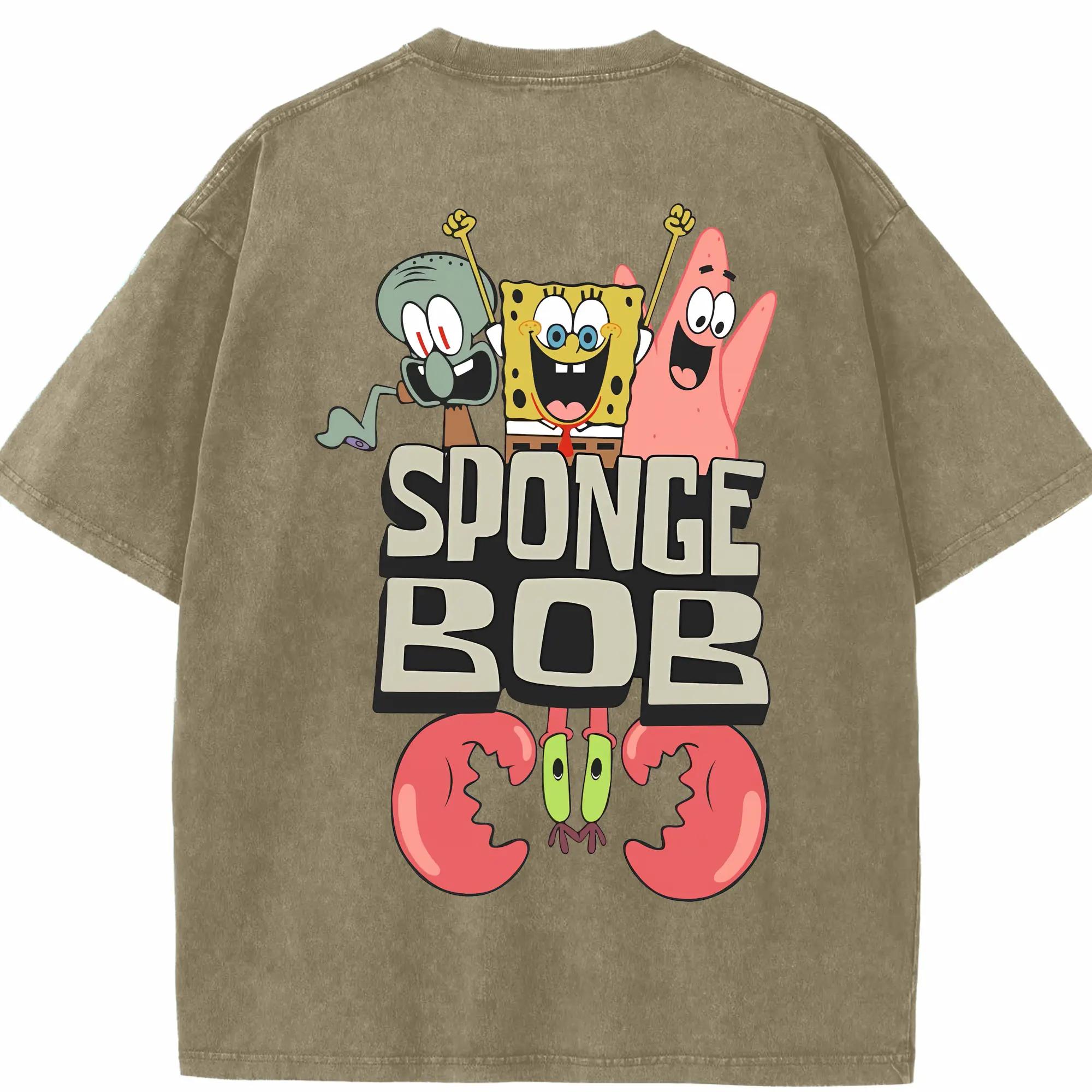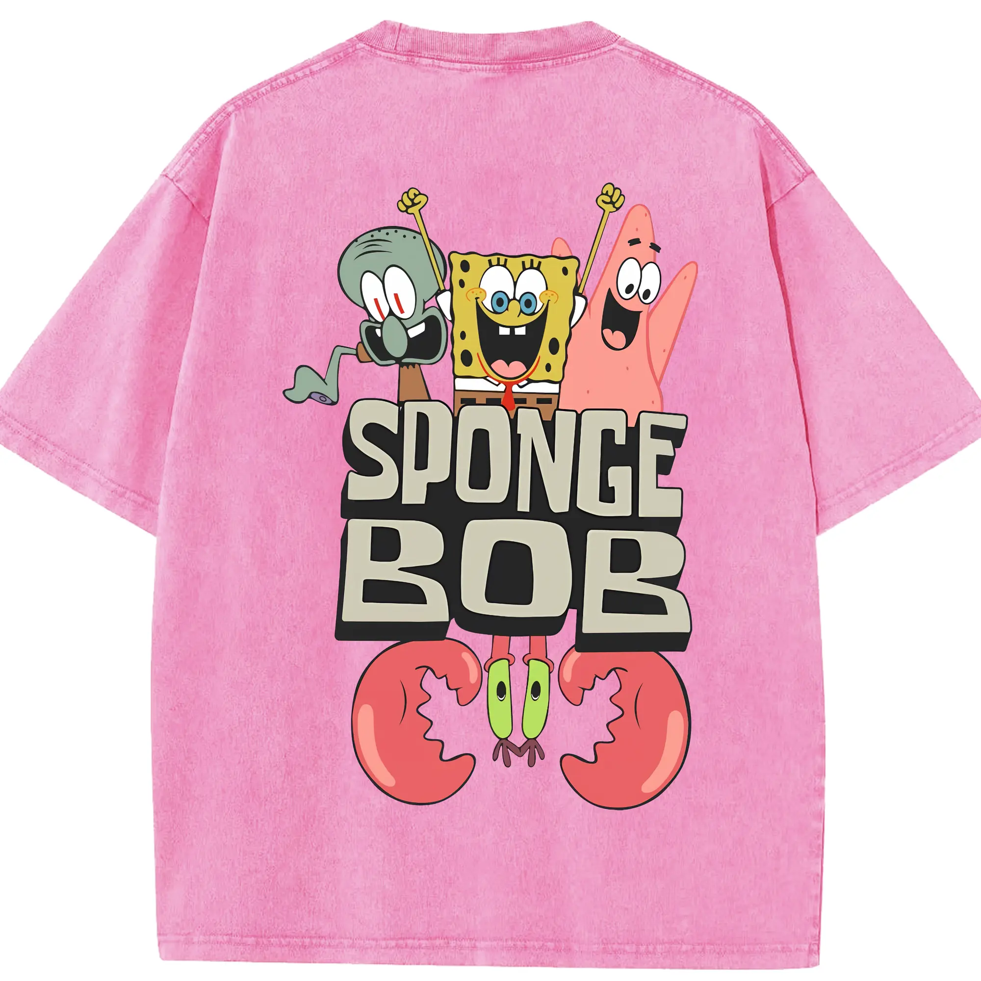 スポンジボブ グッズ スポンジボブ - 綿100% ヴィンテージ風 半袖Tシャツ ・ フロントプリント ・ 柔らか肌触り ・ 通気性 快適 ・ スポーツ カジュアル 外出用