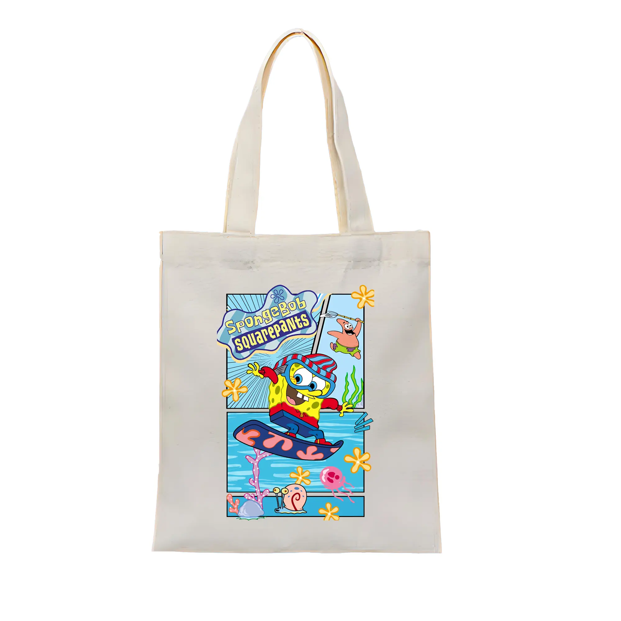 スポンジボブ グッズ スポンジボブ - 縦型キャンバス手提げバッグ(トートバッグ) ・ キャンバス素材 ・ ショッピング用 ・ 軽量 丈夫 お手入れ簡単