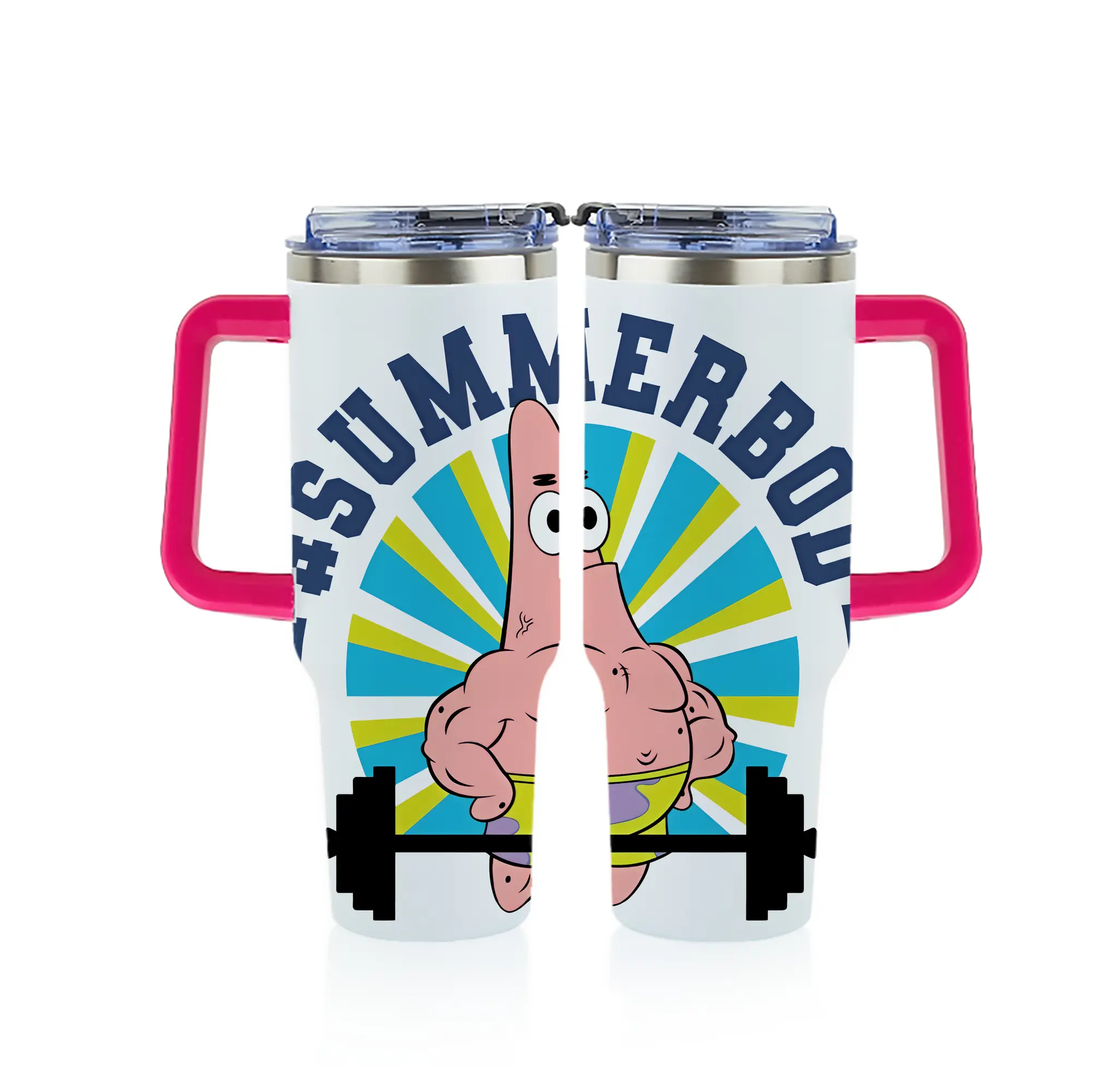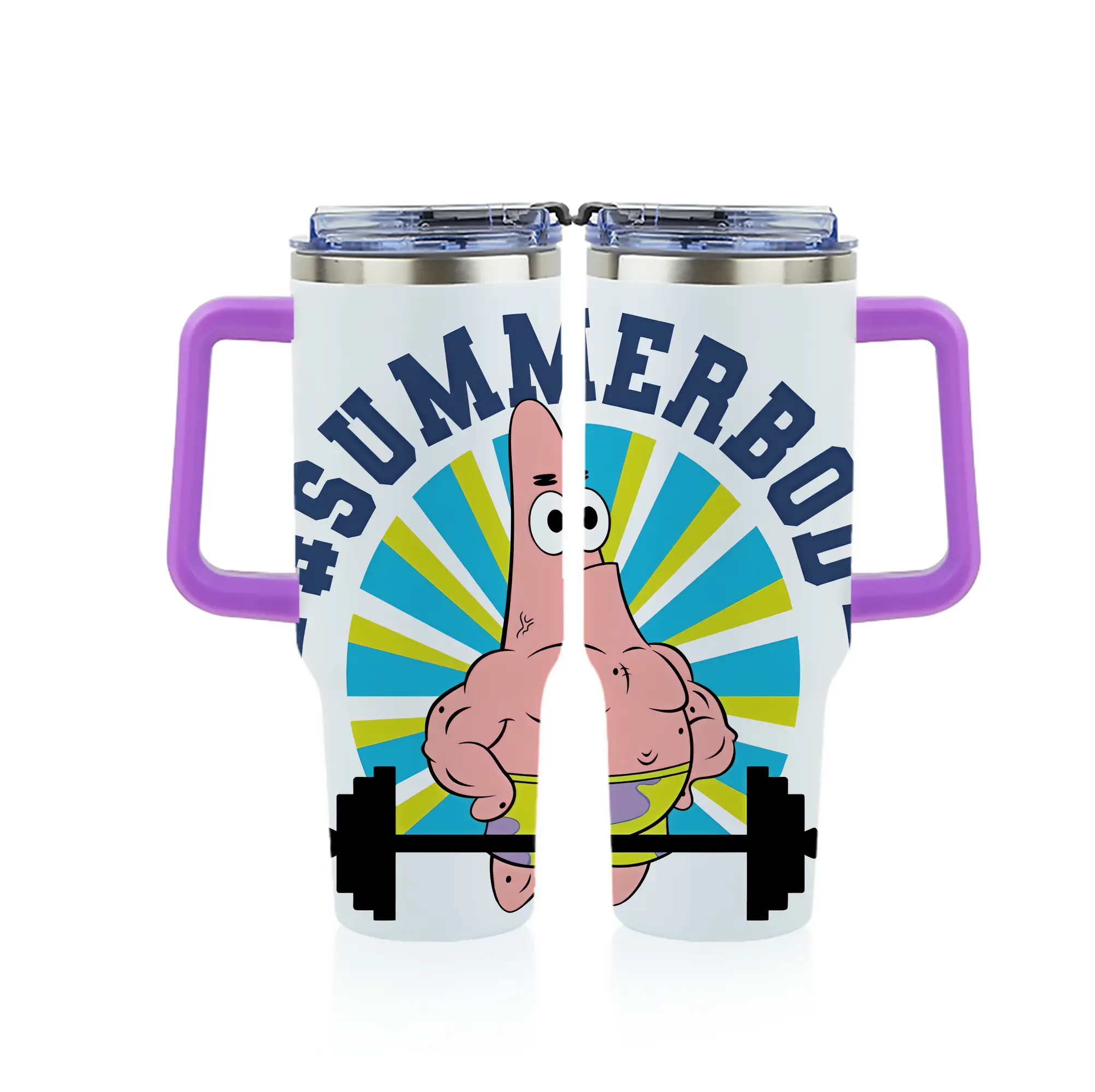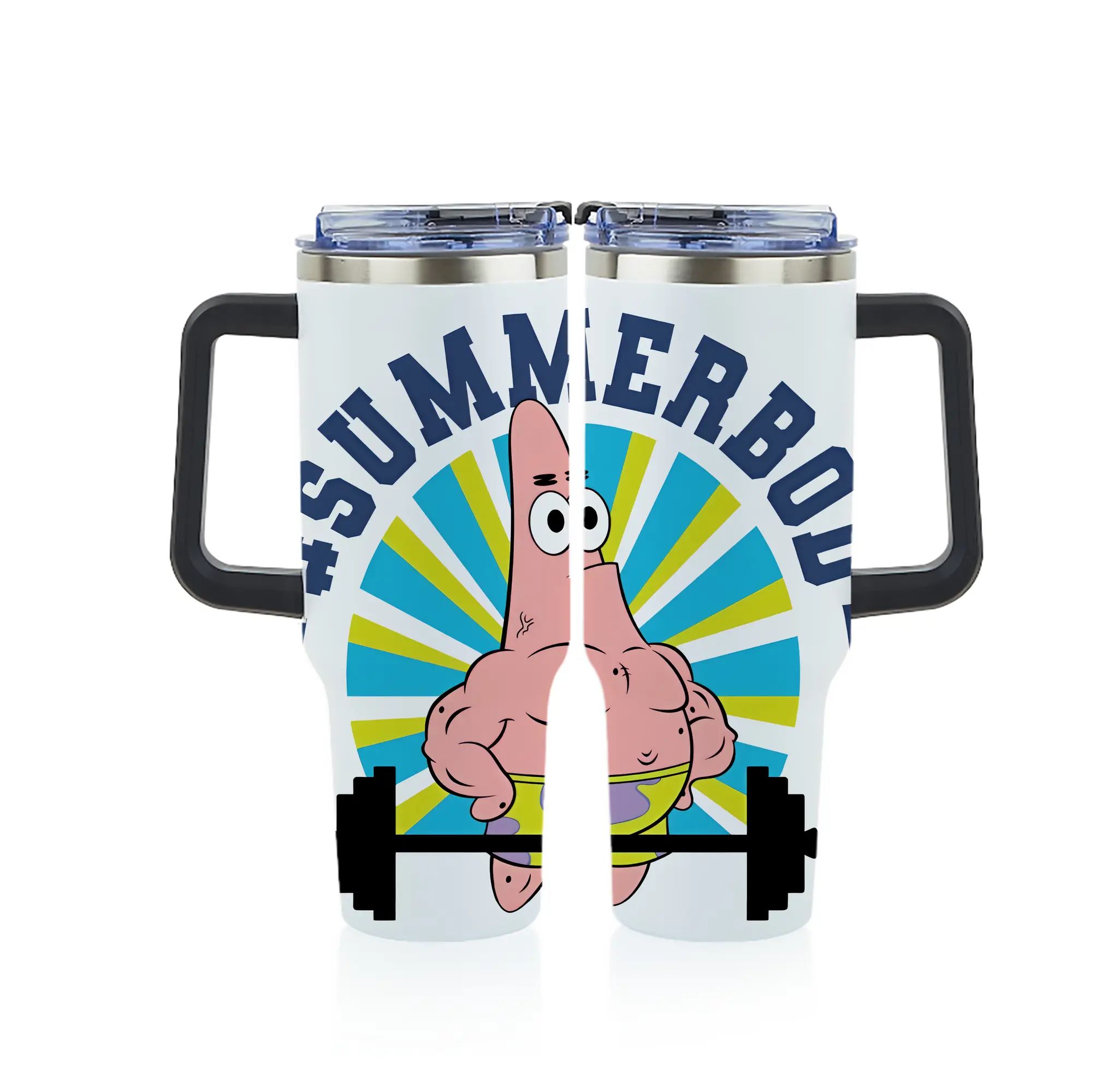 スポンジボブ グッズ パトリック・スター - 1200mL フルプリント車用タンブラー ・ 304ステンレス 内側 ・ 201ステンレス 外側 ・ 保温 保冷 ・ 通勤 ドライブ アウトドア用