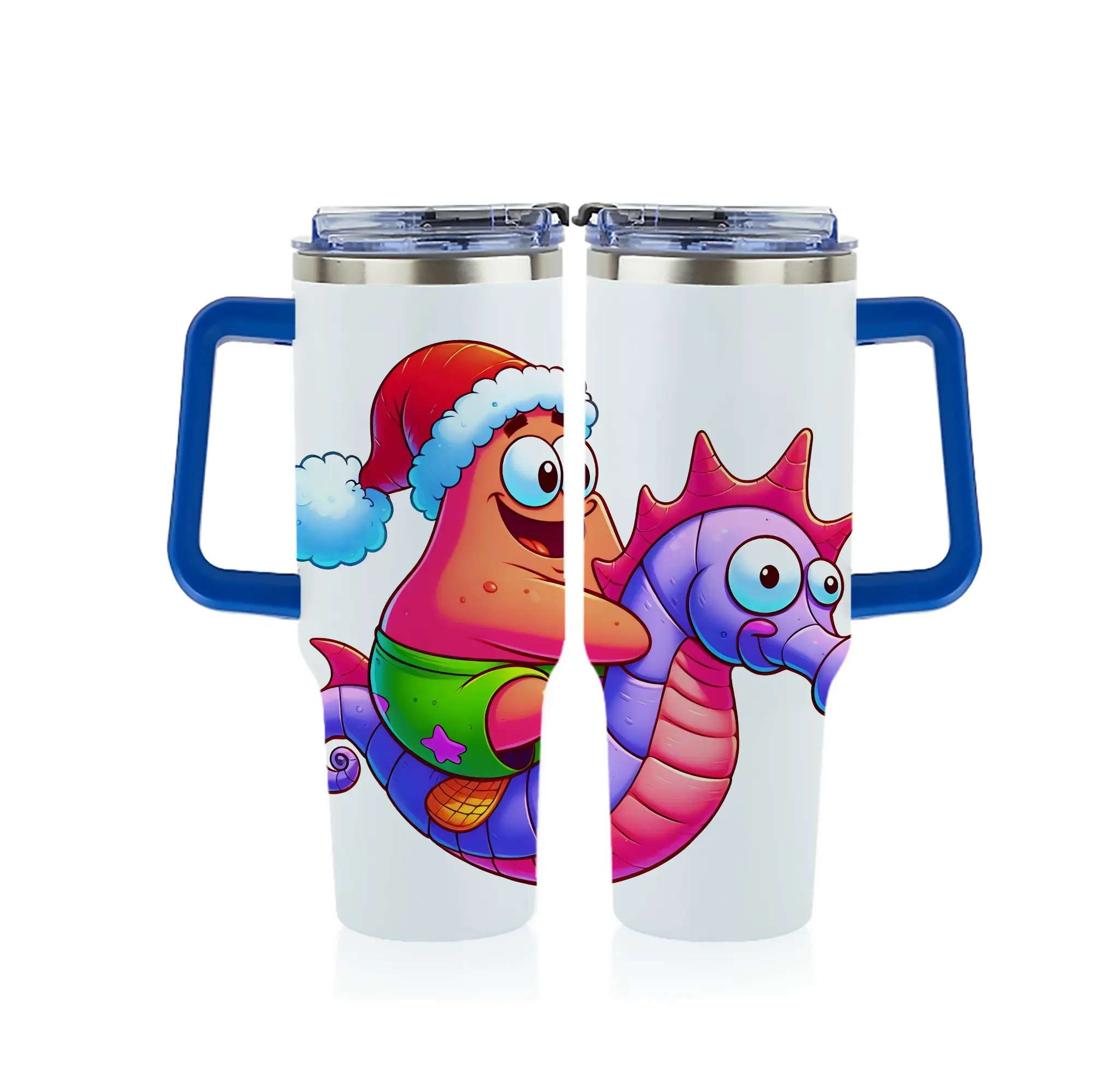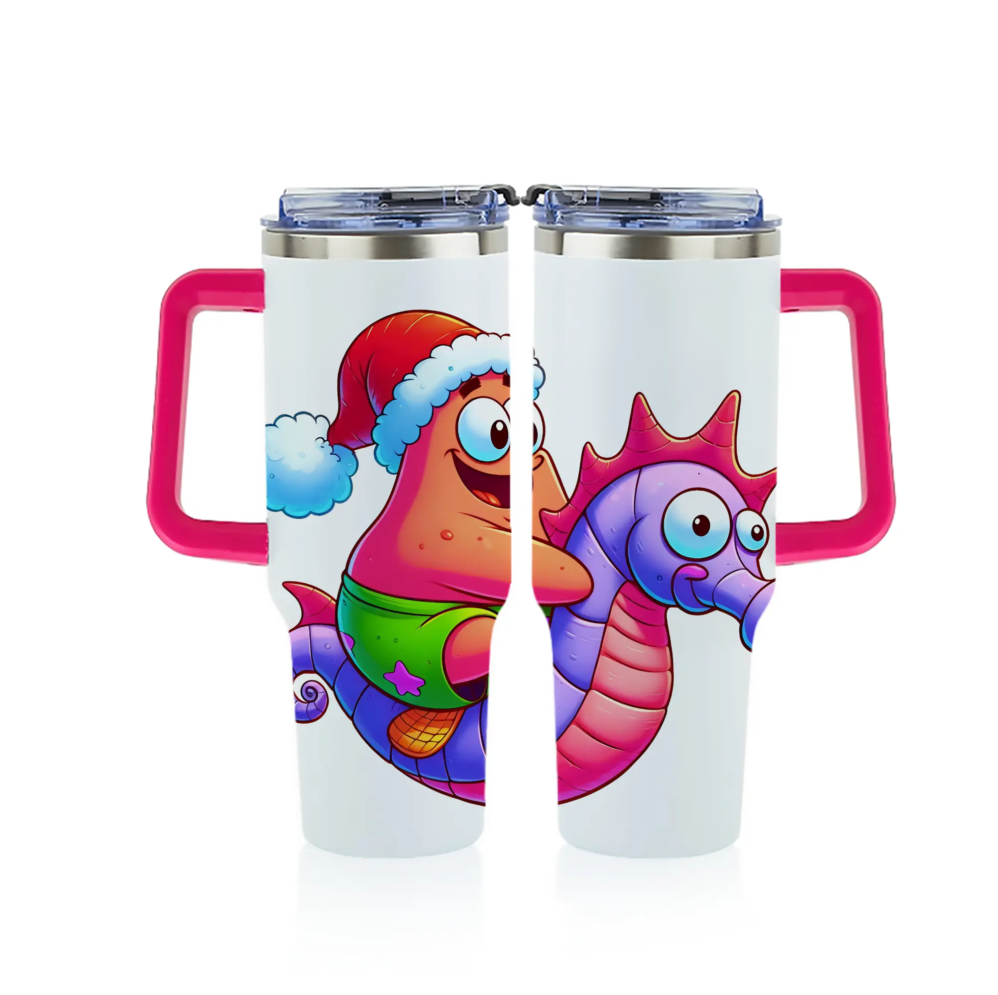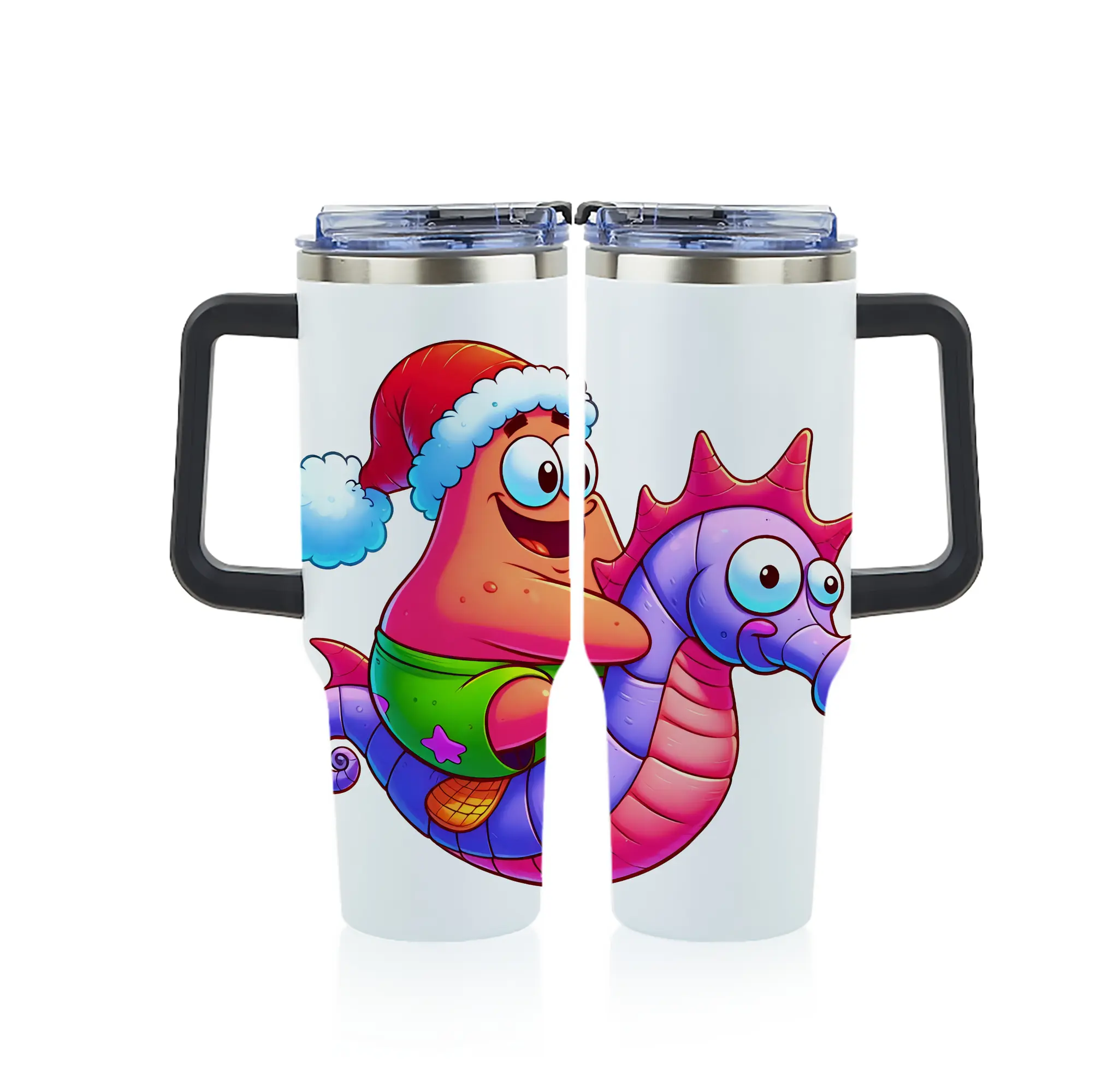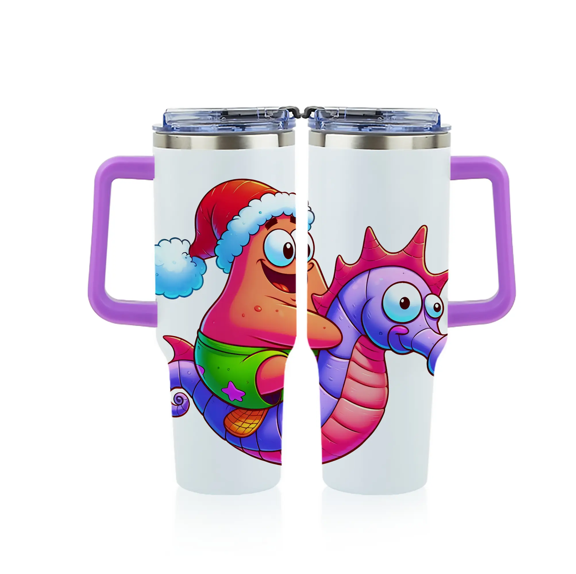 スポンジボブ グッズ パトリック・スター - 1200mL フルプリント車用タンブラー ・ 304ステンレス 内側 ・ 201ステンレス 外側 ・ 保温 保冷 ・ 通勤 ドライブ アウトドア用
