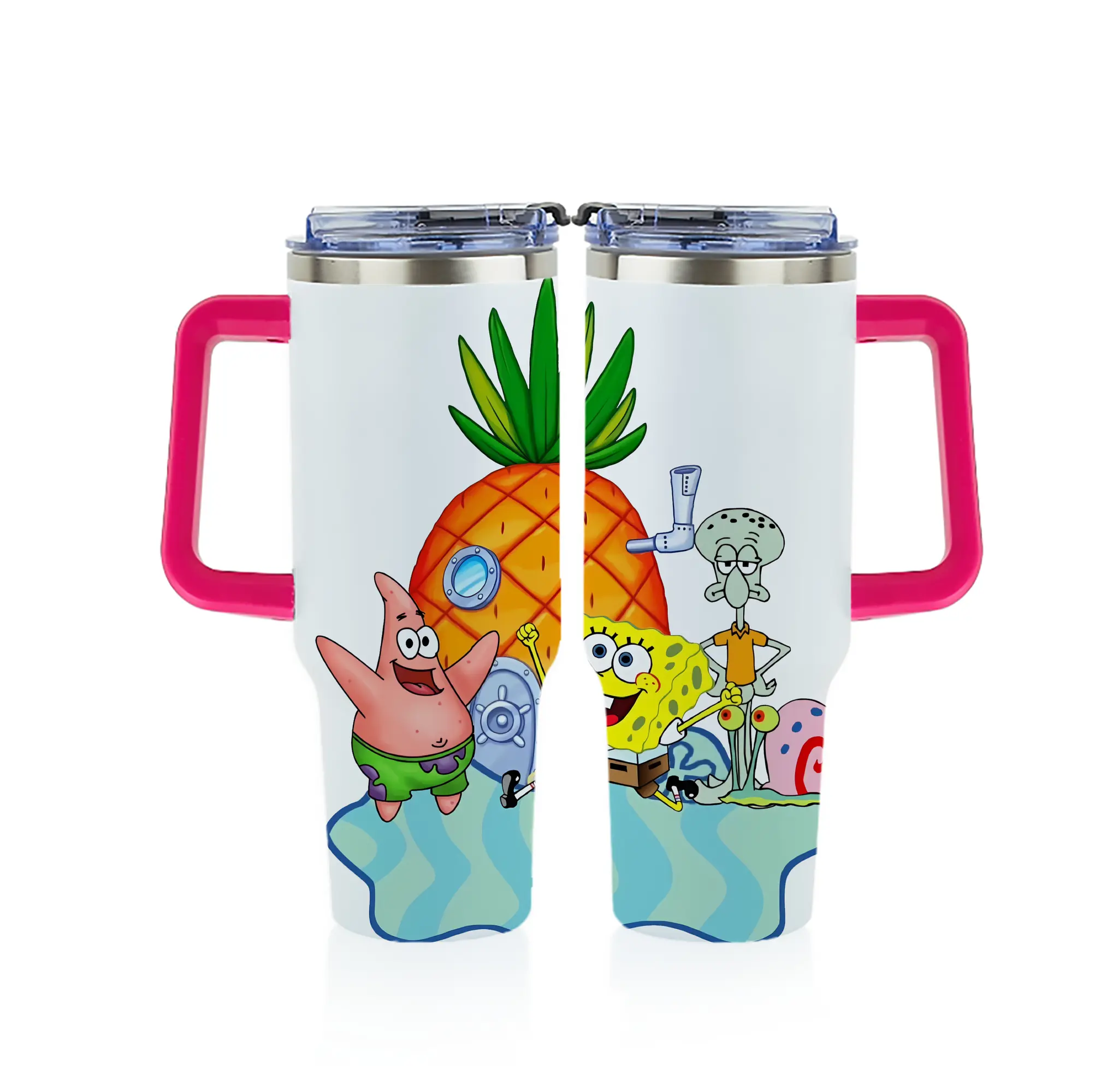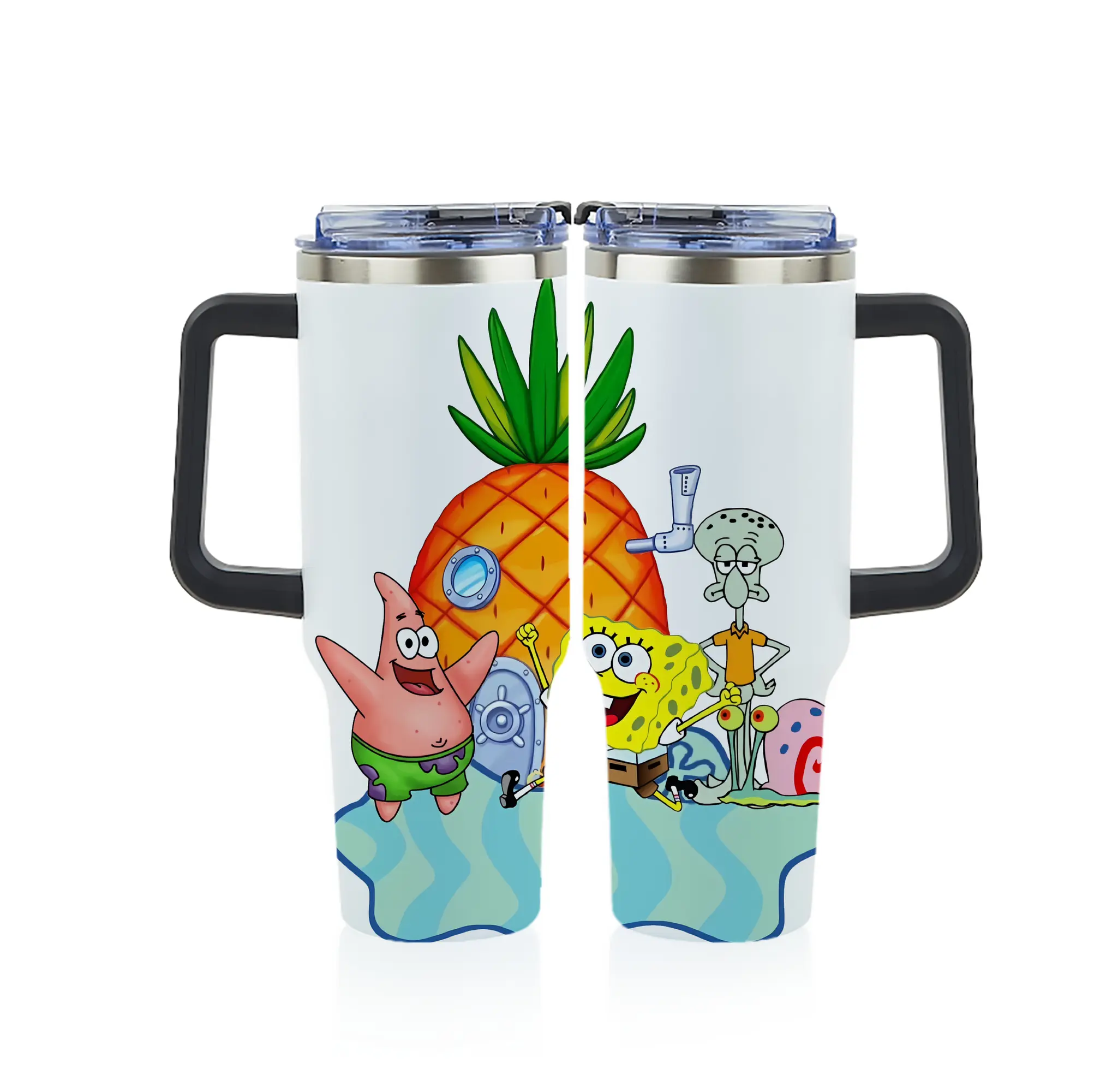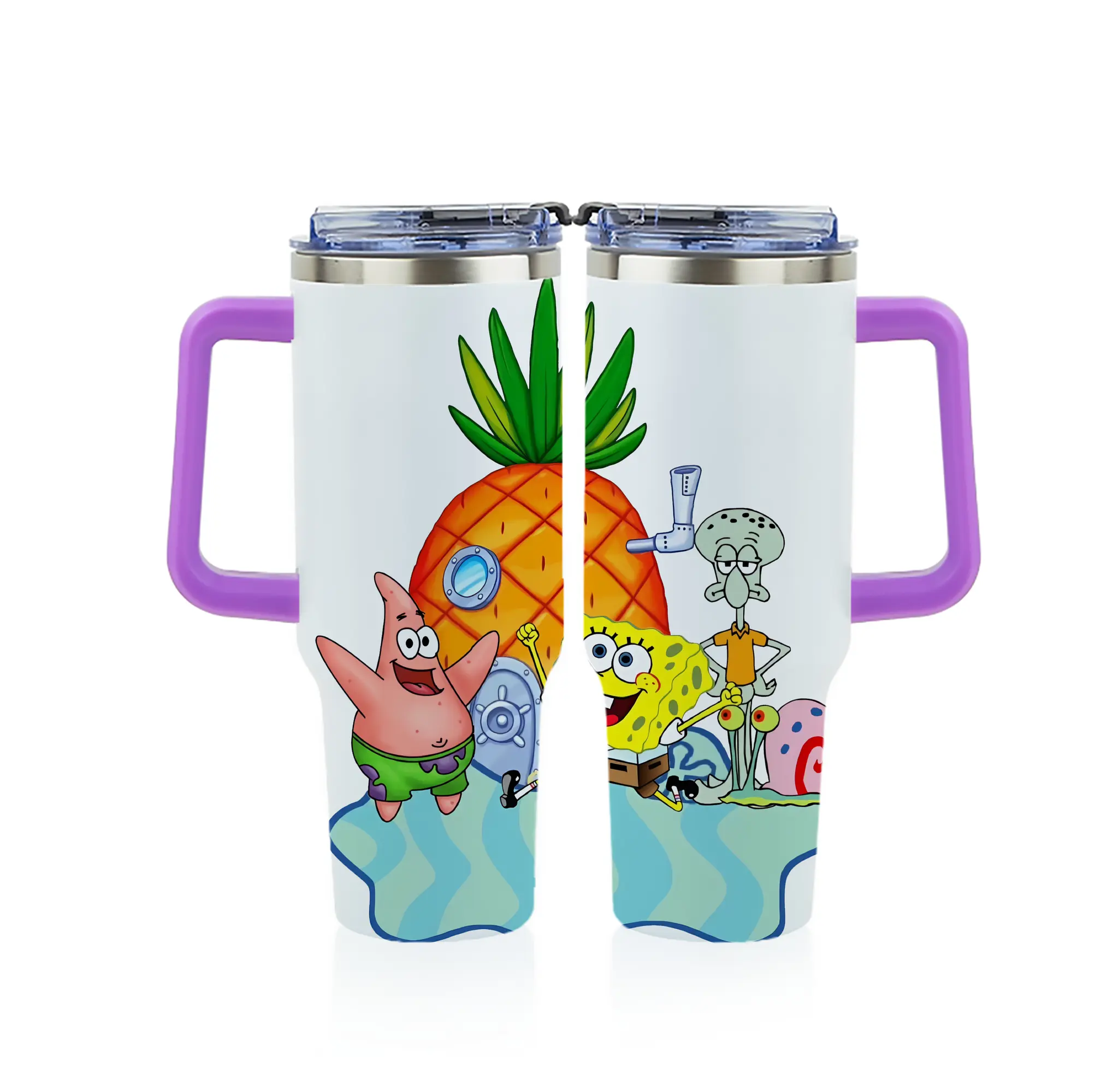 スポンジボブ グッズ パトリック・スター - 1200mL フルプリント車用タンブラー ・ 304ステンレス 内側 ・ 201ステンレス 外側 ・ 保温 保冷 ・ 通勤 ドライブ アウトドア用