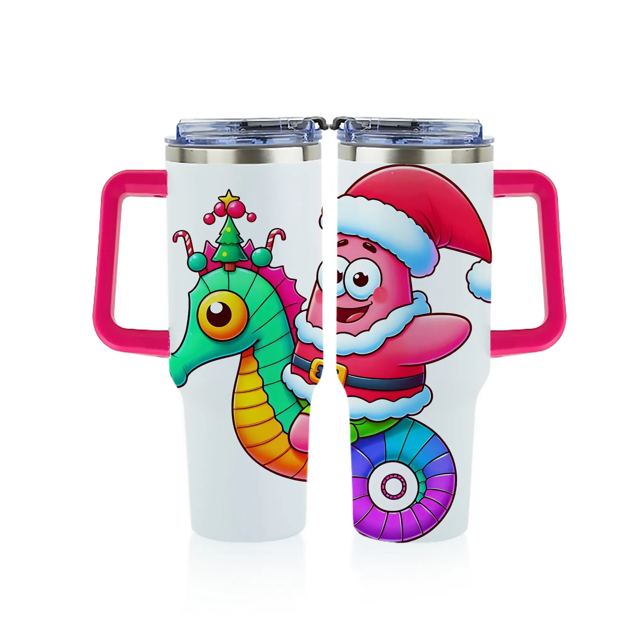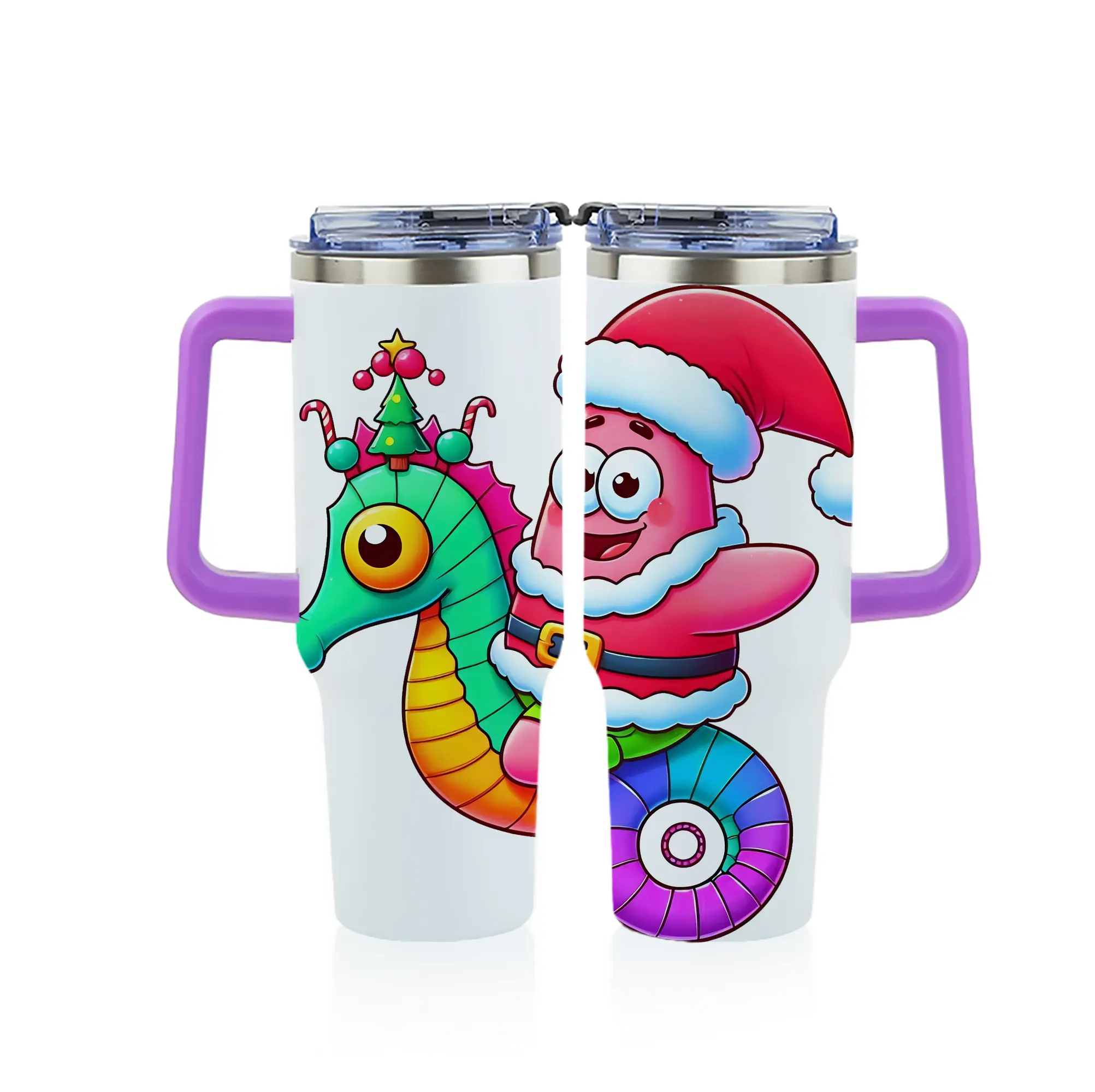 スポンジボブ グッズ パトリック・スター - 1200mL フルプリント車用タンブラー ・ 304ステンレス 内側 ・ 201ステンレス 外側 ・ 保温 保冷 ・ 通勤 ドライブ アウトドア用