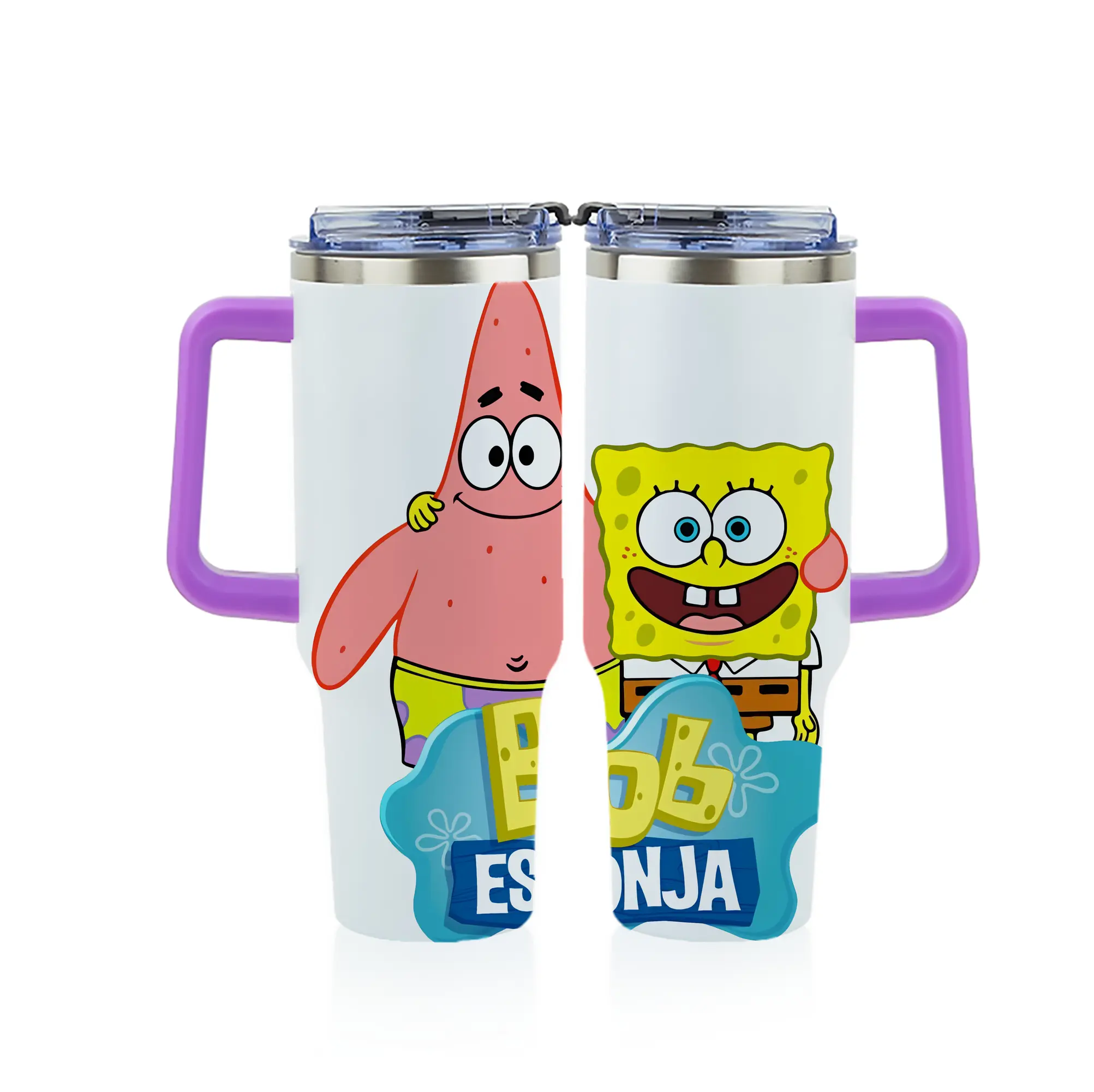 スポンジボブ グッズ パトリック・スター - 1200mL フルプリント車用タンブラー ・ 304ステンレス 内側 ・ 201ステンレス 外側 ・ 保温 保冷 ・ 通勤 ドライブ アウトドア用
