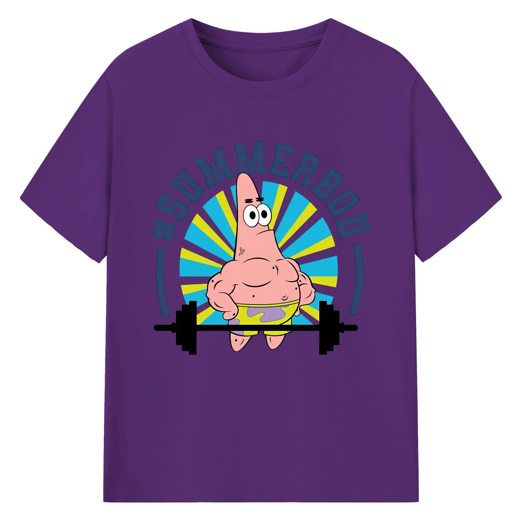 スポンジボブ グッズ パトリック・スター - 綿100% 半袖Tシャツ ・ バックプリント ・ 快適 通気性 ・ 日常使い 散歩 スポーツ用