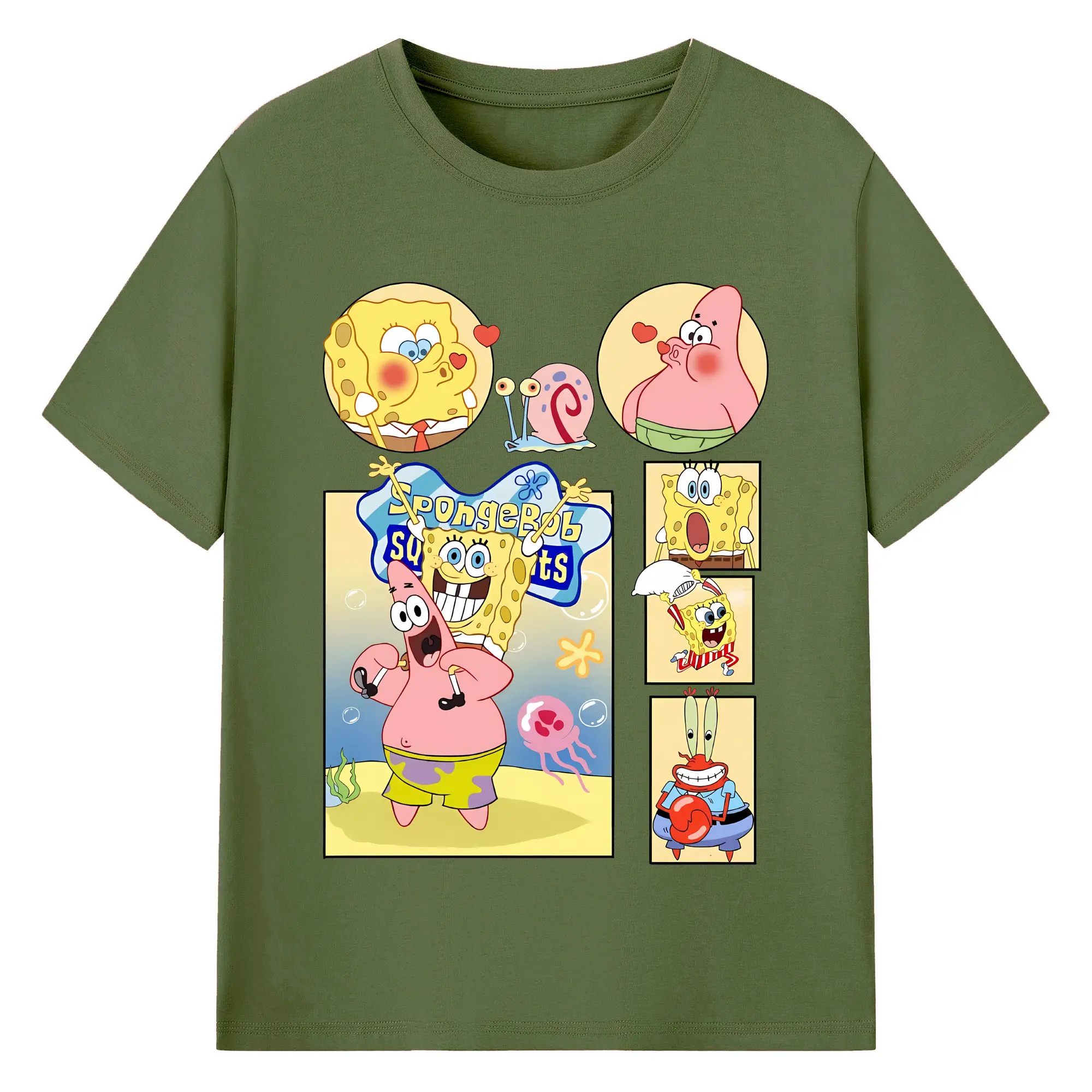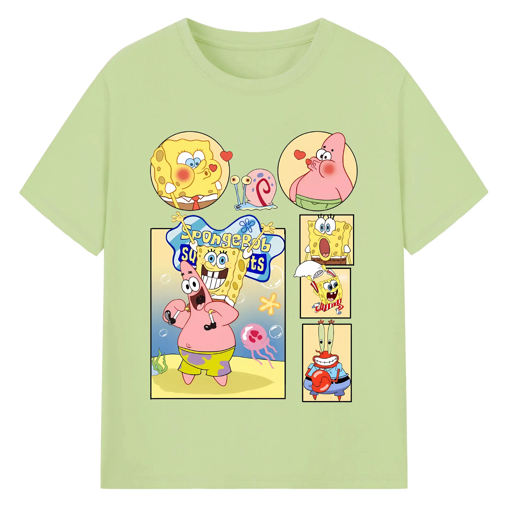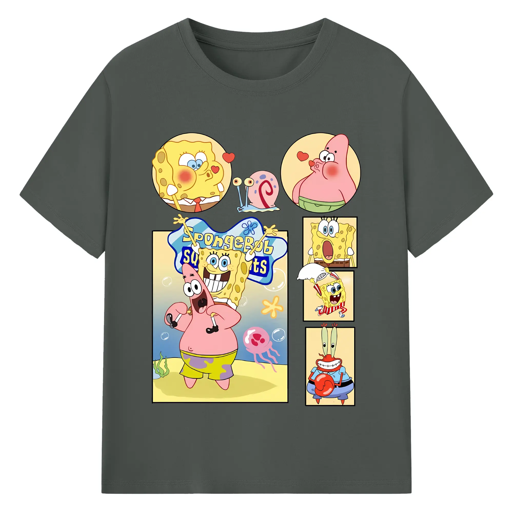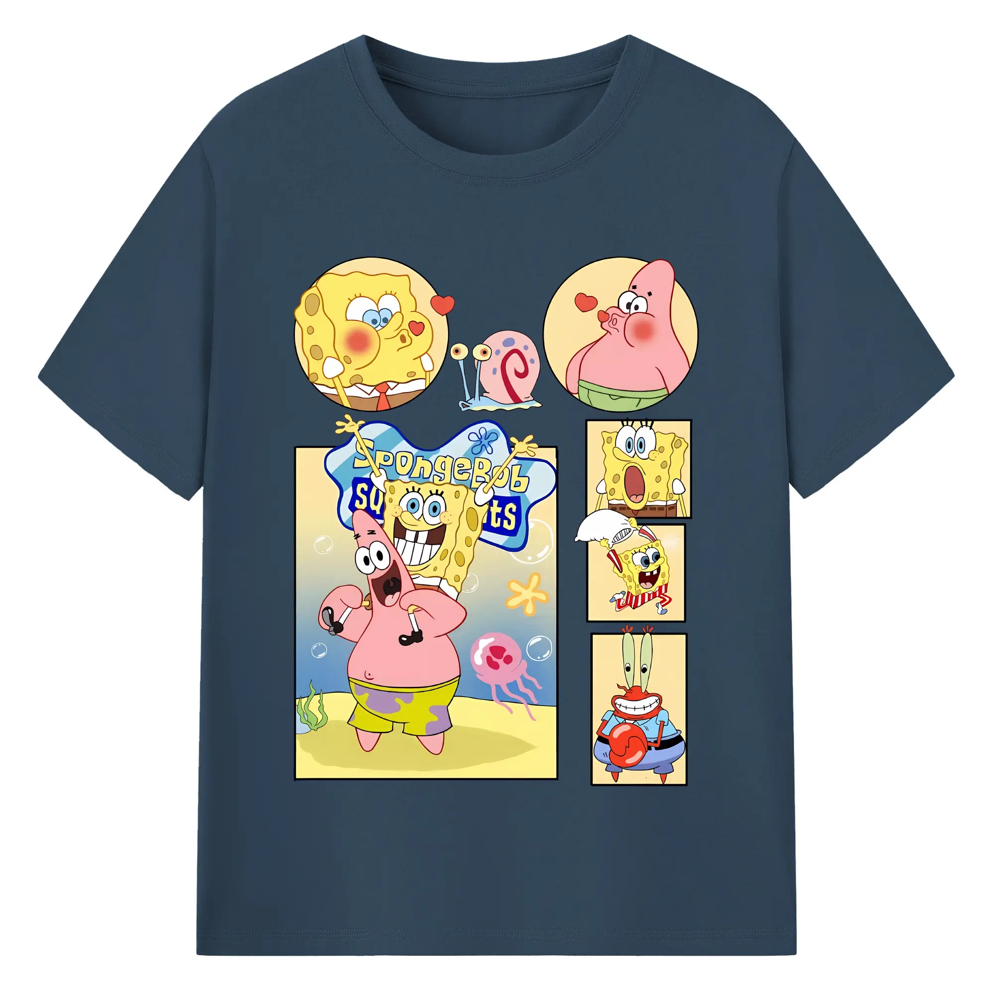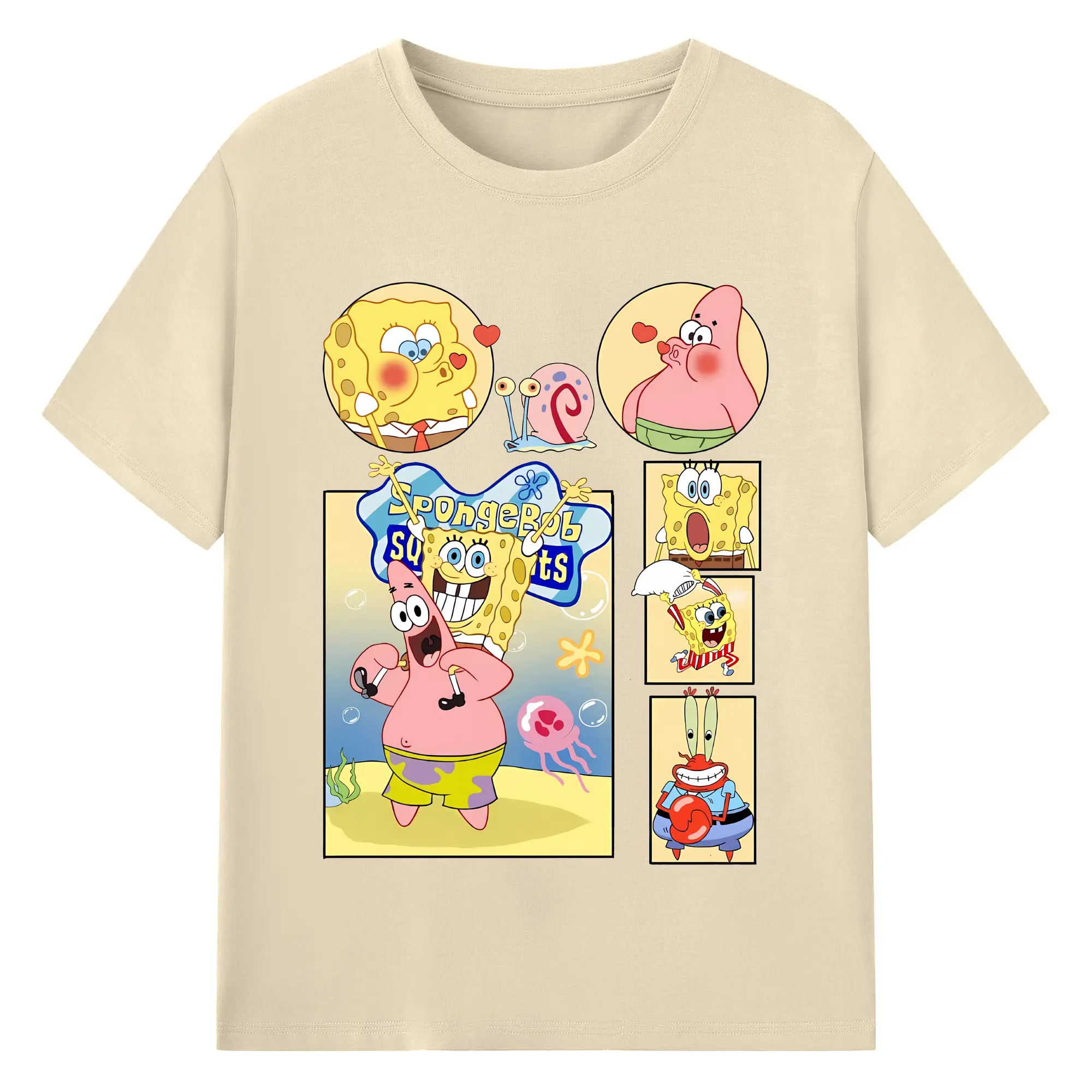 スポンジボブ グッズ パトリック・スター - 綿100% ヴィンテージ風 半袖Tシャツ ・ フロントプリント ・ 柔らか肌触り ・ 通気性 快適 ・ スポーツ カジュアル 外出用