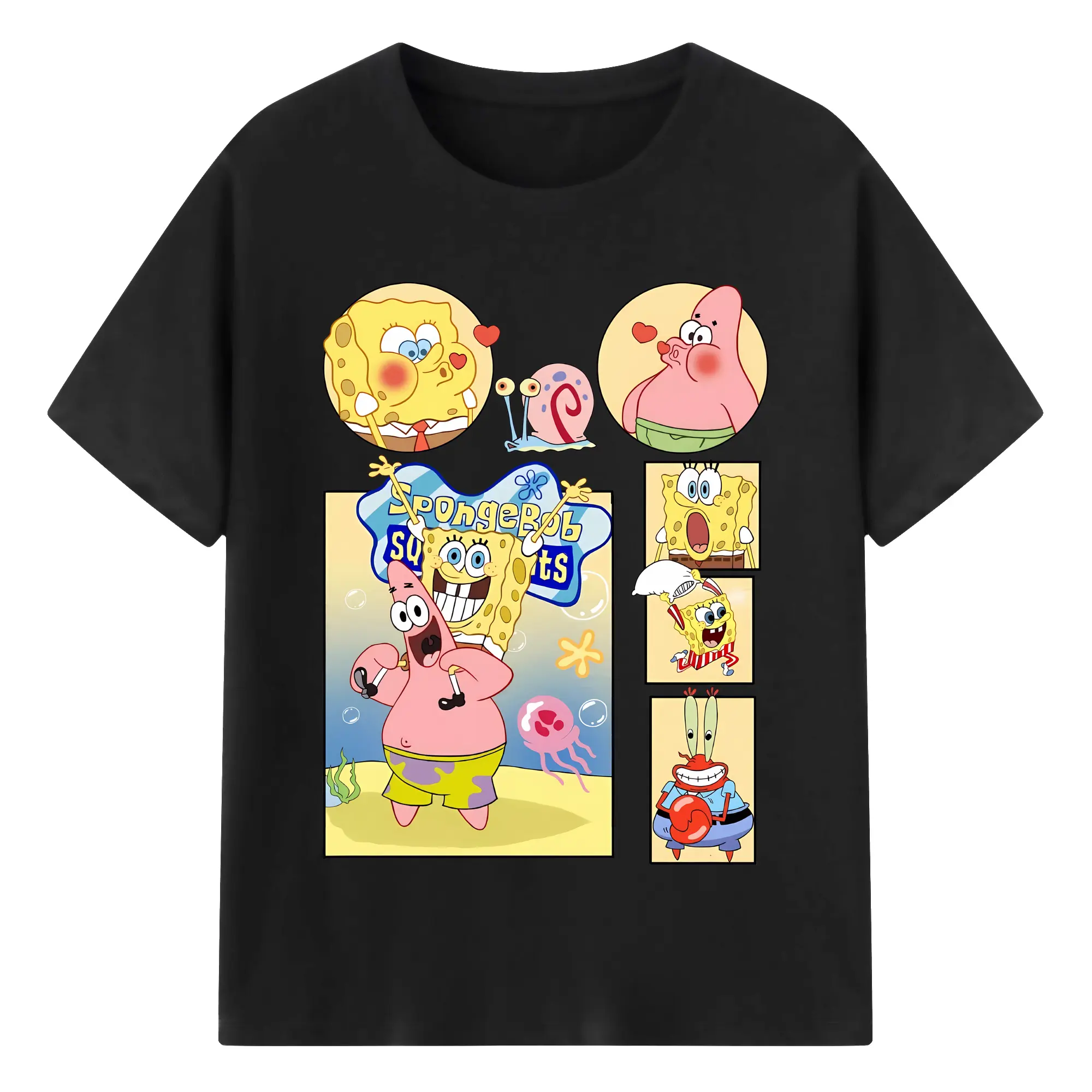 スポンジボブ グッズ パトリック・スター - 綿100% 半袖Tシャツ ・ バックプリント ・ 快適 通気性 ・ 日常使い 散歩 スポーツ用