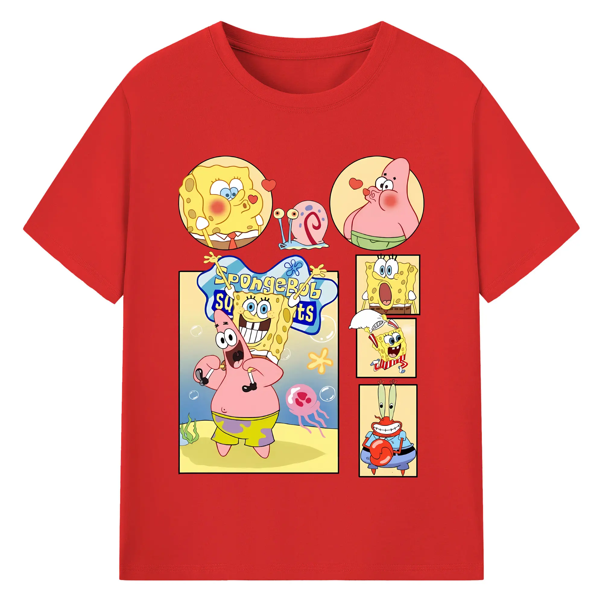 スポンジボブ グッズ パトリック・スター - 綿100% キッズTシャツ ・ フロントプリント ・ 快適 通気性 ・ スポーツ カジュアル 散歩用