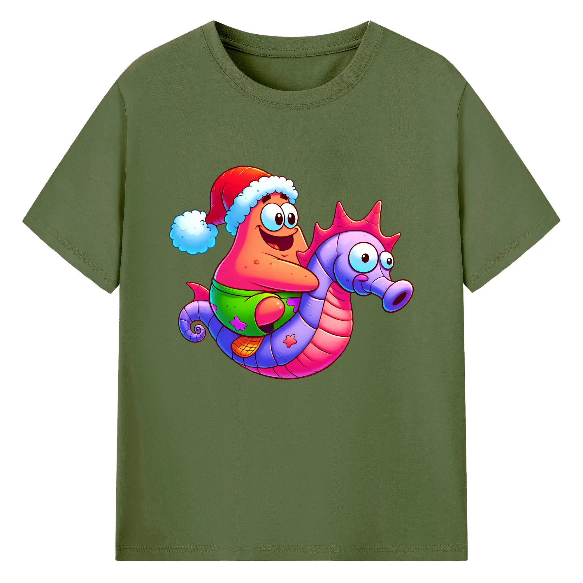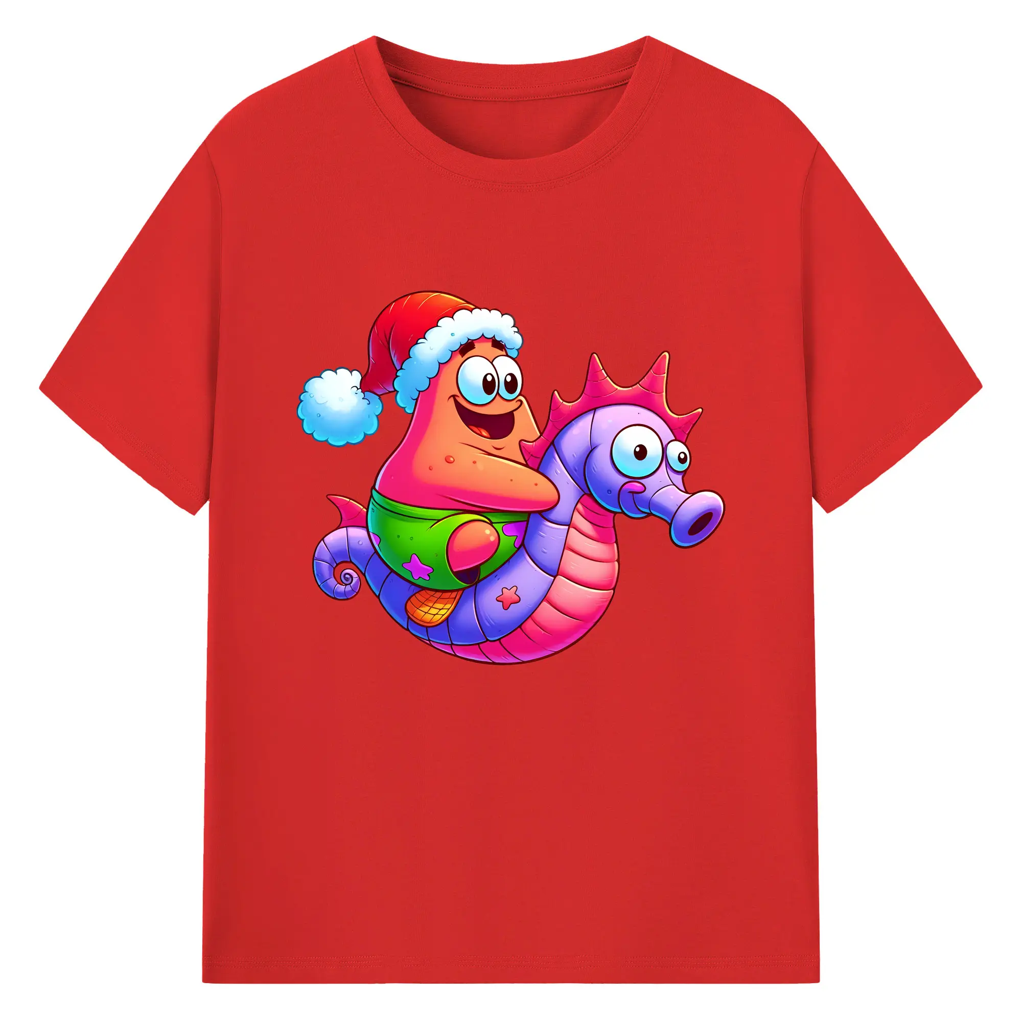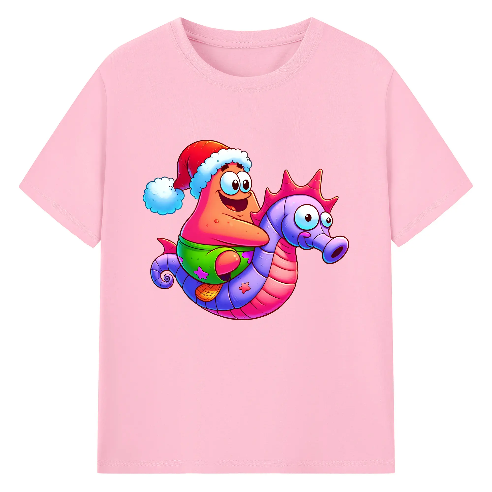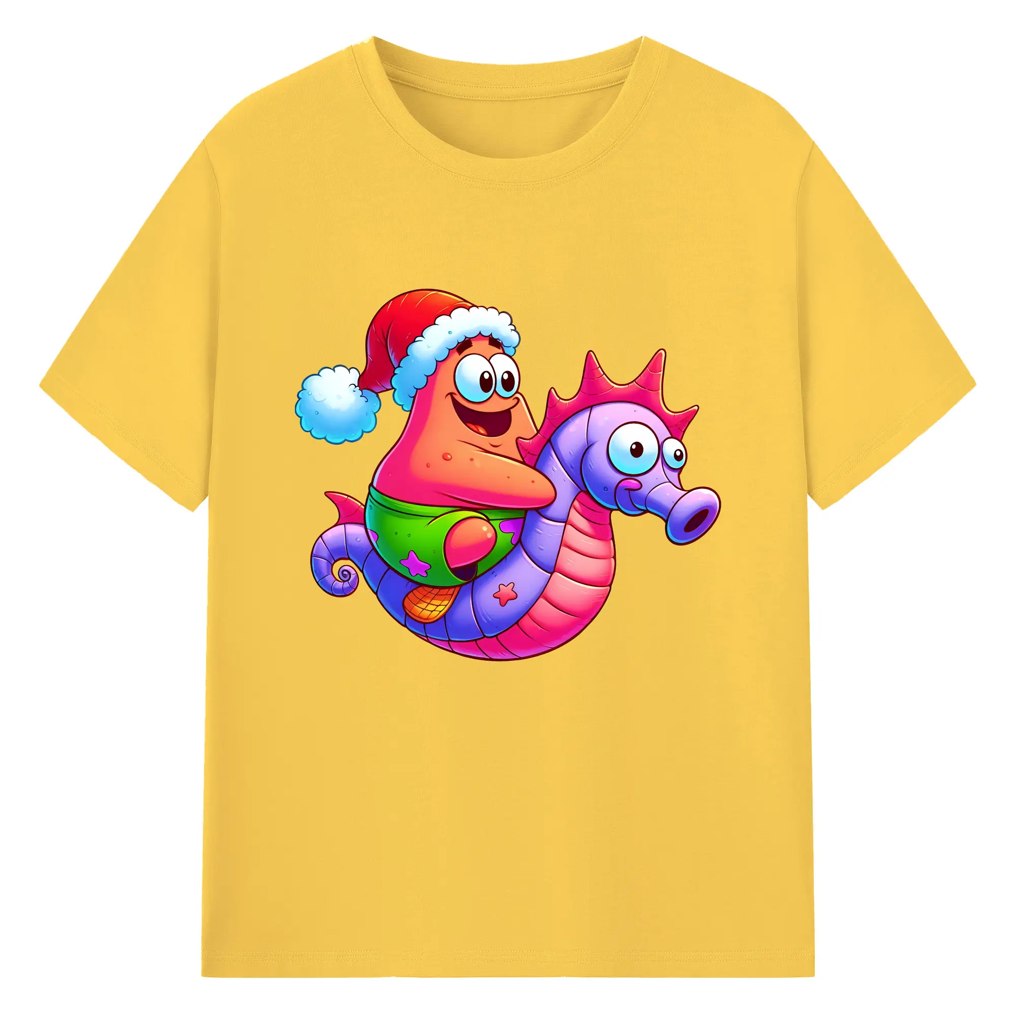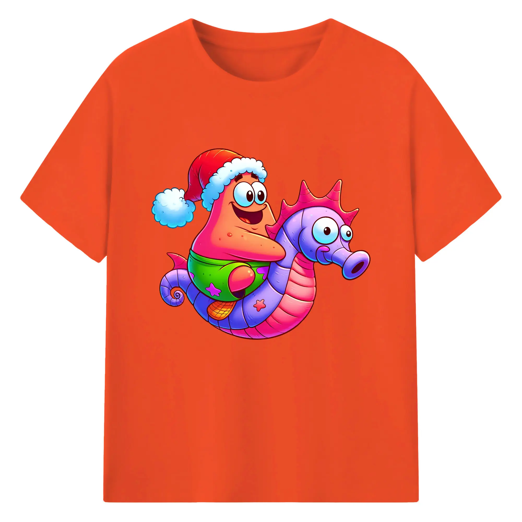 スポンジボブ グッズ パトリック・スター - 綿100% キッズTシャツ ・ フロントプリント ・ 快適 通気性 ・ スポーツ カジュアル 散歩用