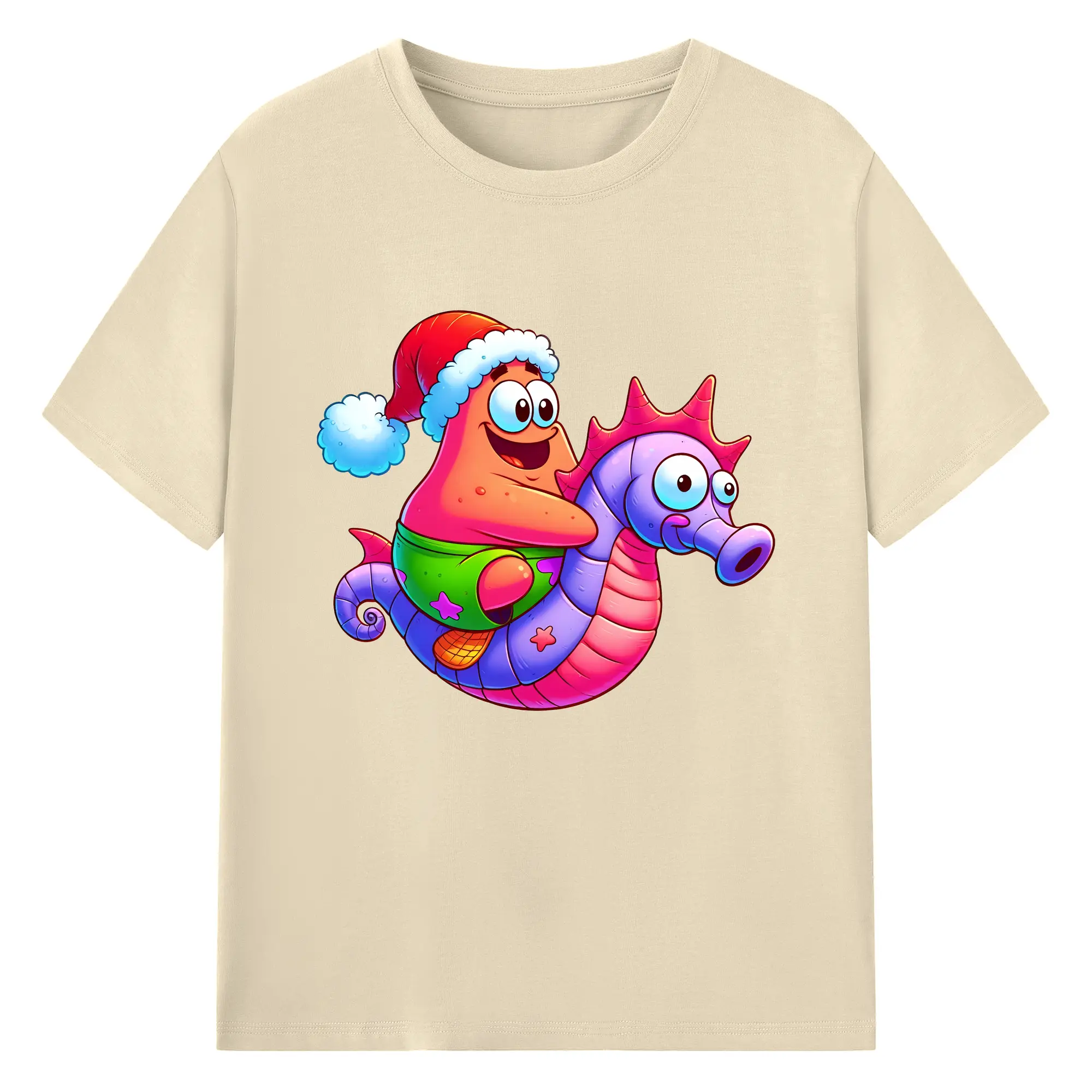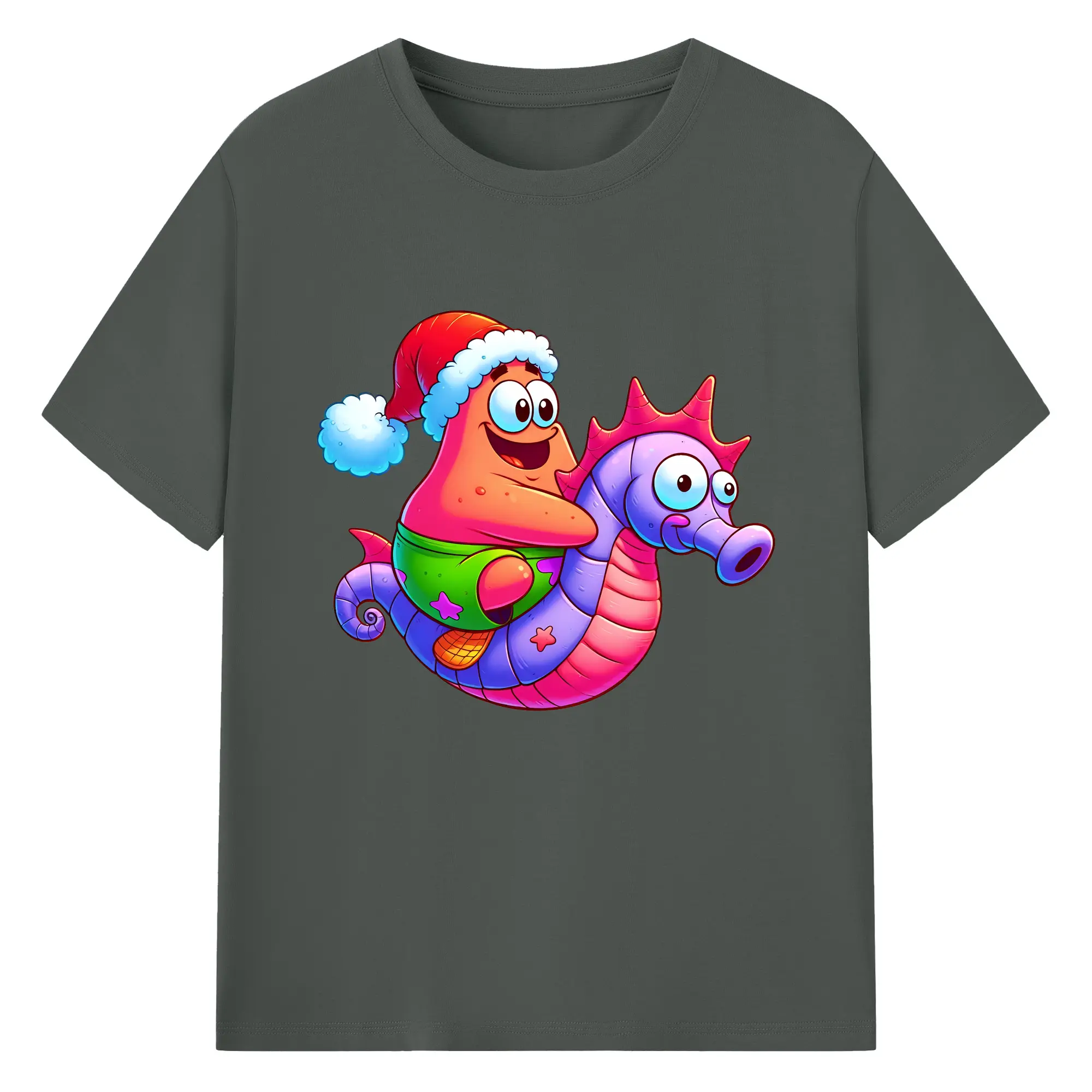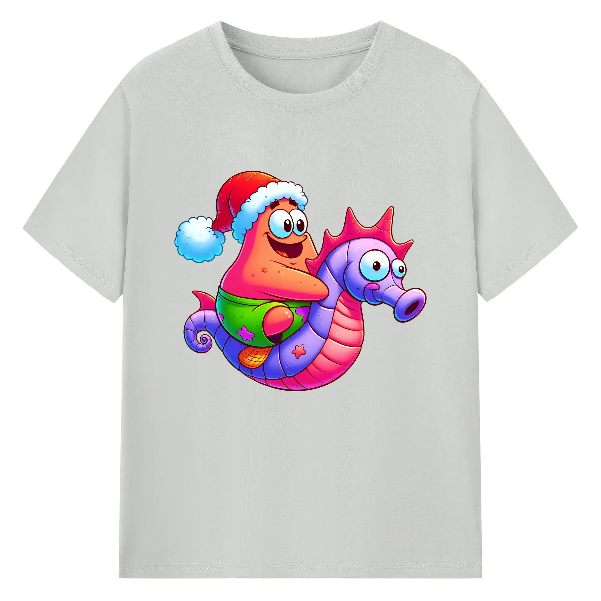 スポンジボブ グッズ パトリック・スター - 綿100% 半袖Tシャツ ・ バックプリント ・ 快適 通気性 ・ 日常使い 散歩 スポーツ用