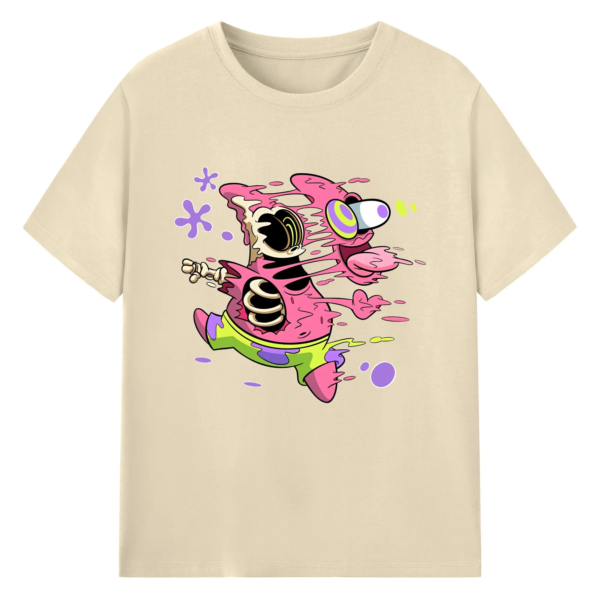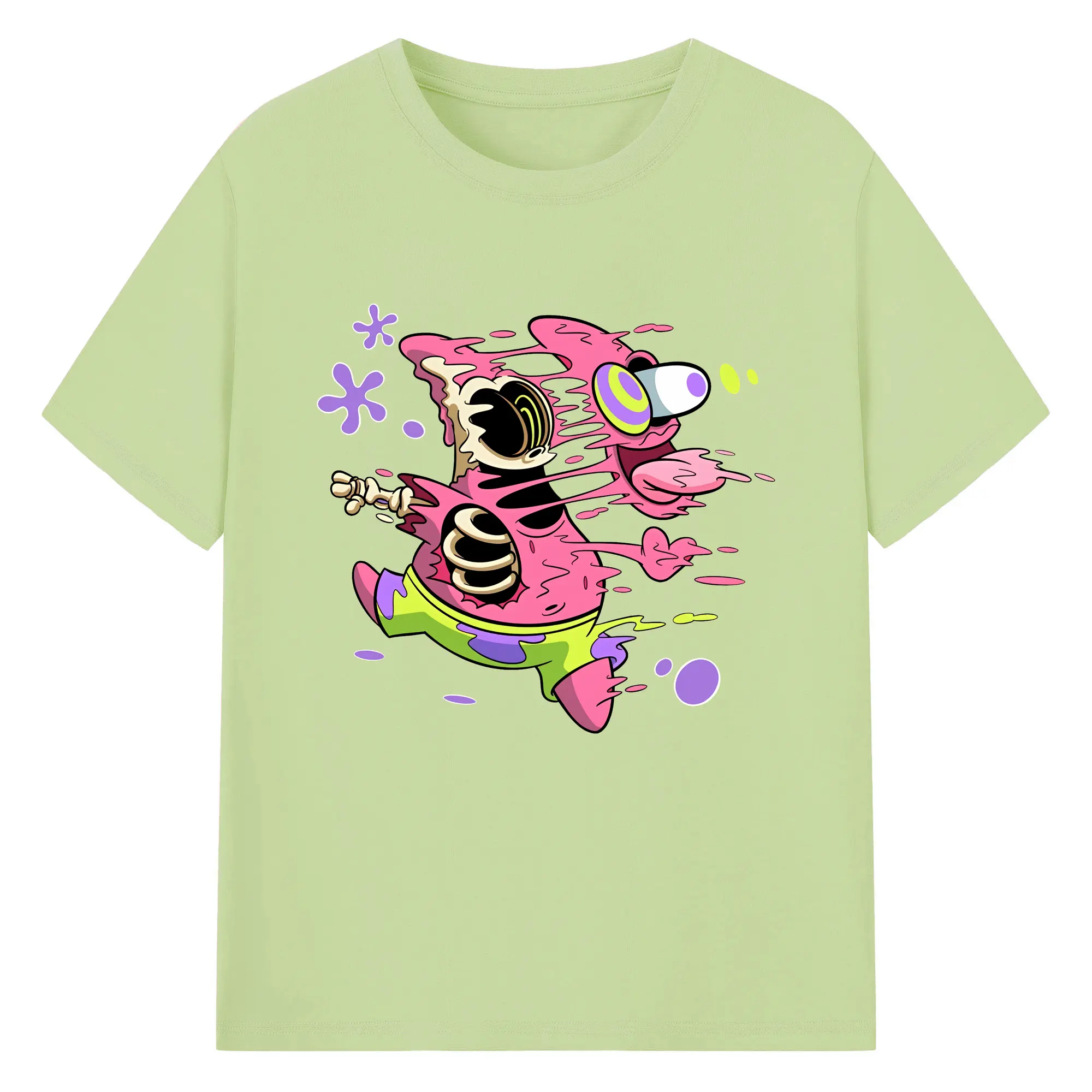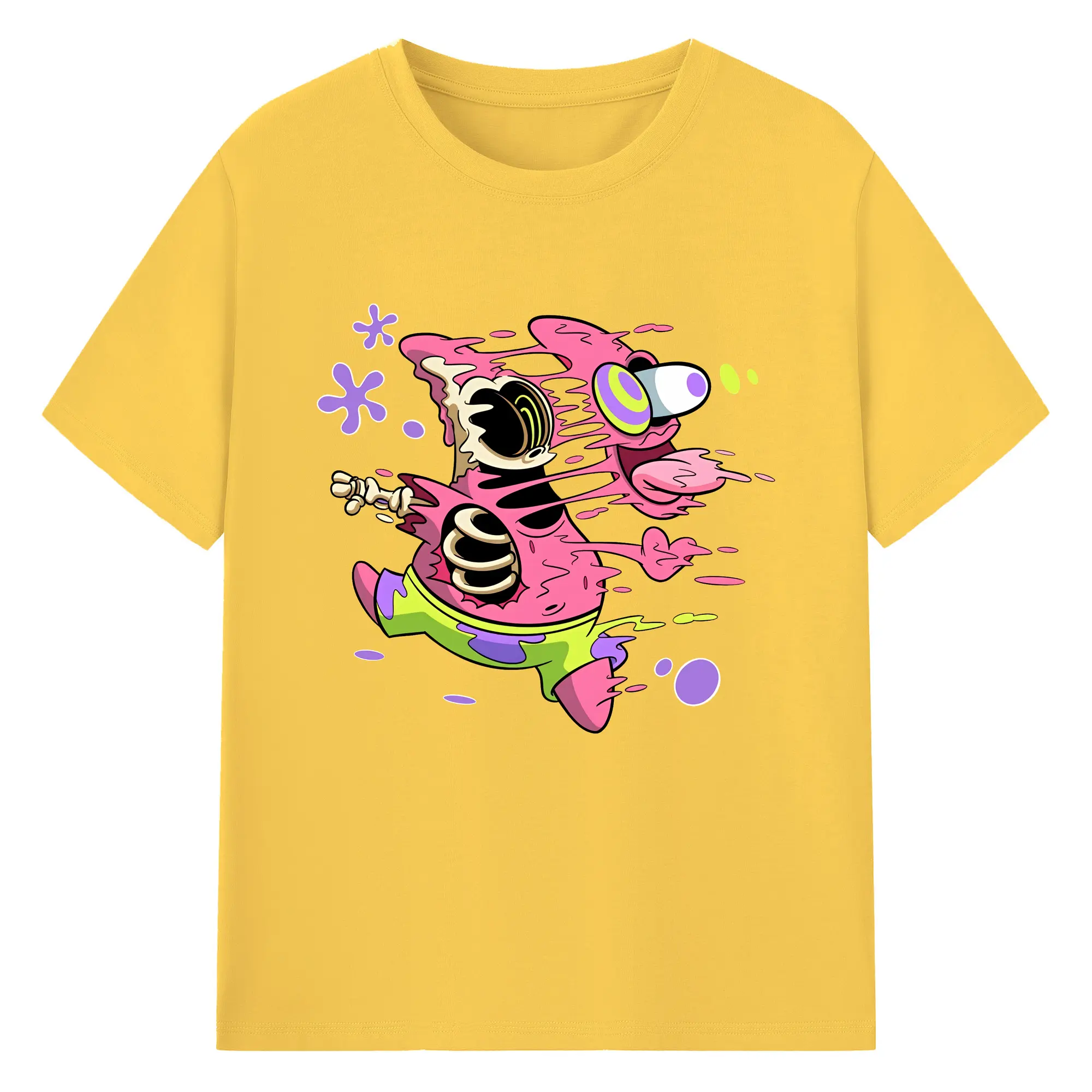 スポンジボブ グッズ パトリック・スター - 綿100% ヴィンテージ風 半袖Tシャツ ・ フロントプリント ・ 柔らか肌触り ・ 通気性 快適 ・ スポーツ カジュアル 外出用
