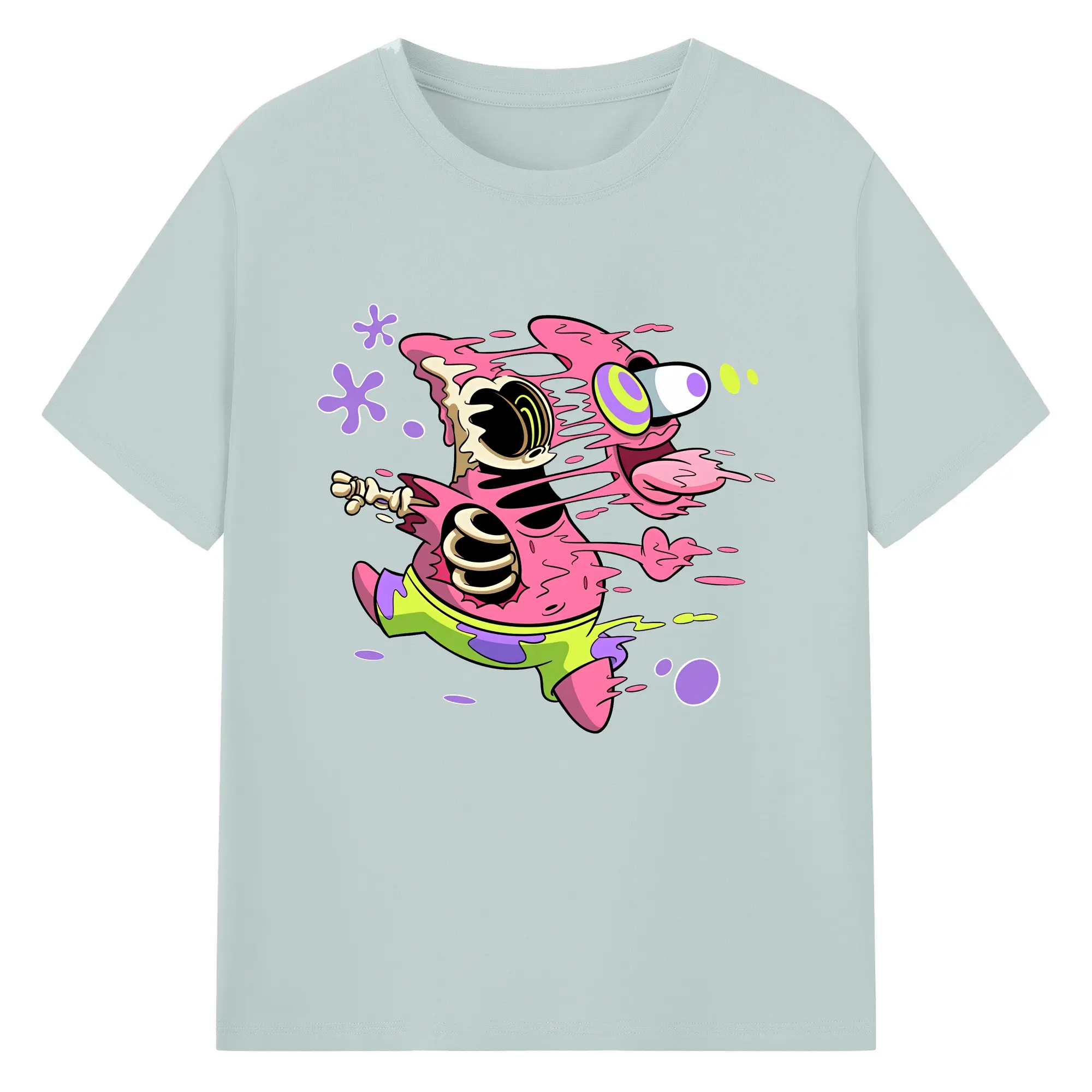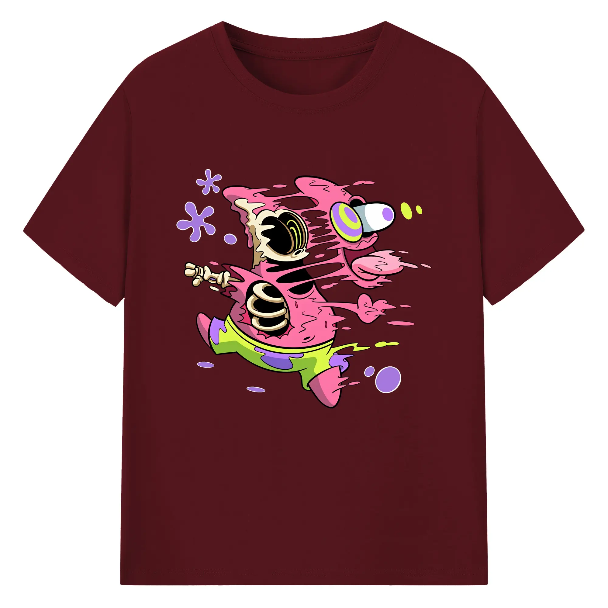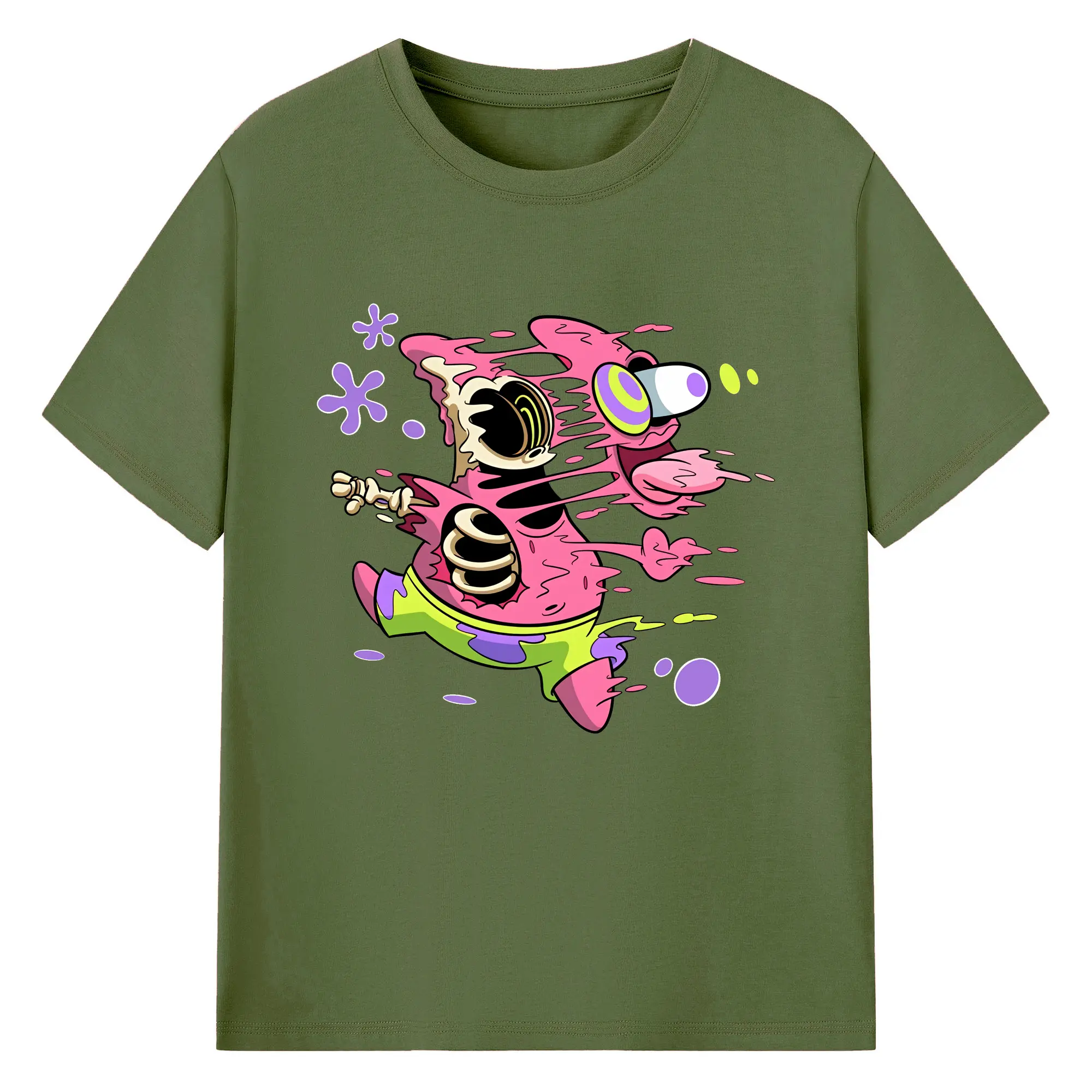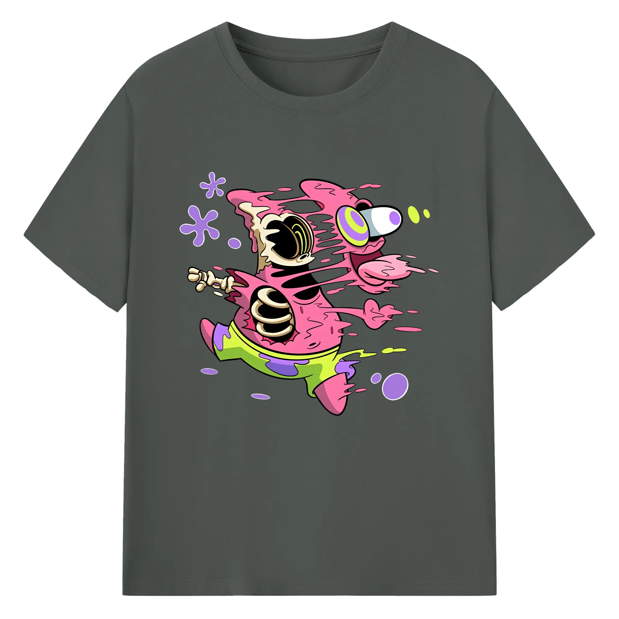 スポンジボブ グッズ パトリック・スター - 綿100% ヴィンテージ風 半袖Tシャツ ・ フロントプリント ・ 柔らか肌触り ・ 通気性 快適 ・ スポーツ カジュアル 外出用