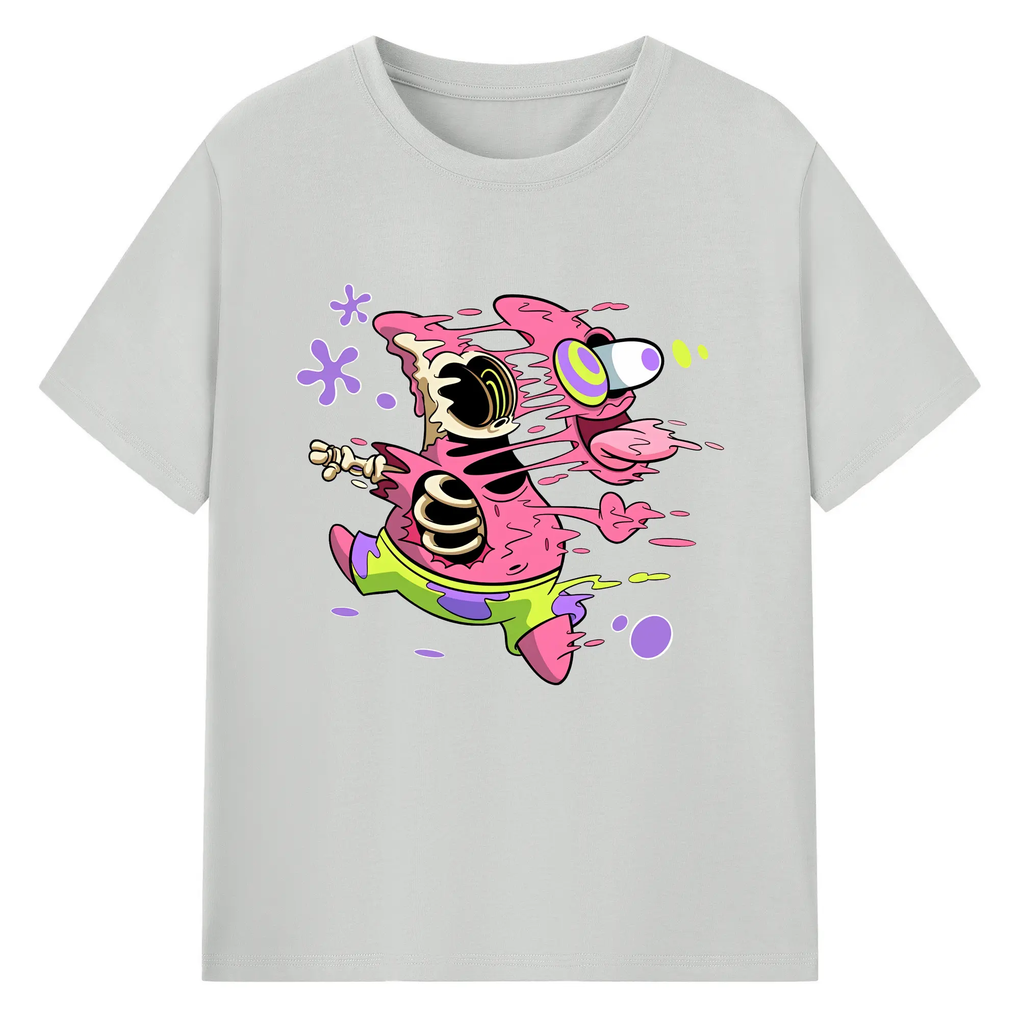 スポンジボブ グッズ パトリック・スター - 綿100% ヴィンテージ風 半袖Tシャツ ・ 背面プリント ・ 柔らか肌触り ・ 通気性 快適 ・ スポーツ カジュアル 外出用