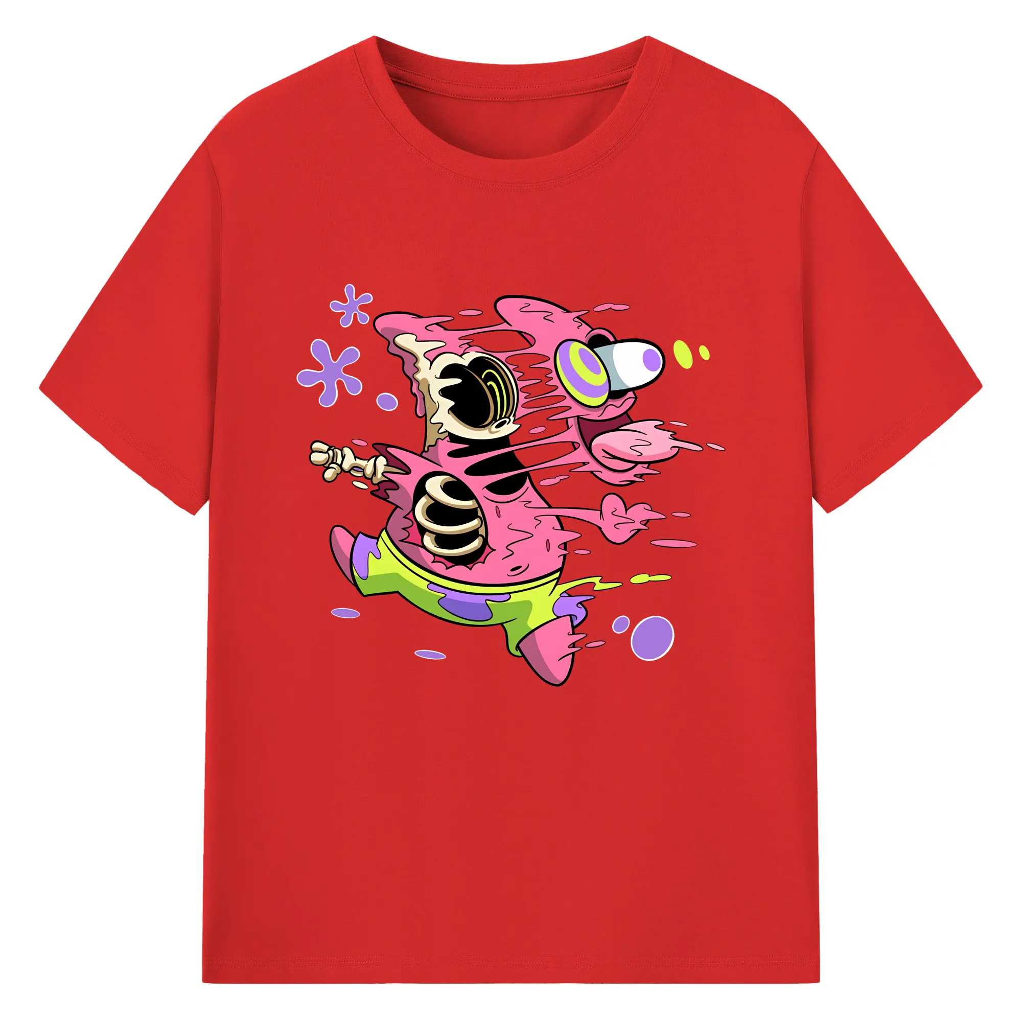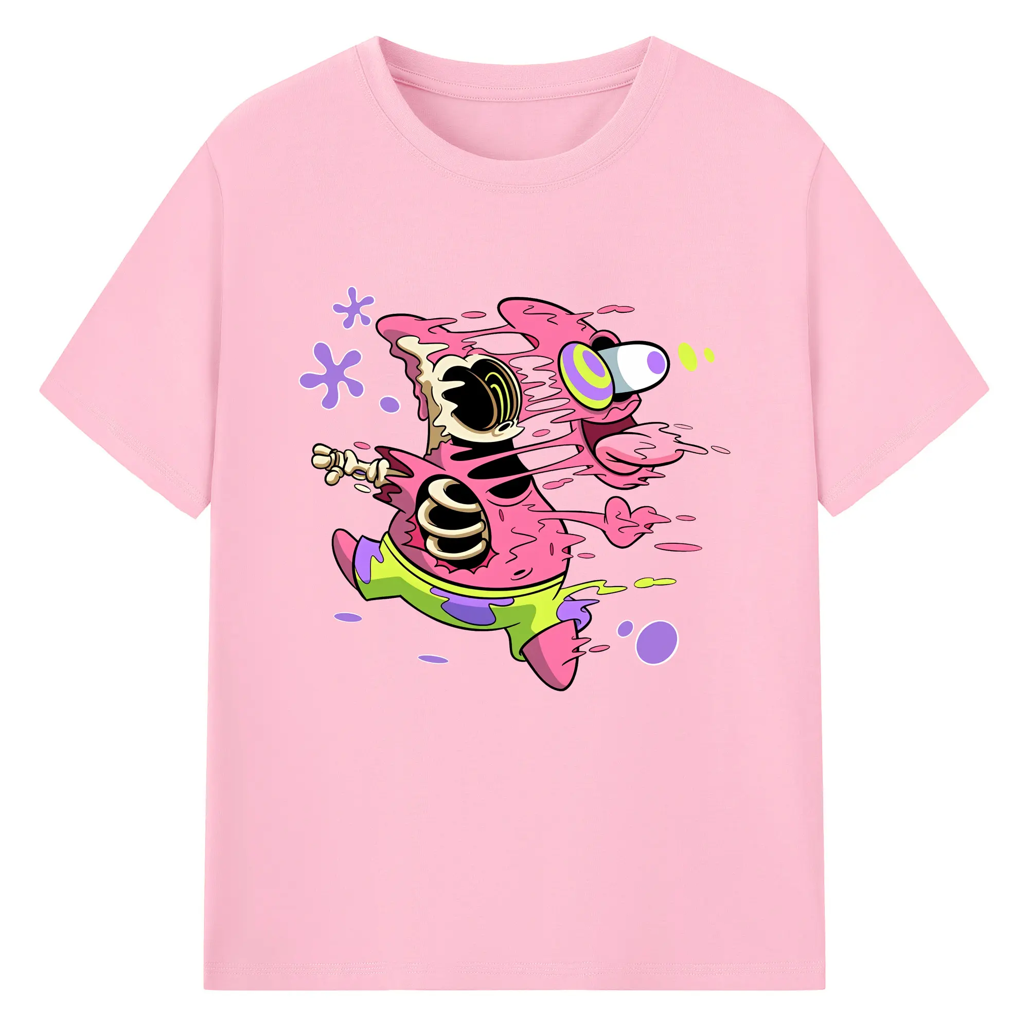 スポンジボブ グッズ パトリック・スター - 綿100% 半袖Tシャツ ・ バックプリント ・ 快適 通気性 ・ 日常使い 散歩 スポーツ用