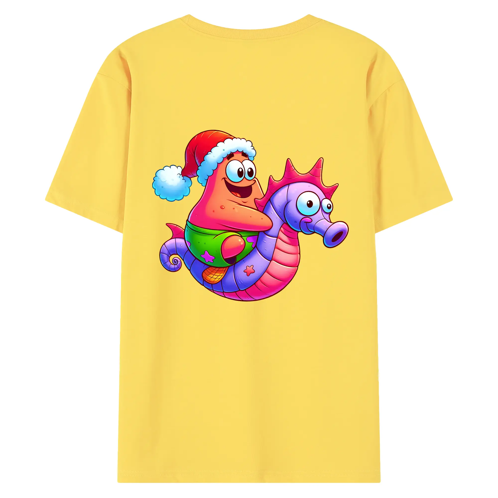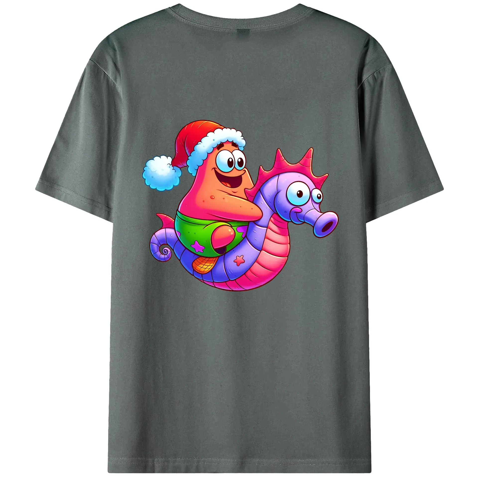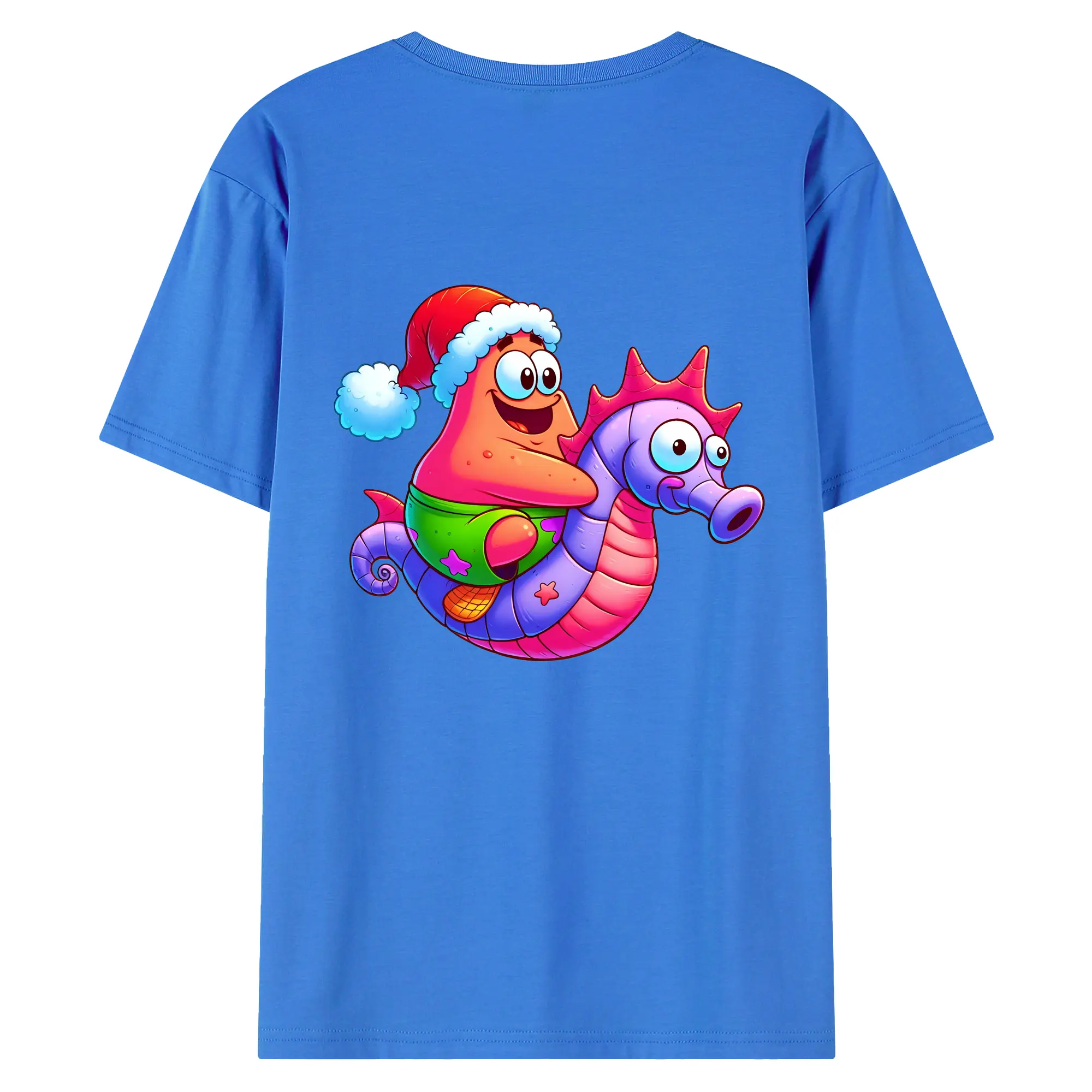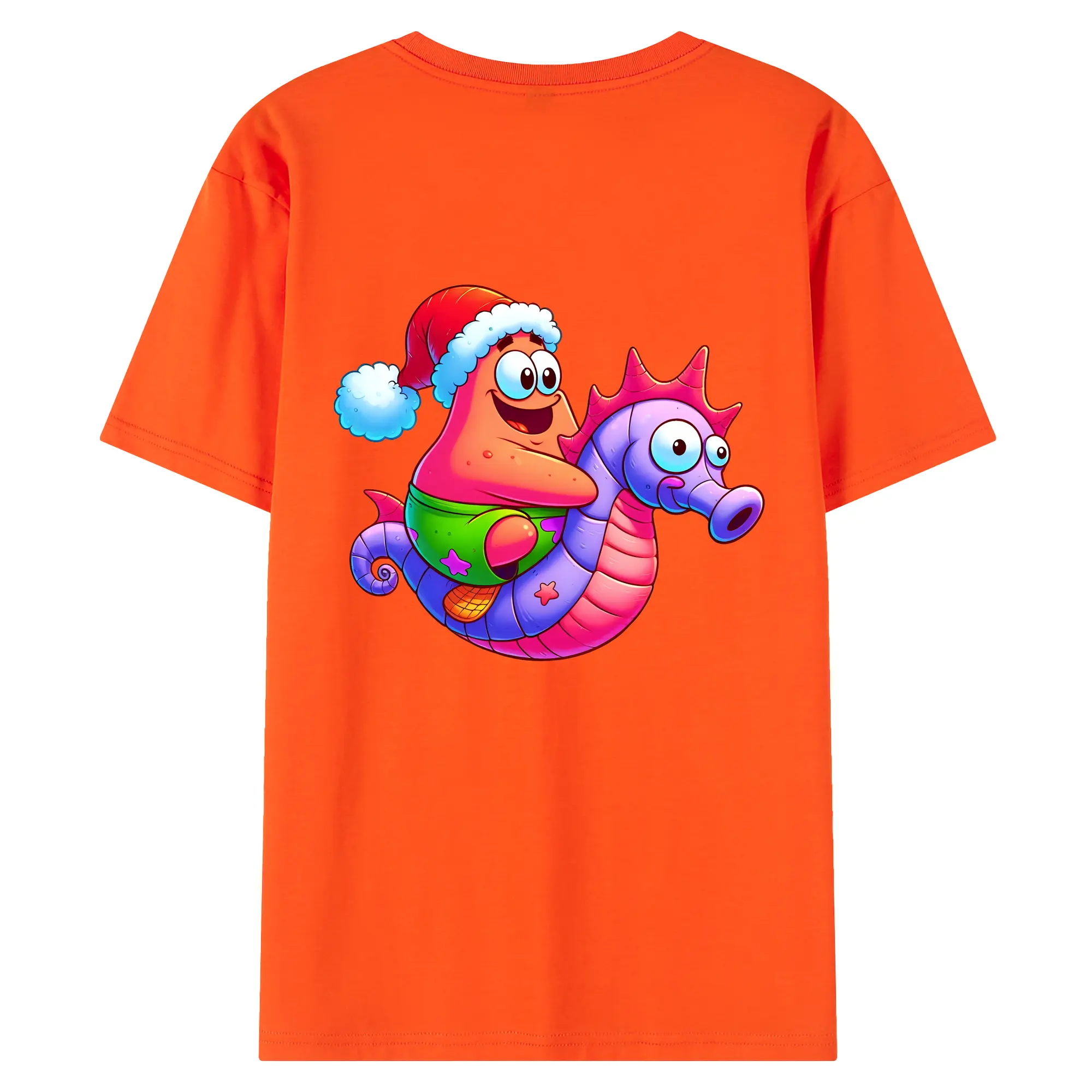 スポンジボブ グッズ パトリック・スター - 綿100% 半袖Tシャツ ・ フロントプリント ・ 快適 通気性 ・ 日常使い 散歩 スポーツ用