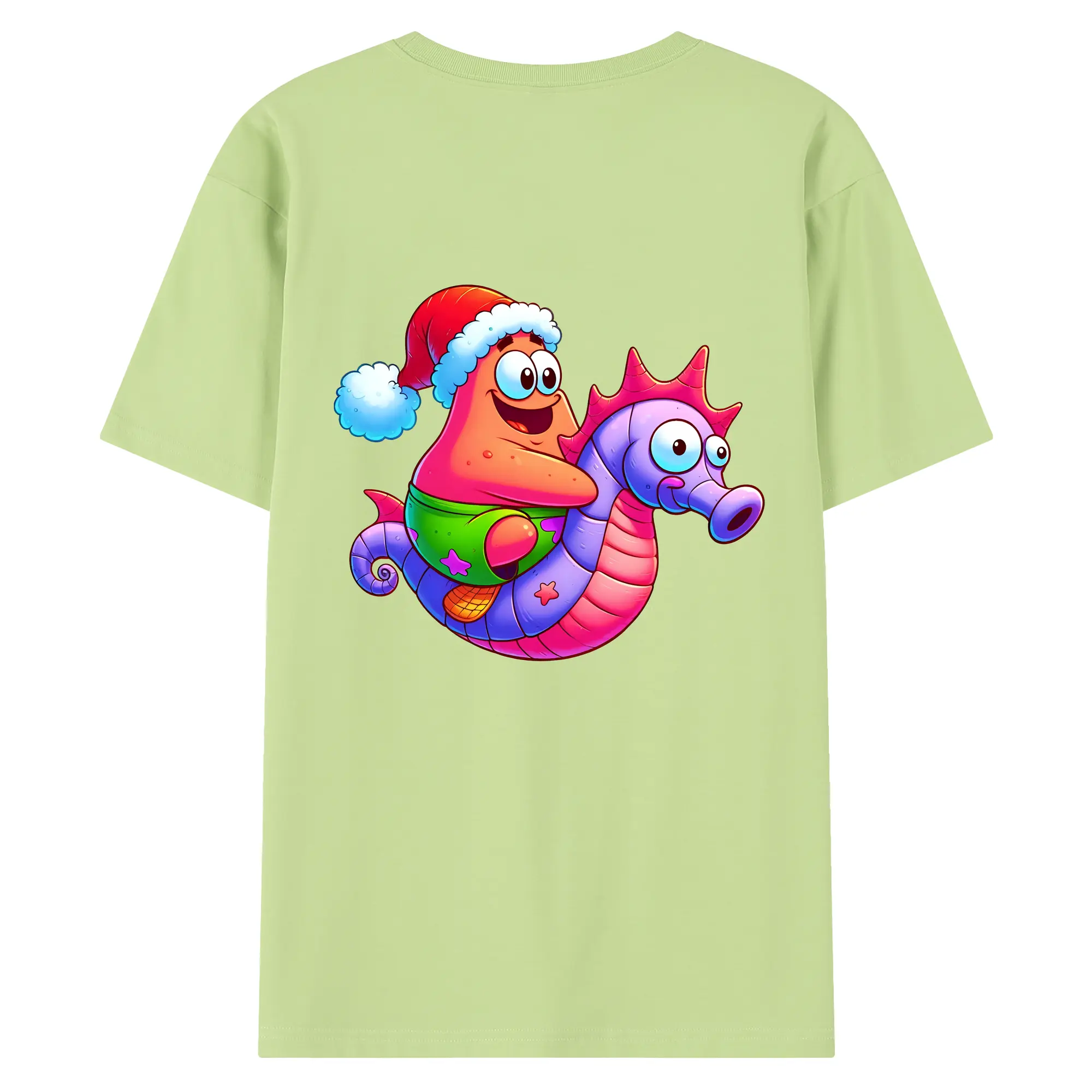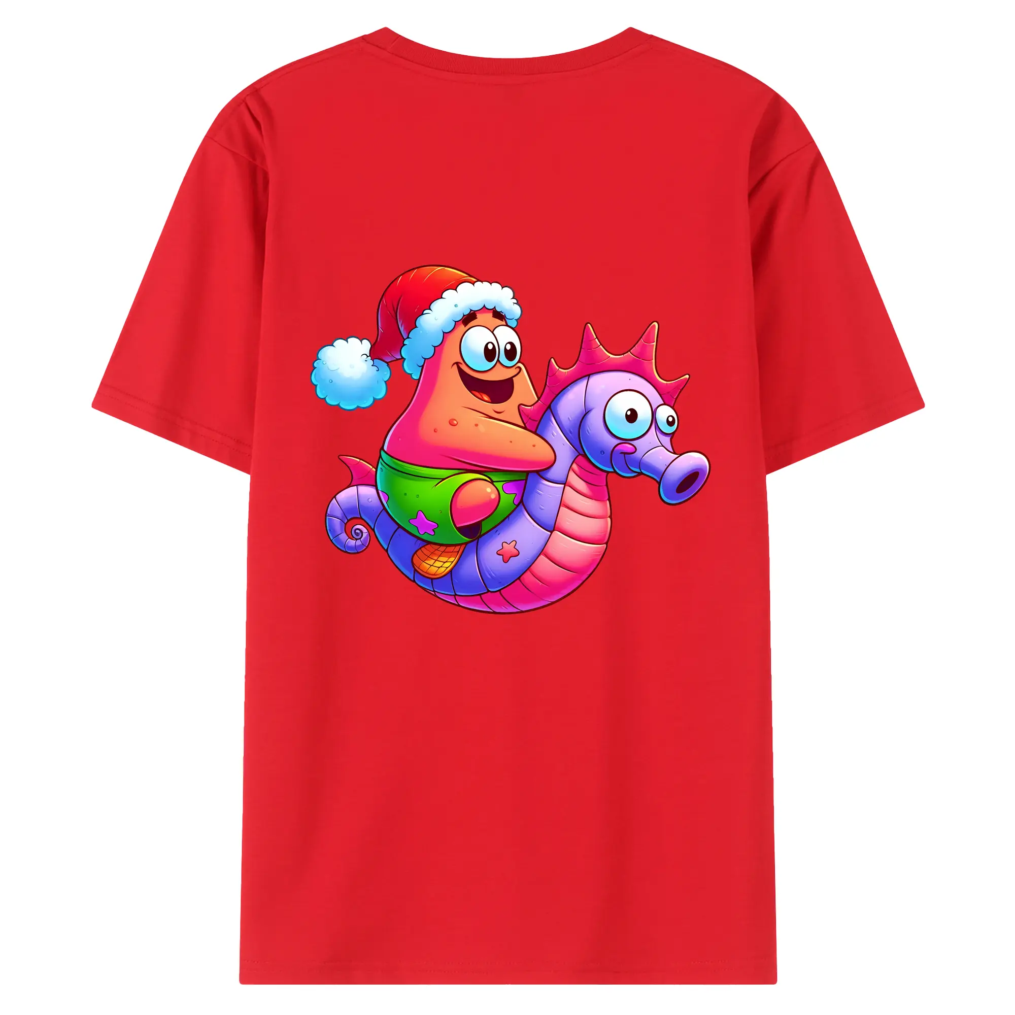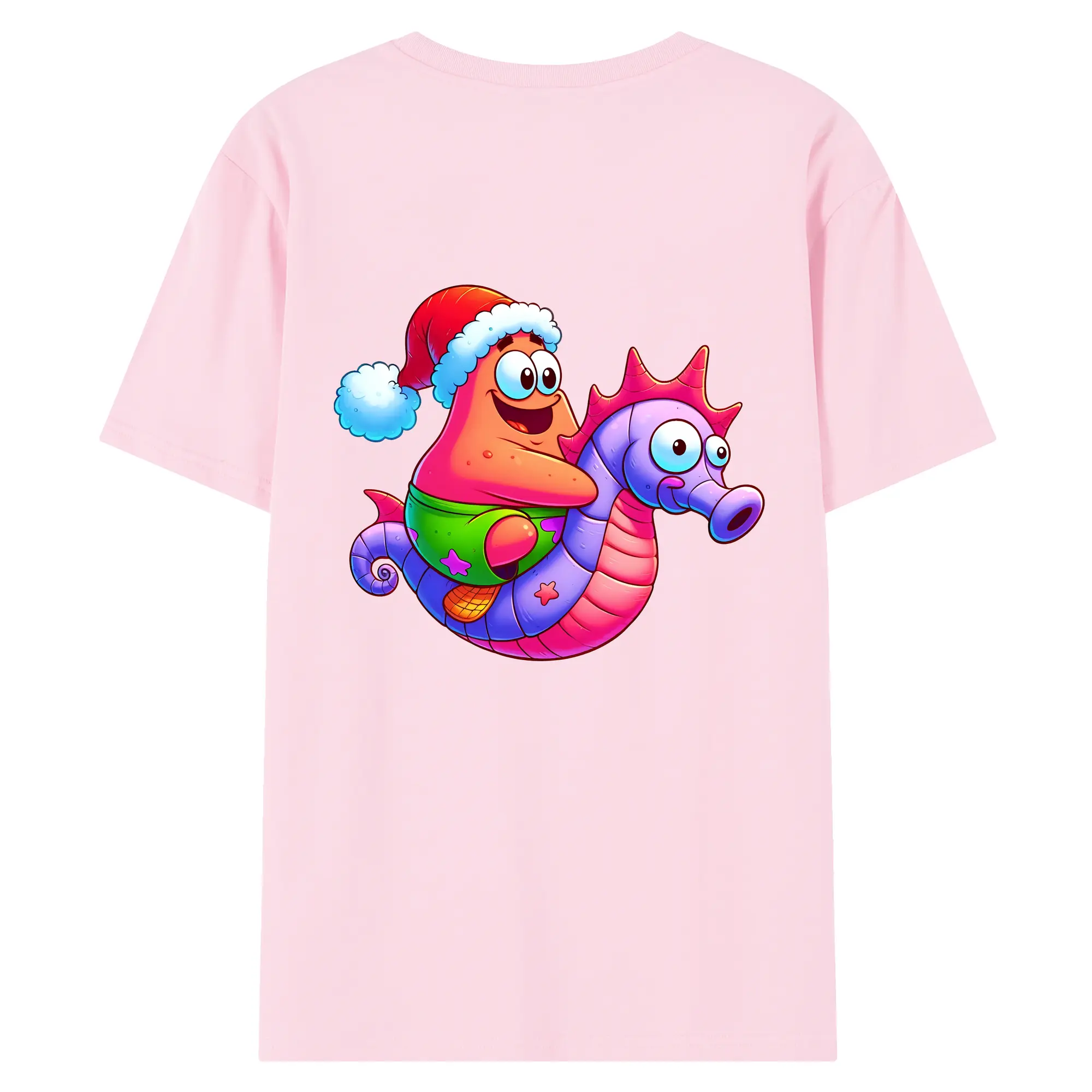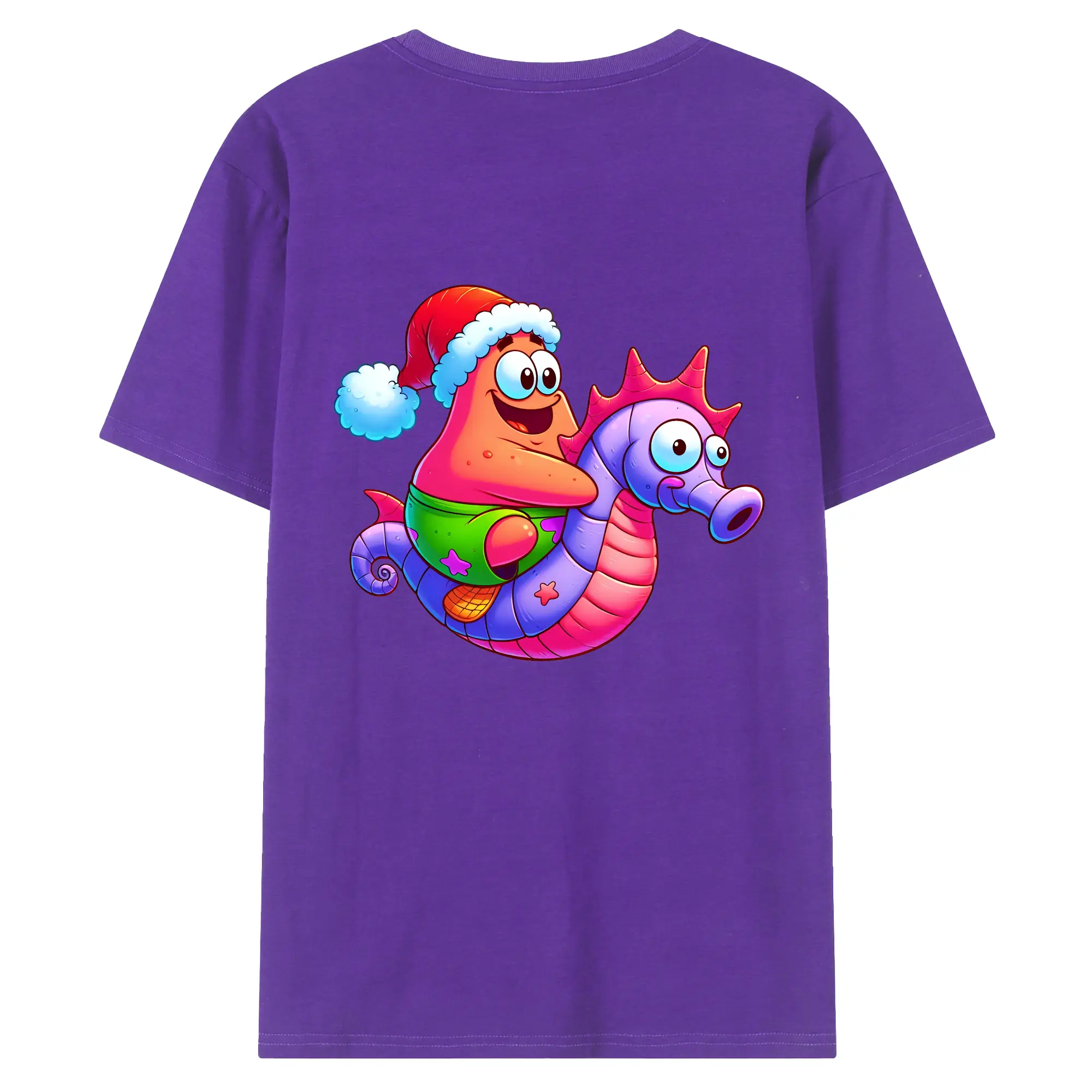 スポンジボブ グッズ パトリック・スター - 綿100% 半袖Tシャツ ・ フロントプリント ・ 快適 通気性 ・ 日常使い 散歩 スポーツ用