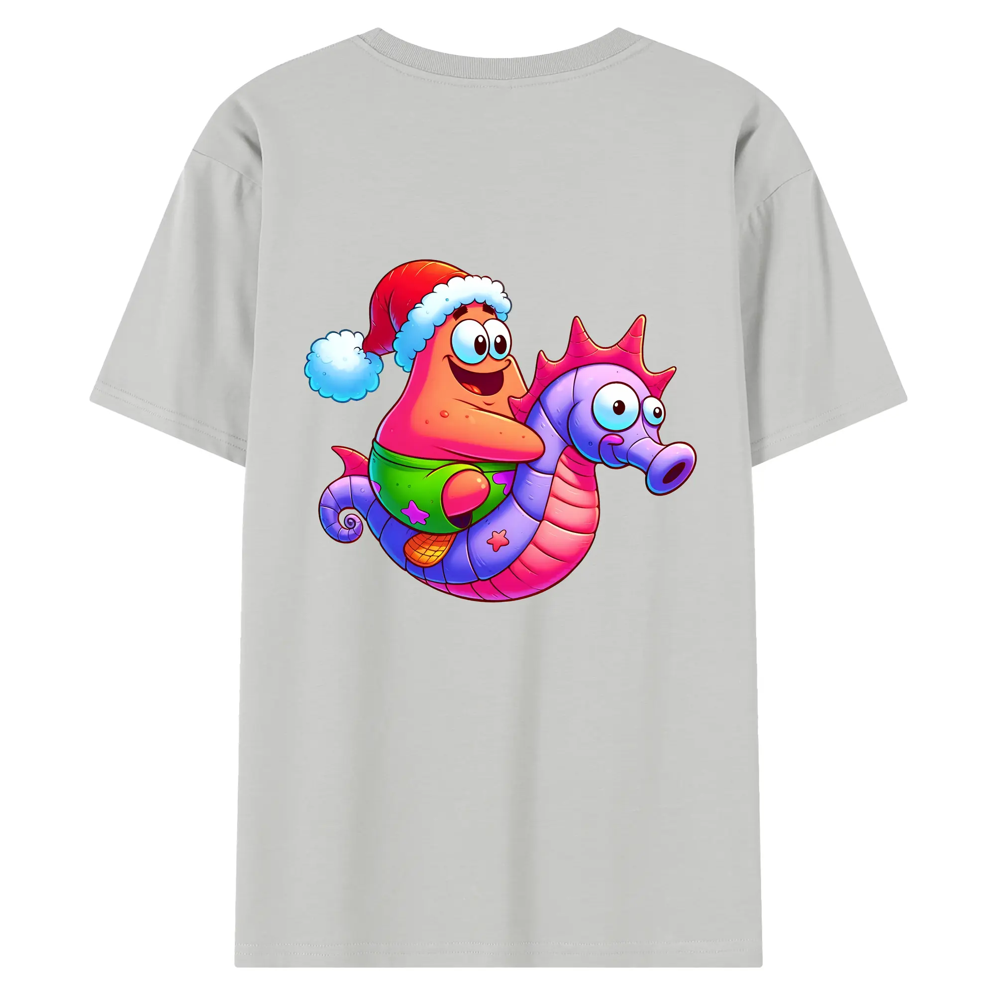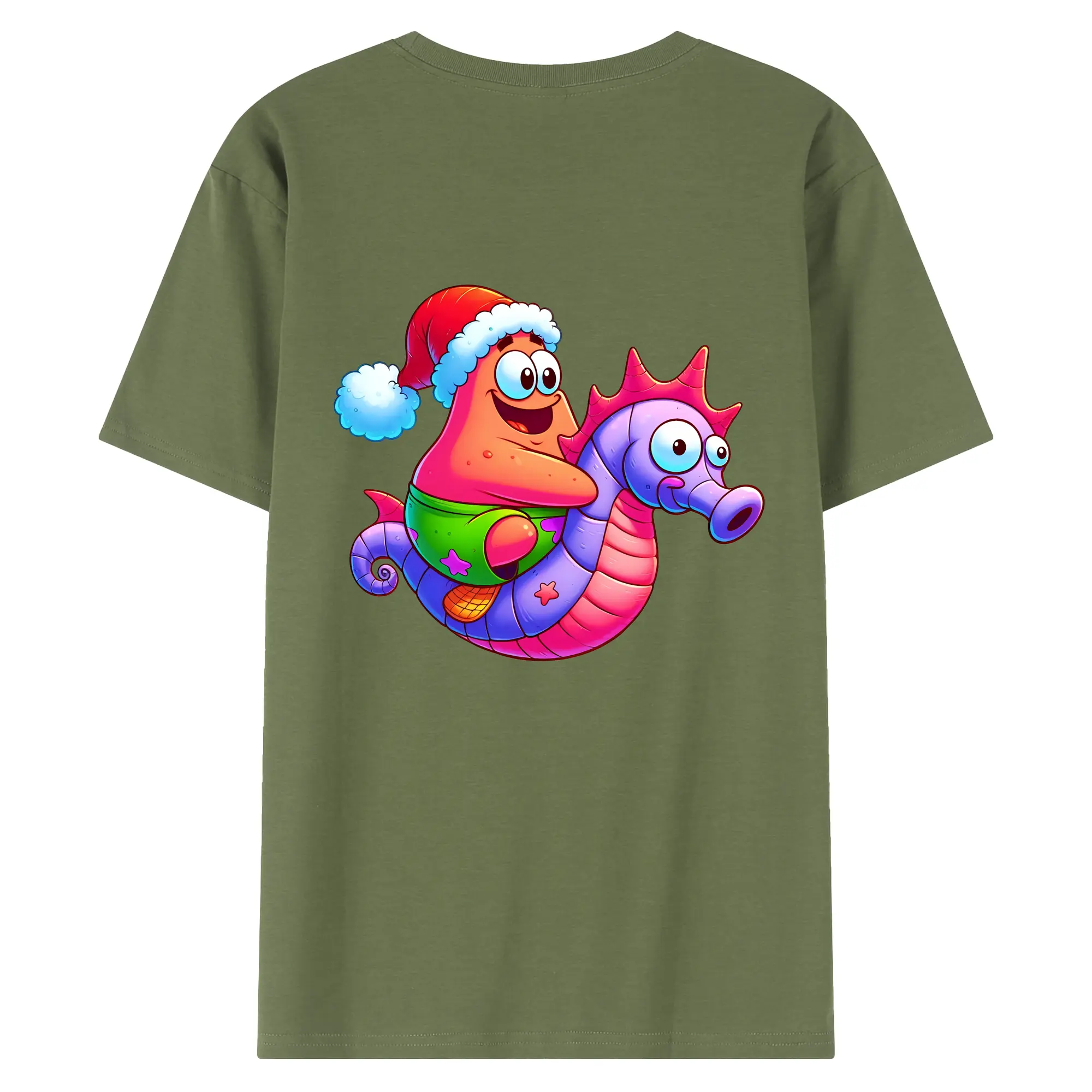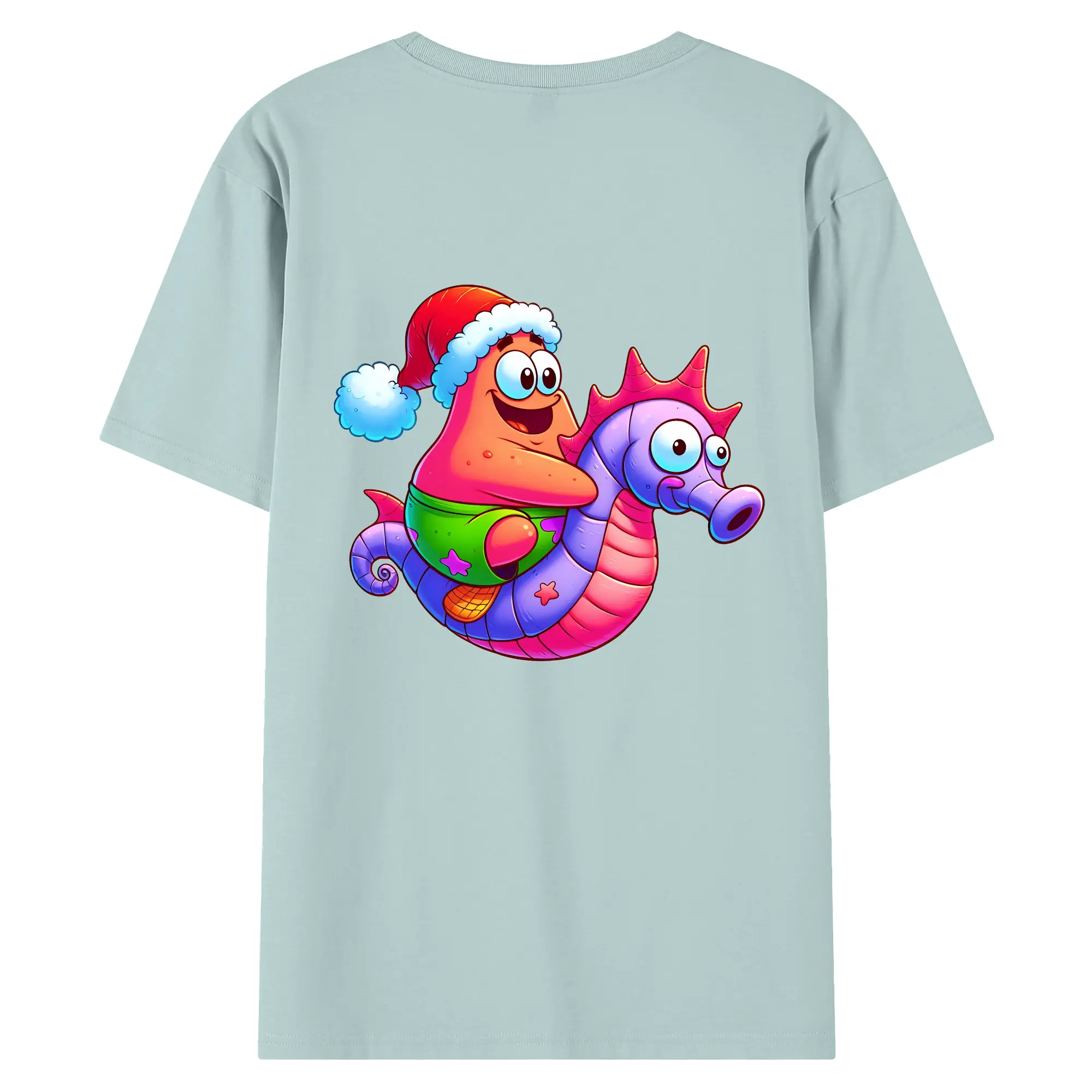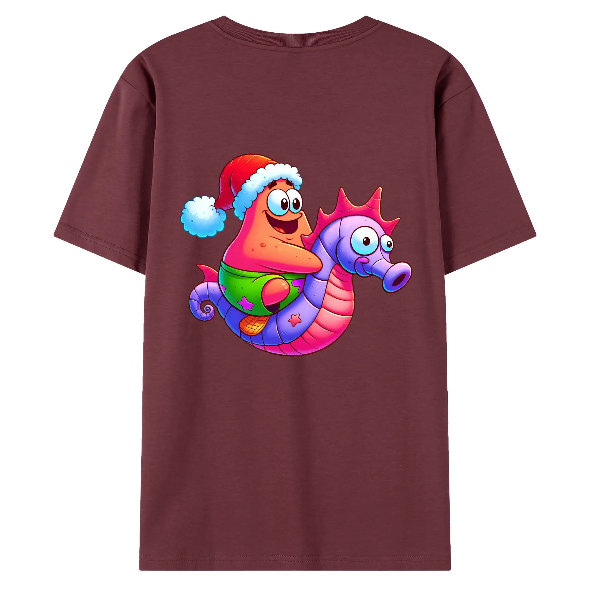 スポンジボブ グッズ パトリック・スター - 綿100% 半袖Tシャツ ・ フロントプリント ・ 快適 通気性 ・ 日常使い 散歩 スポーツ用