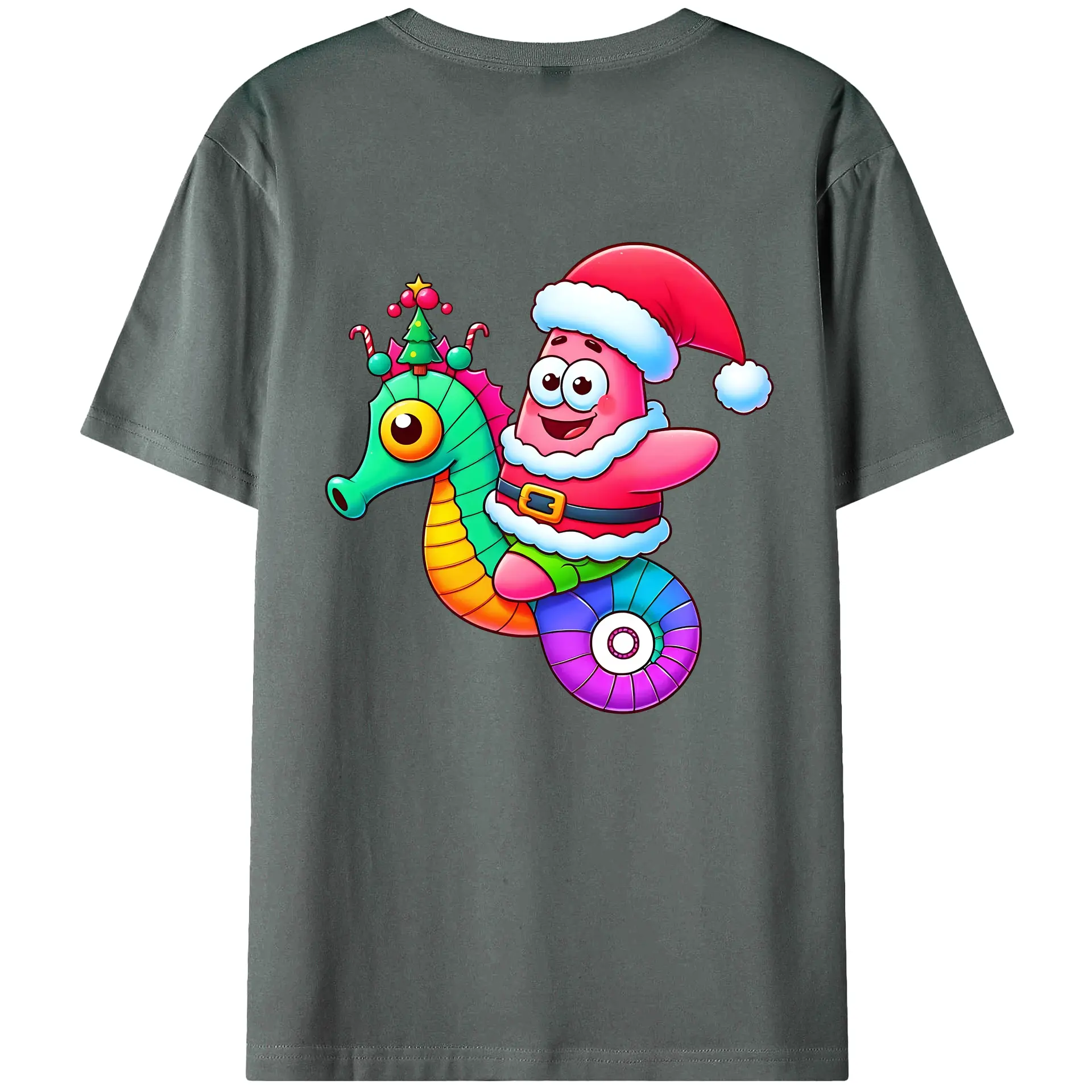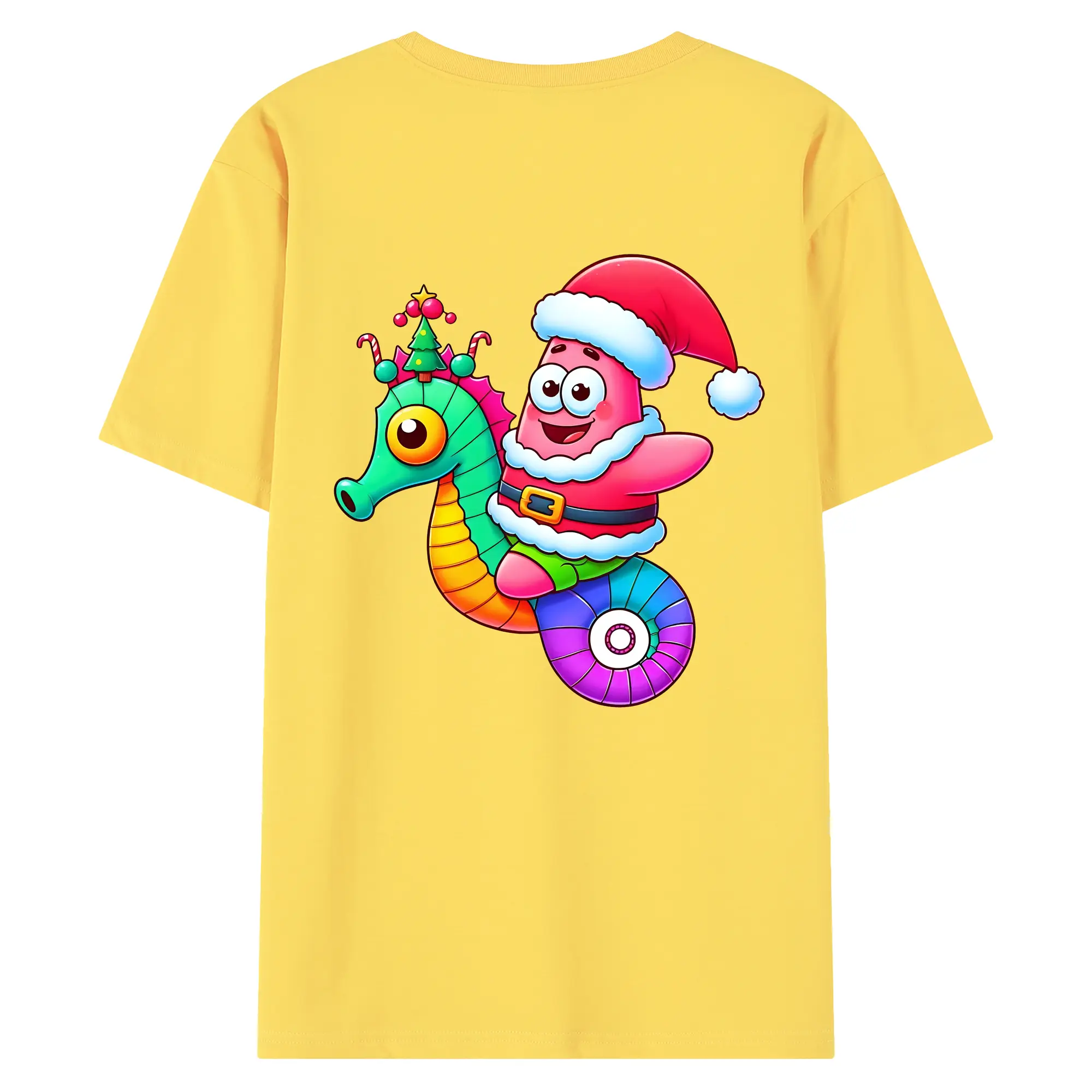 スポンジボブ グッズ パトリック・スター - 綿100% 半袖Tシャツ ・ フロントプリント ・ 快適 通気性 ・ 日常使い 散歩 スポーツ用