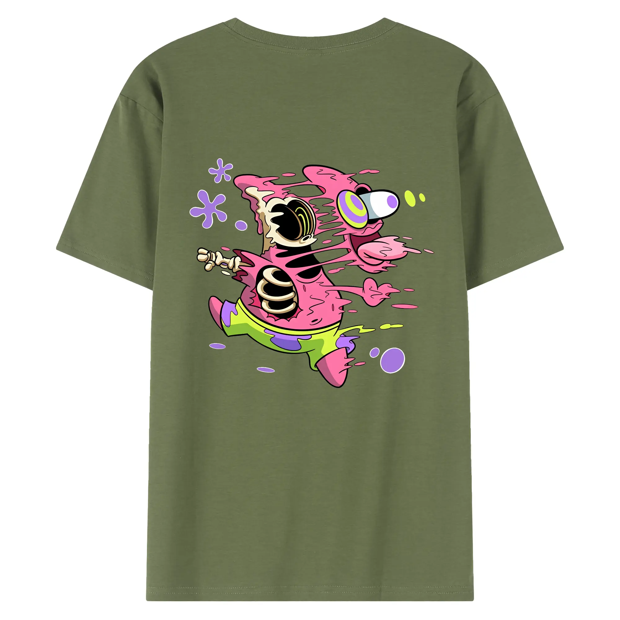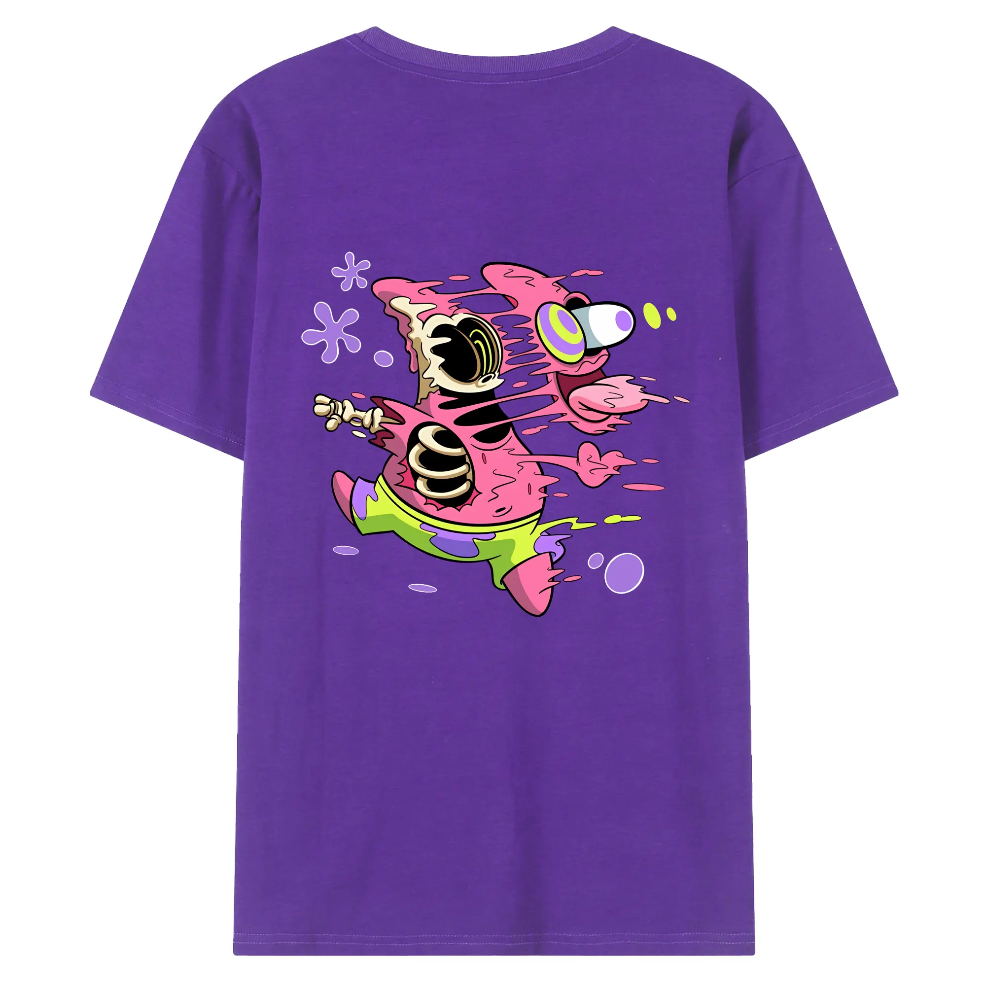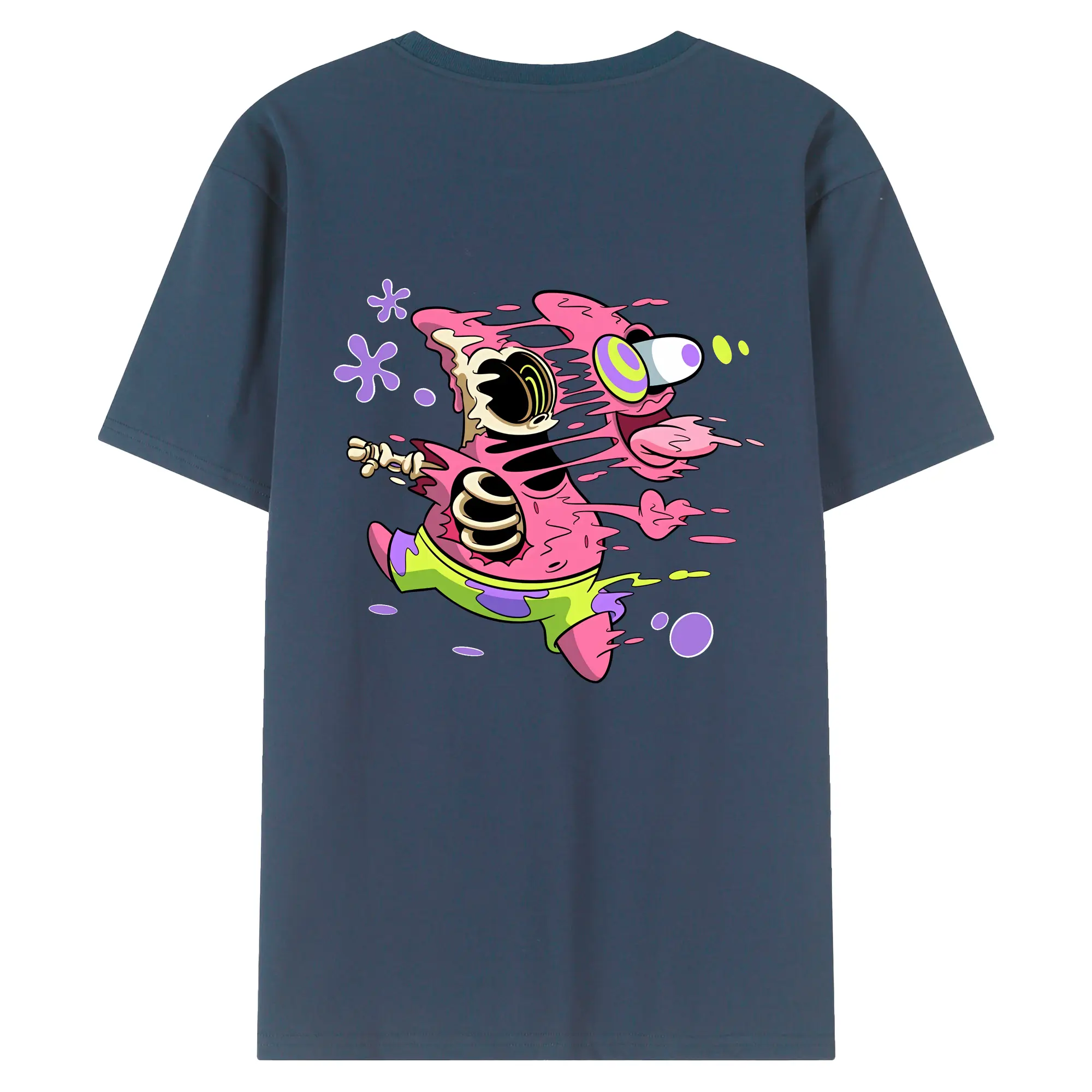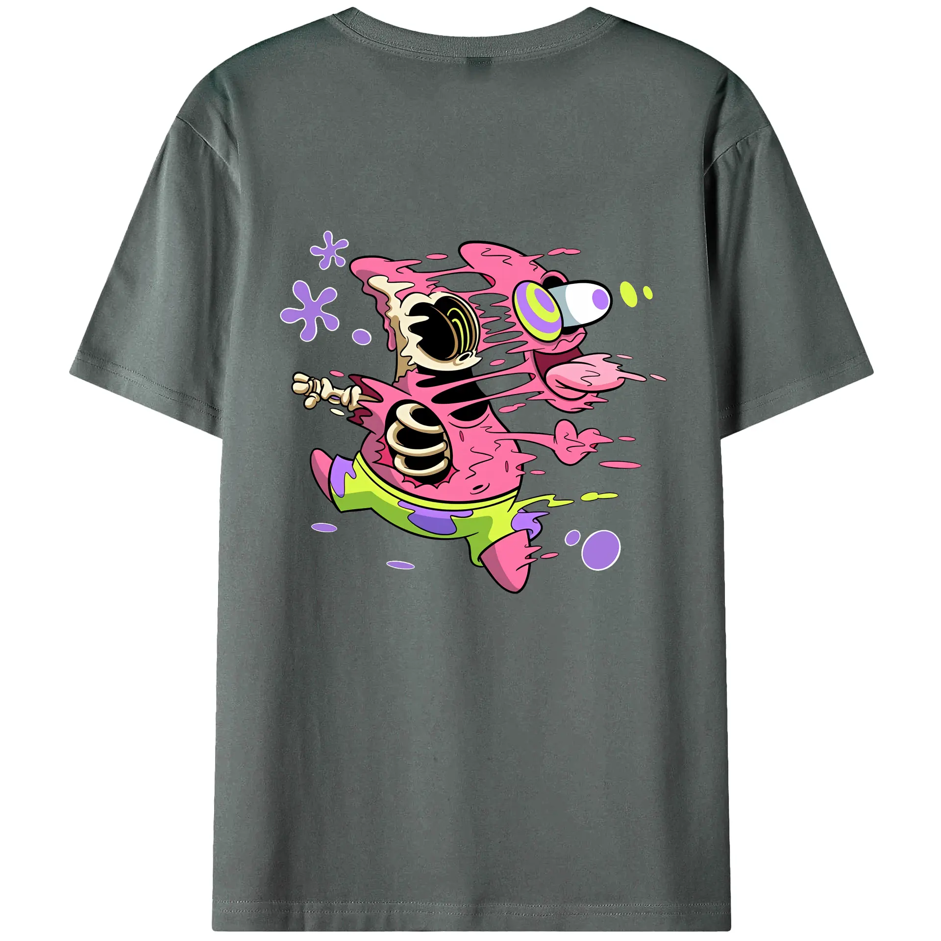 スポンジボブ グッズ パトリック・スター - 綿100% ヴィンテージ風 半袖Tシャツ ・ 背面プリント ・ 柔らか肌触り ・ 通気性 快適 ・ スポーツ カジュアル 外出用