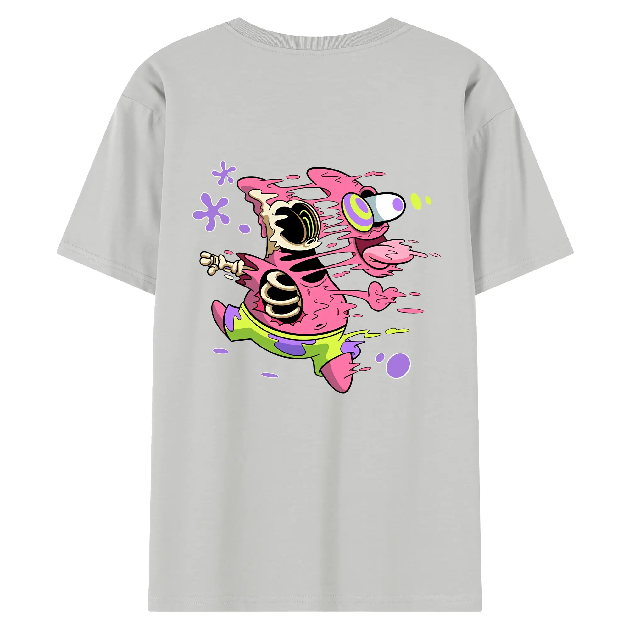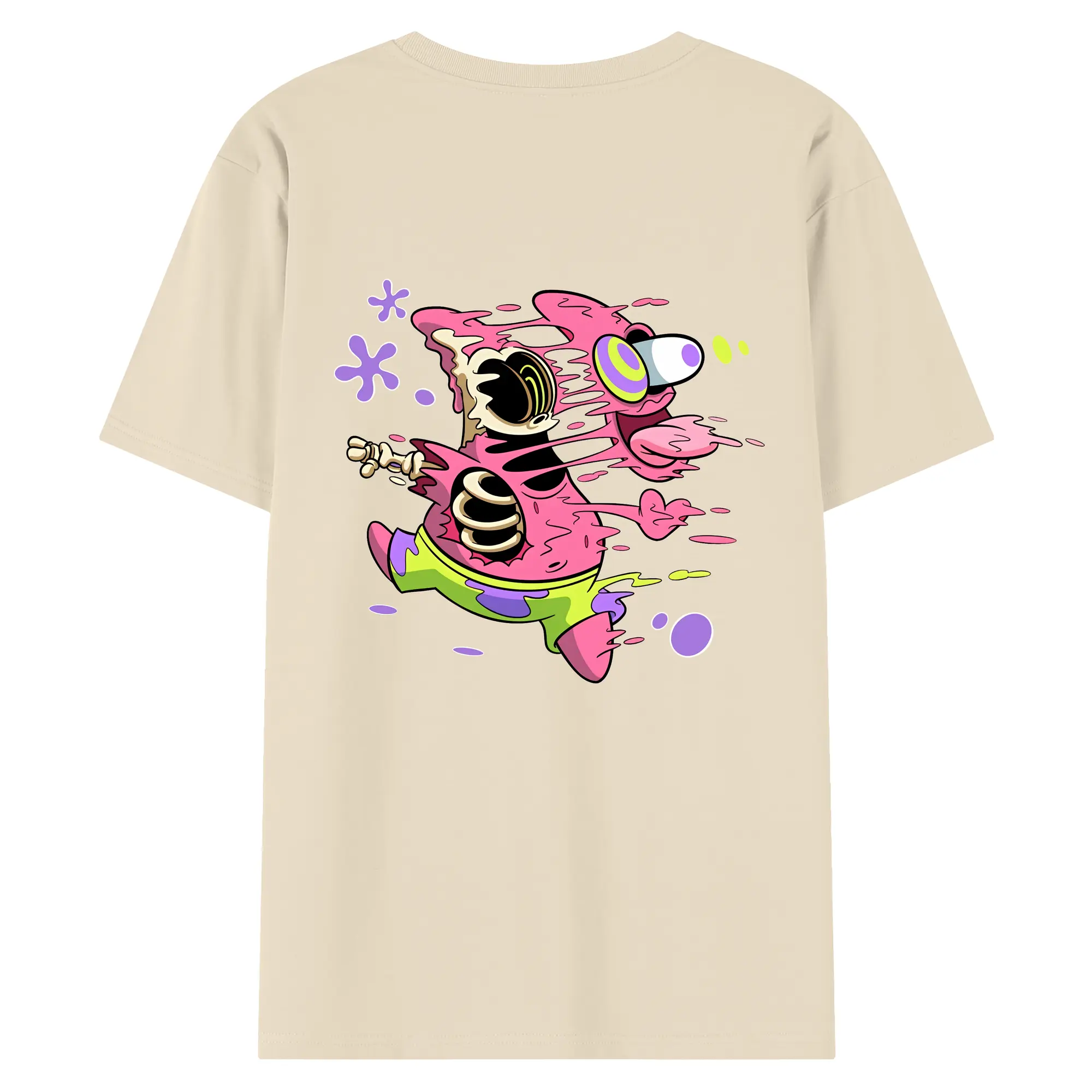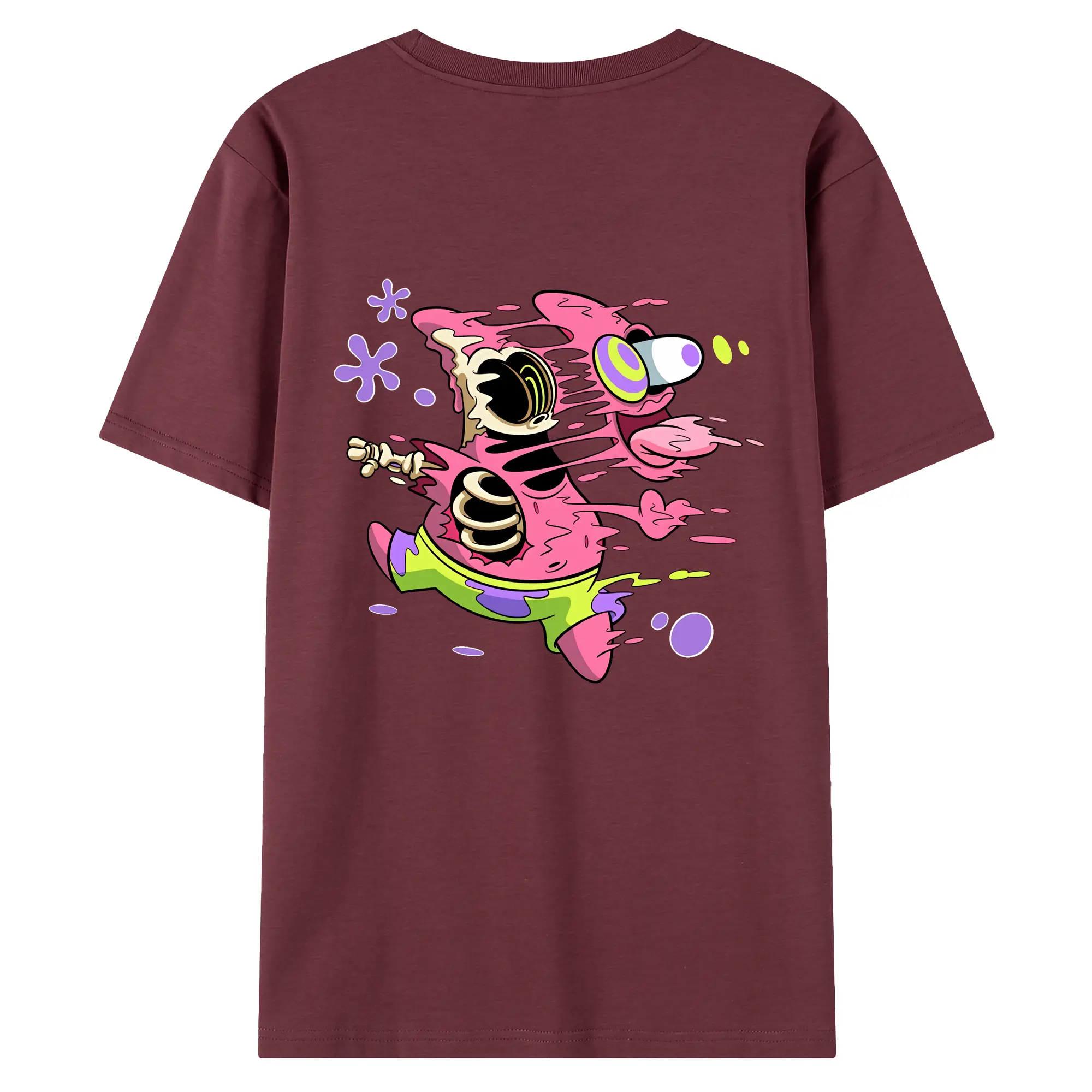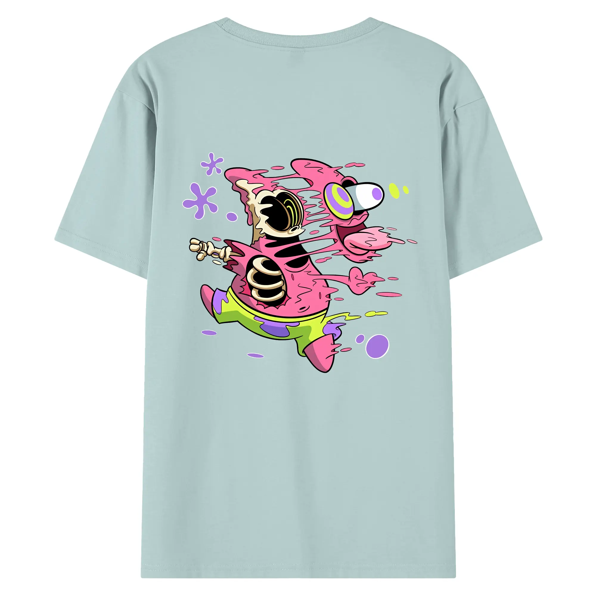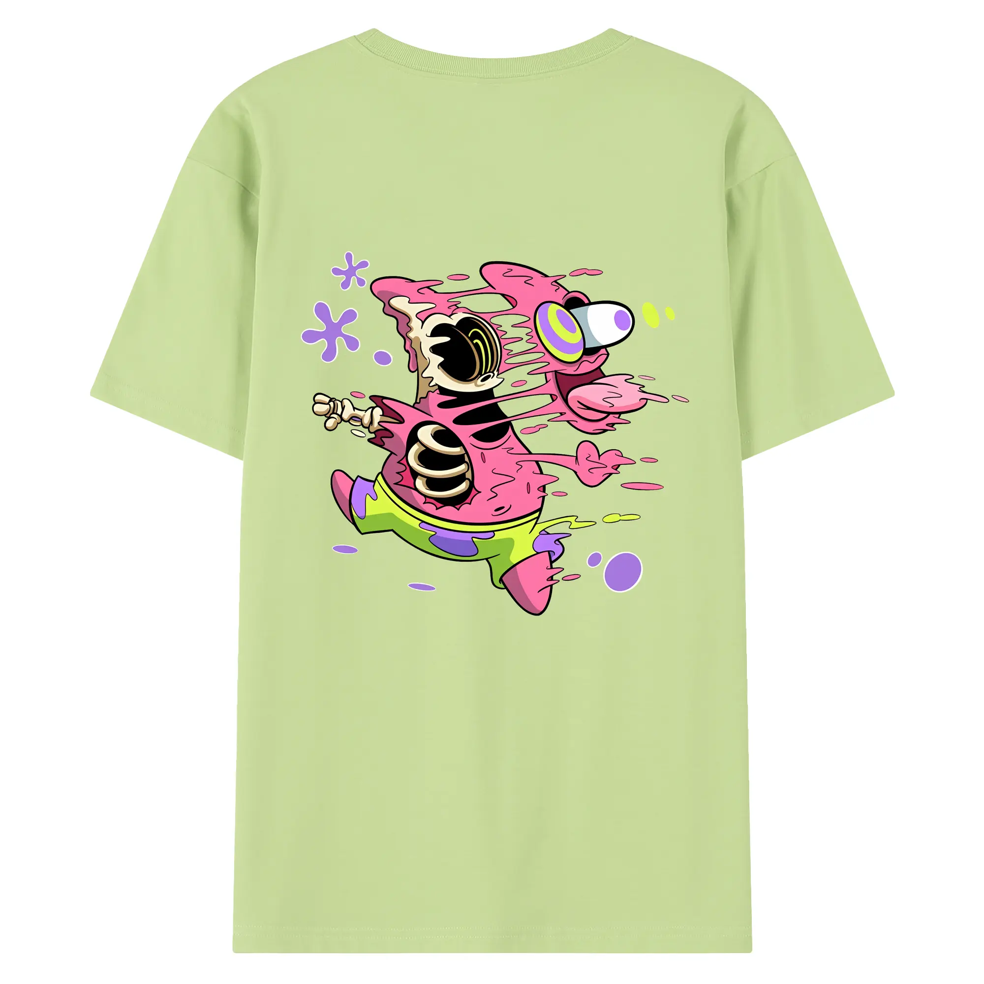 スポンジボブ グッズ パトリック・スター - 綿100% ヴィンテージ風 半袖Tシャツ ・ 背面プリント ・ 柔らか肌触り ・ 通気性 快適 ・ スポーツ カジュアル 外出用