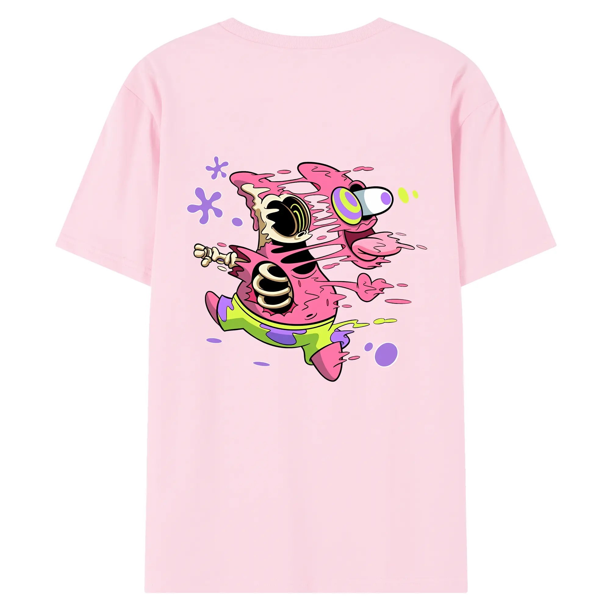スポンジボブ グッズ パトリック・スター - 綿100% 半袖Tシャツ ・ フロントプリント ・ 快適 通気性 ・ 日常使い 散歩 スポーツ用