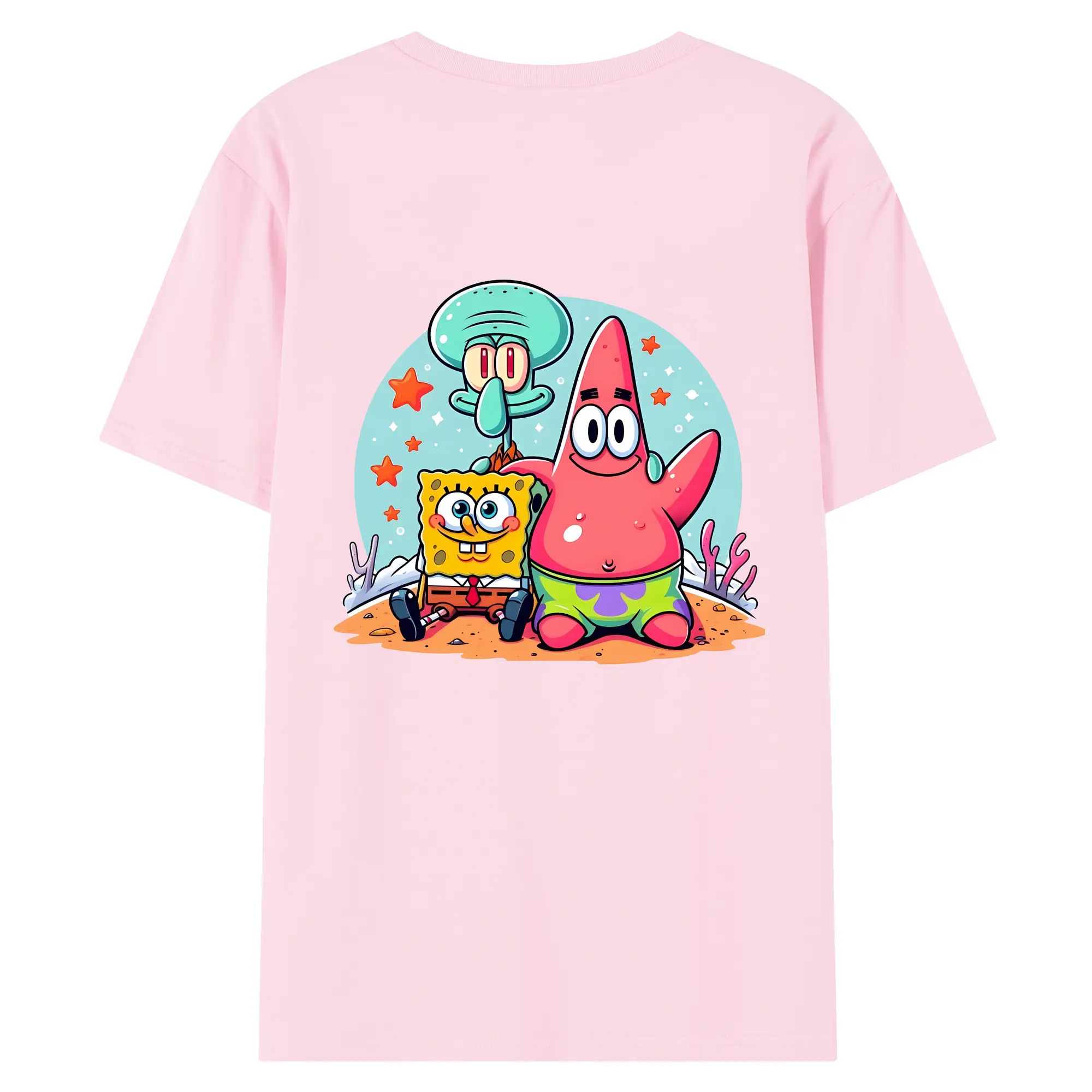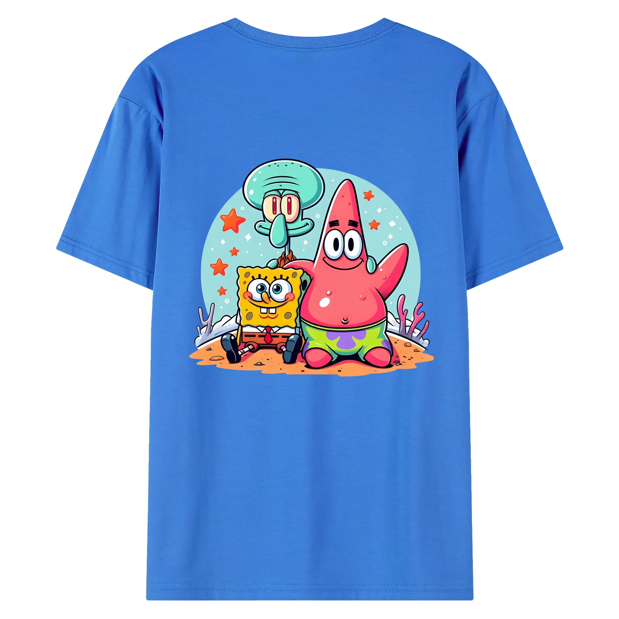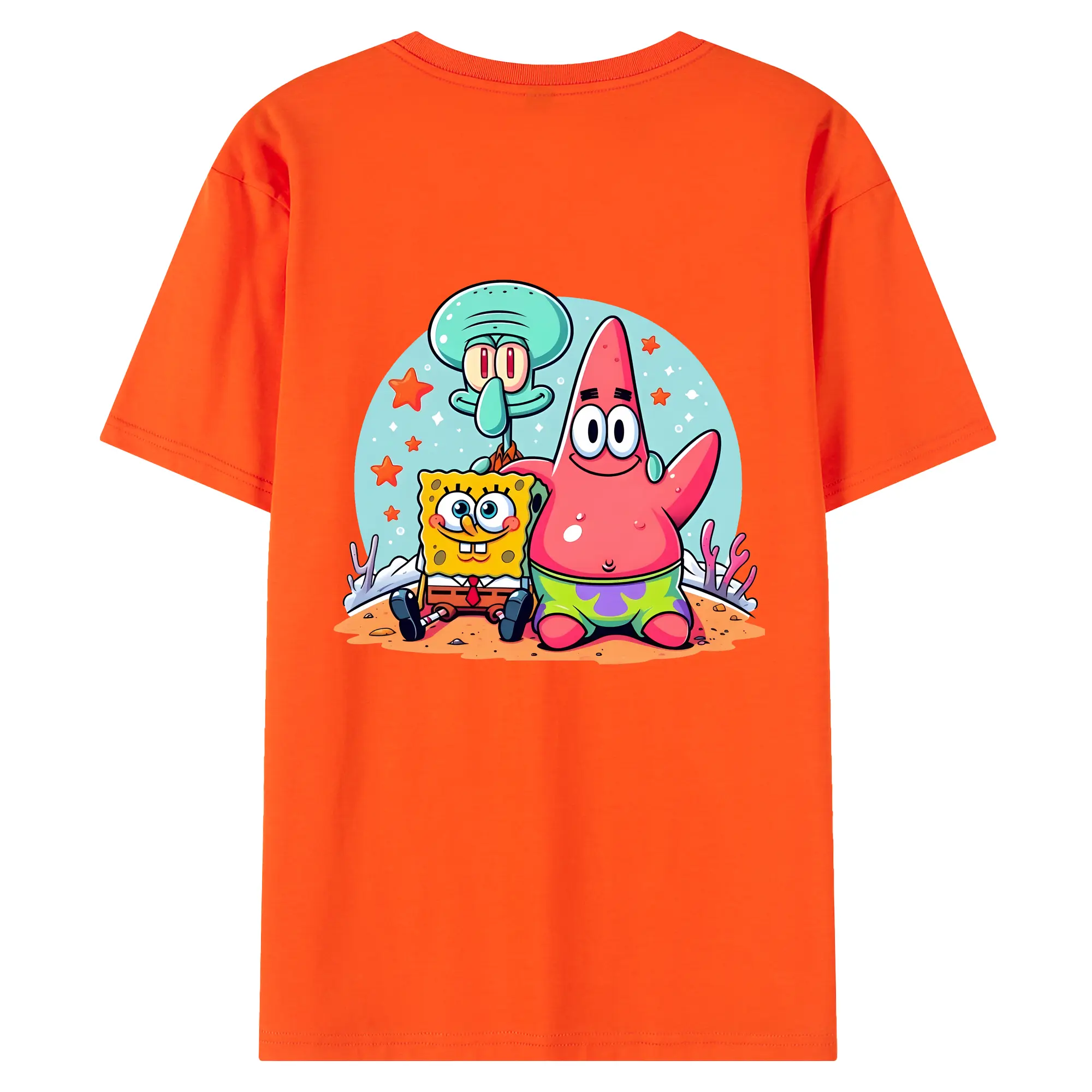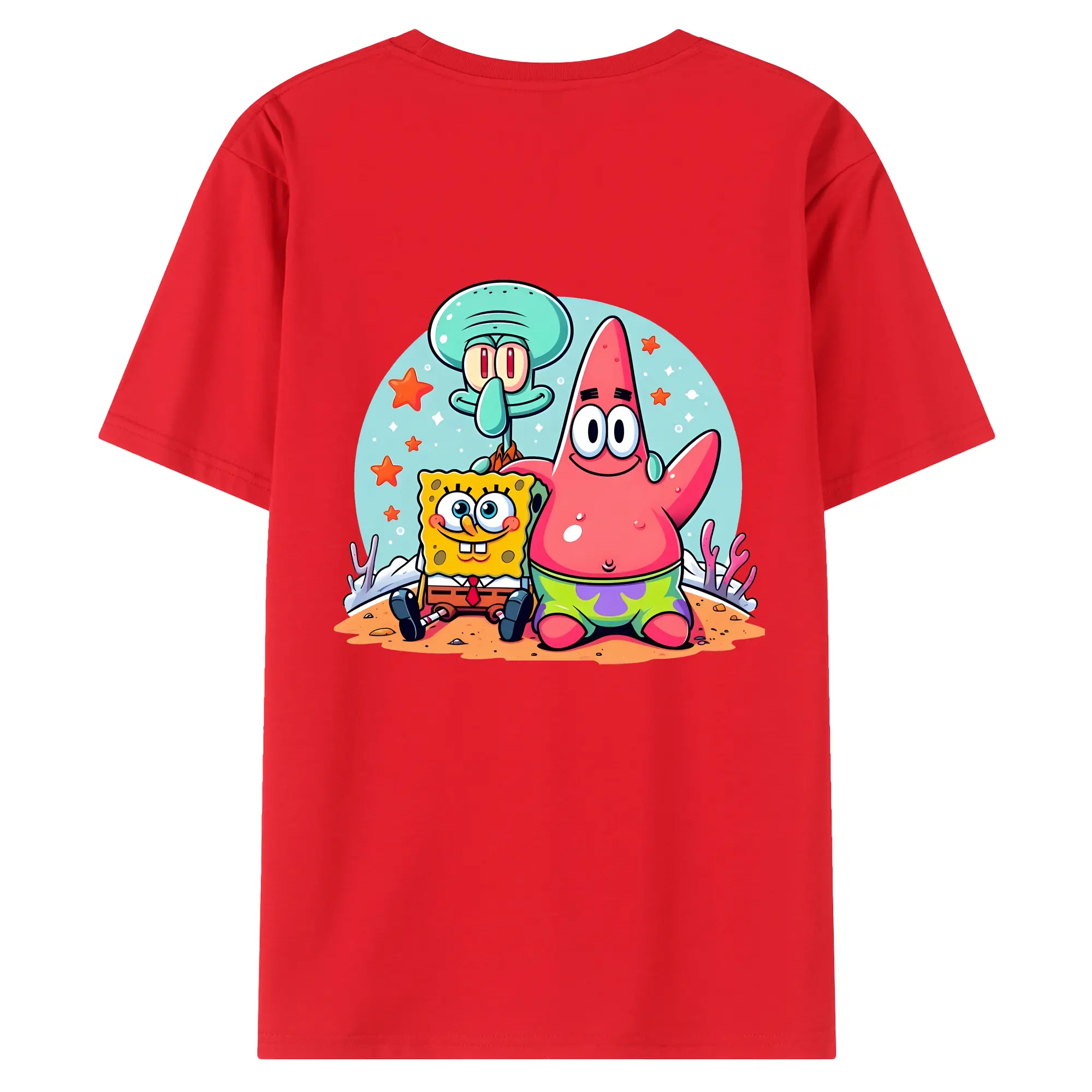 スポンジボブ グッズ パトリック・スター - 綿100% 半袖Tシャツ ・ フロントプリント ・ 快適 通気性 ・ 日常使い 散歩 スポーツ用