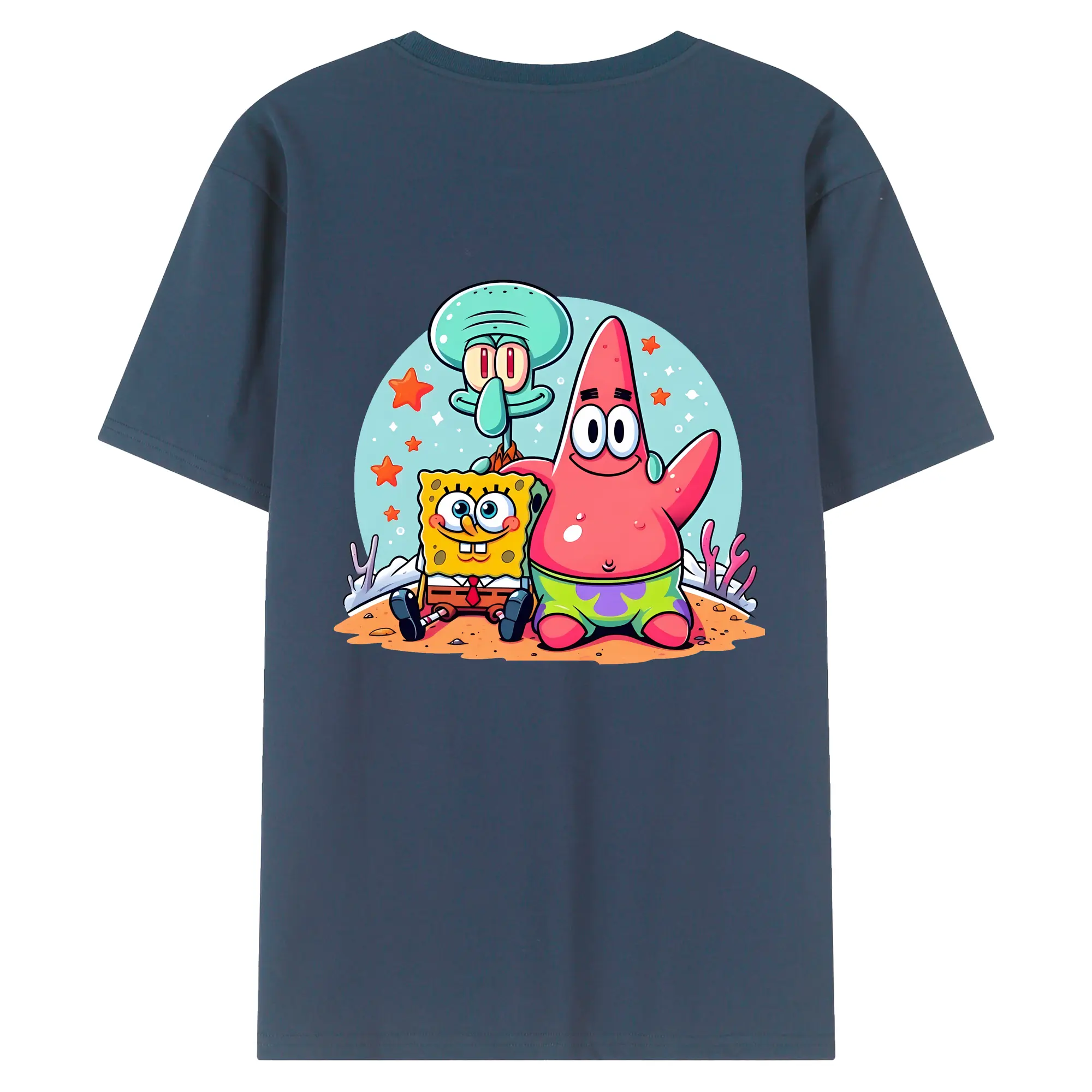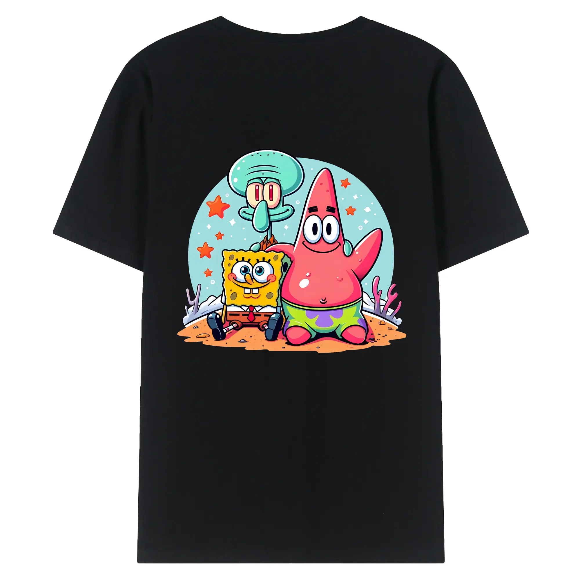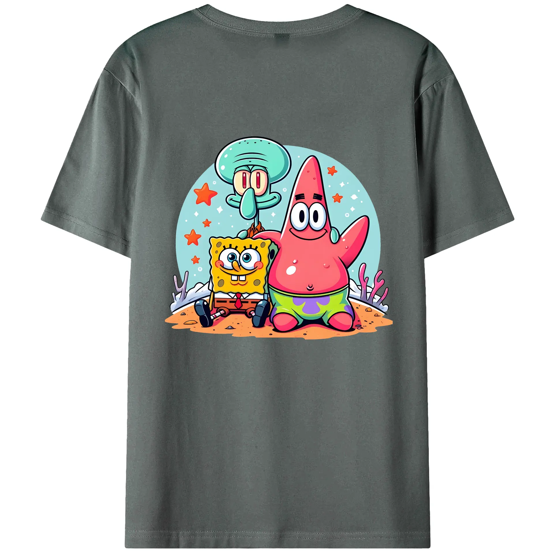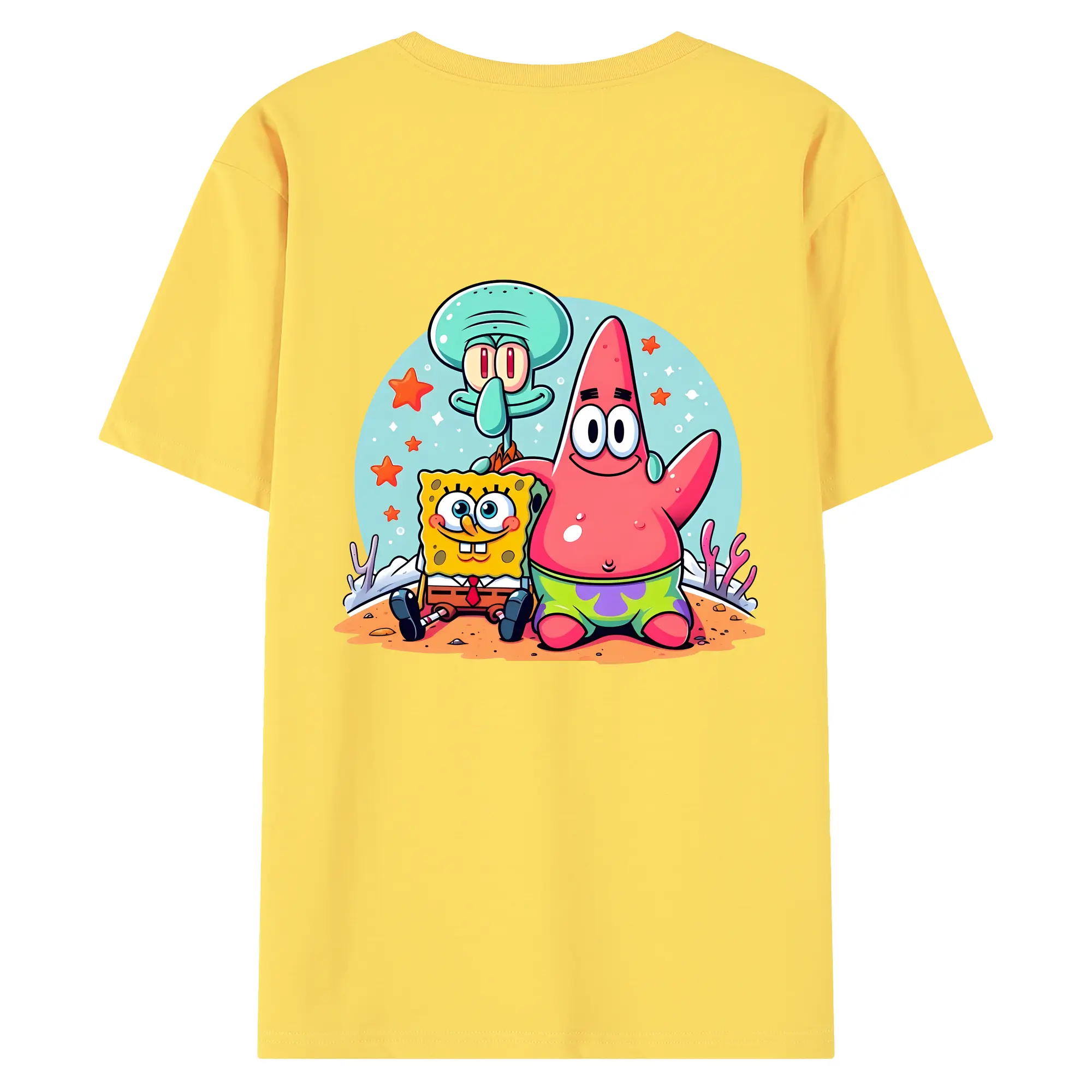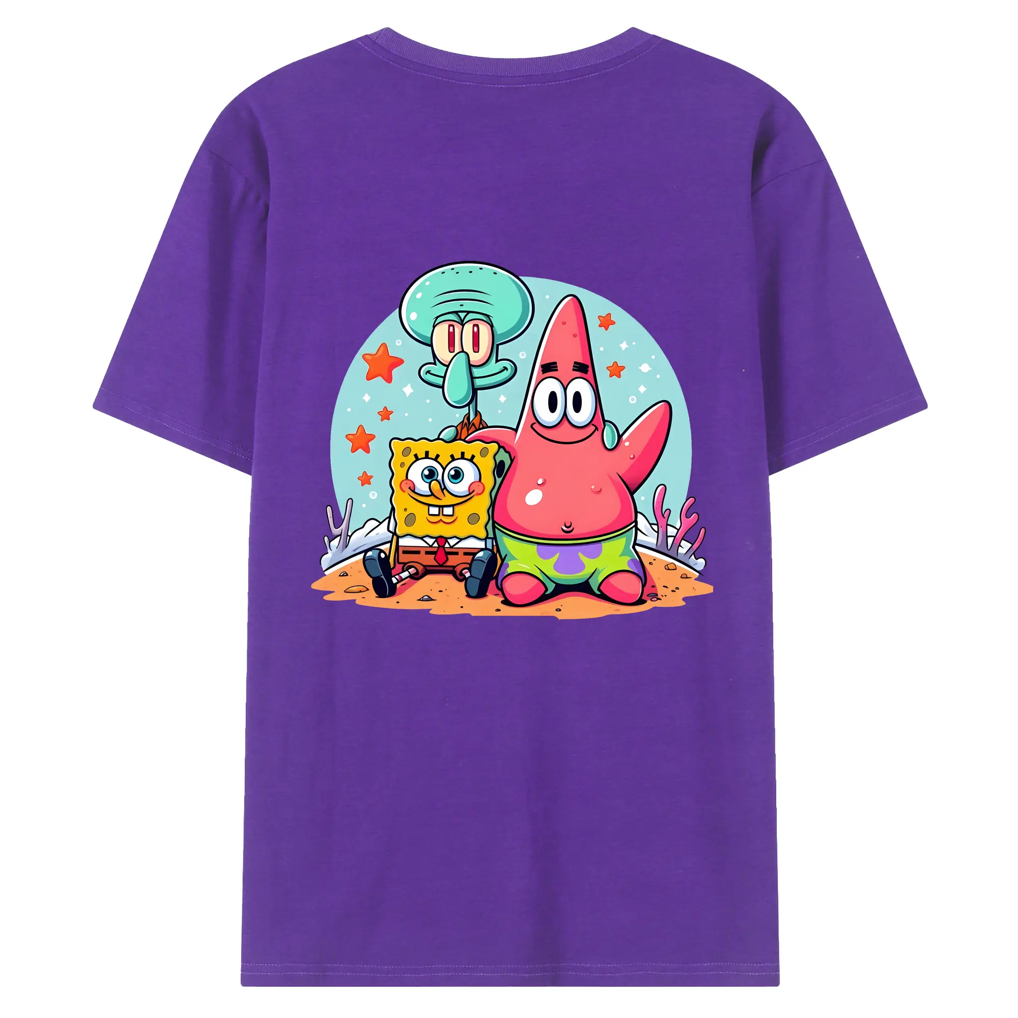 スポンジボブ グッズ パトリック・スター - 綿100% 半袖Tシャツ ・ フロントプリント ・ 快適 通気性 ・ 日常使い 散歩 スポーツ用