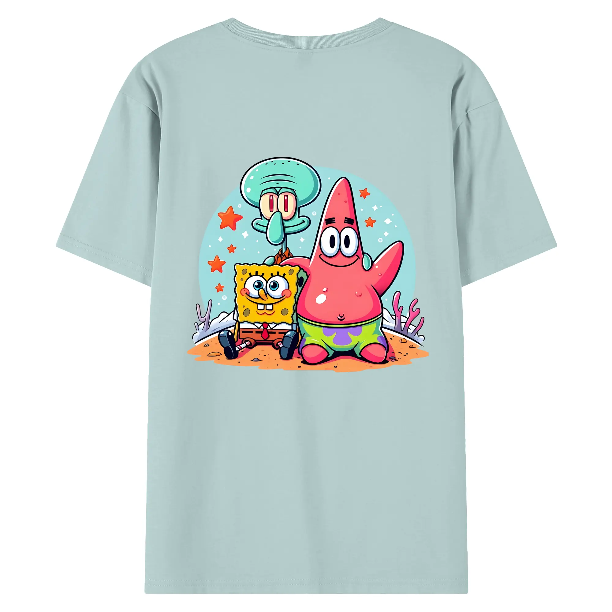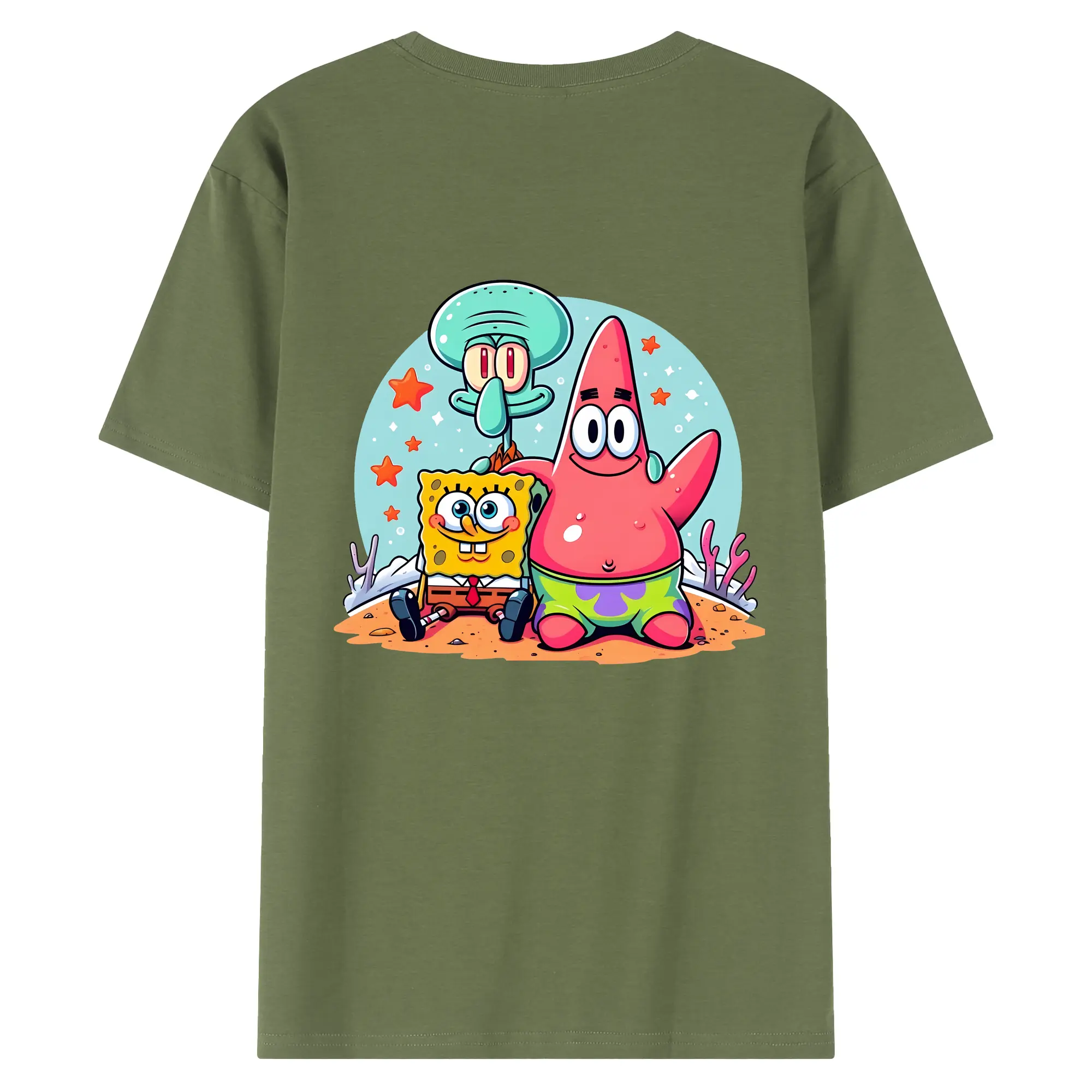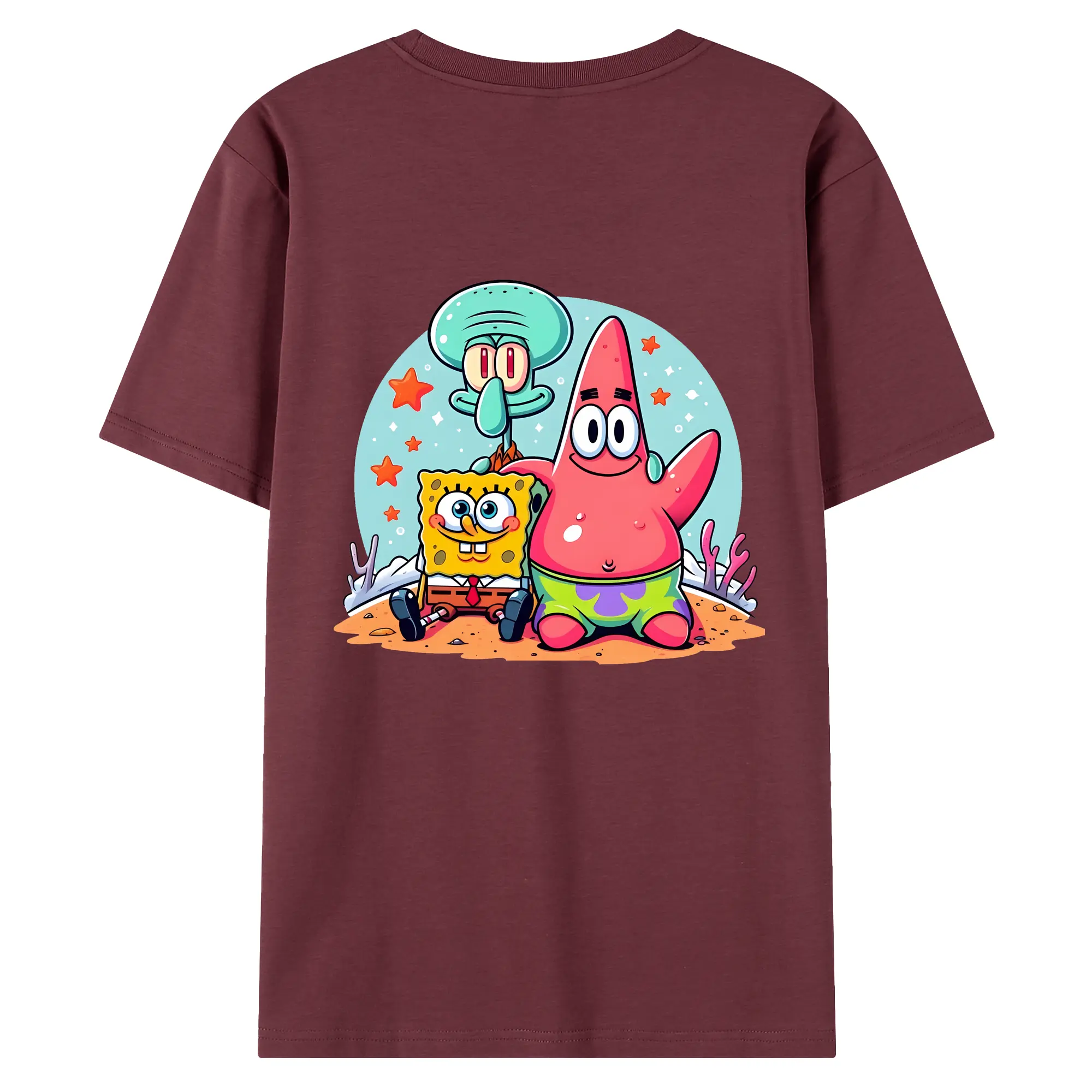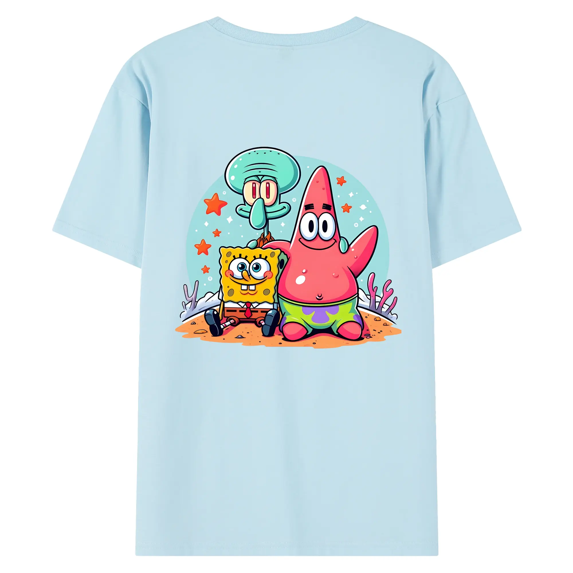スポンジボブ グッズ パトリック・スター - 綿100% 半袖Tシャツ ・ フロントプリント ・ 快適 通気性 ・ 日常使い 散歩 スポーツ用