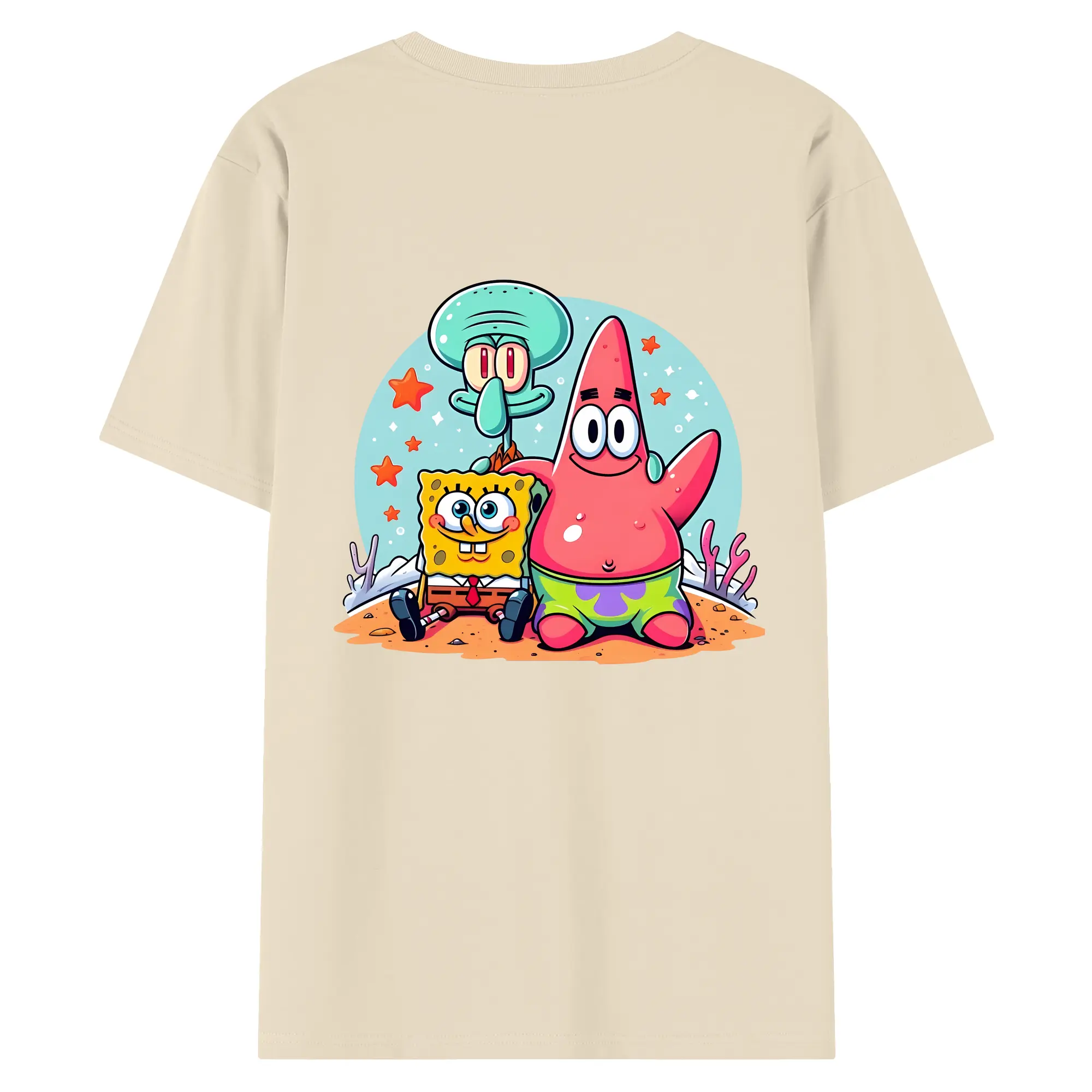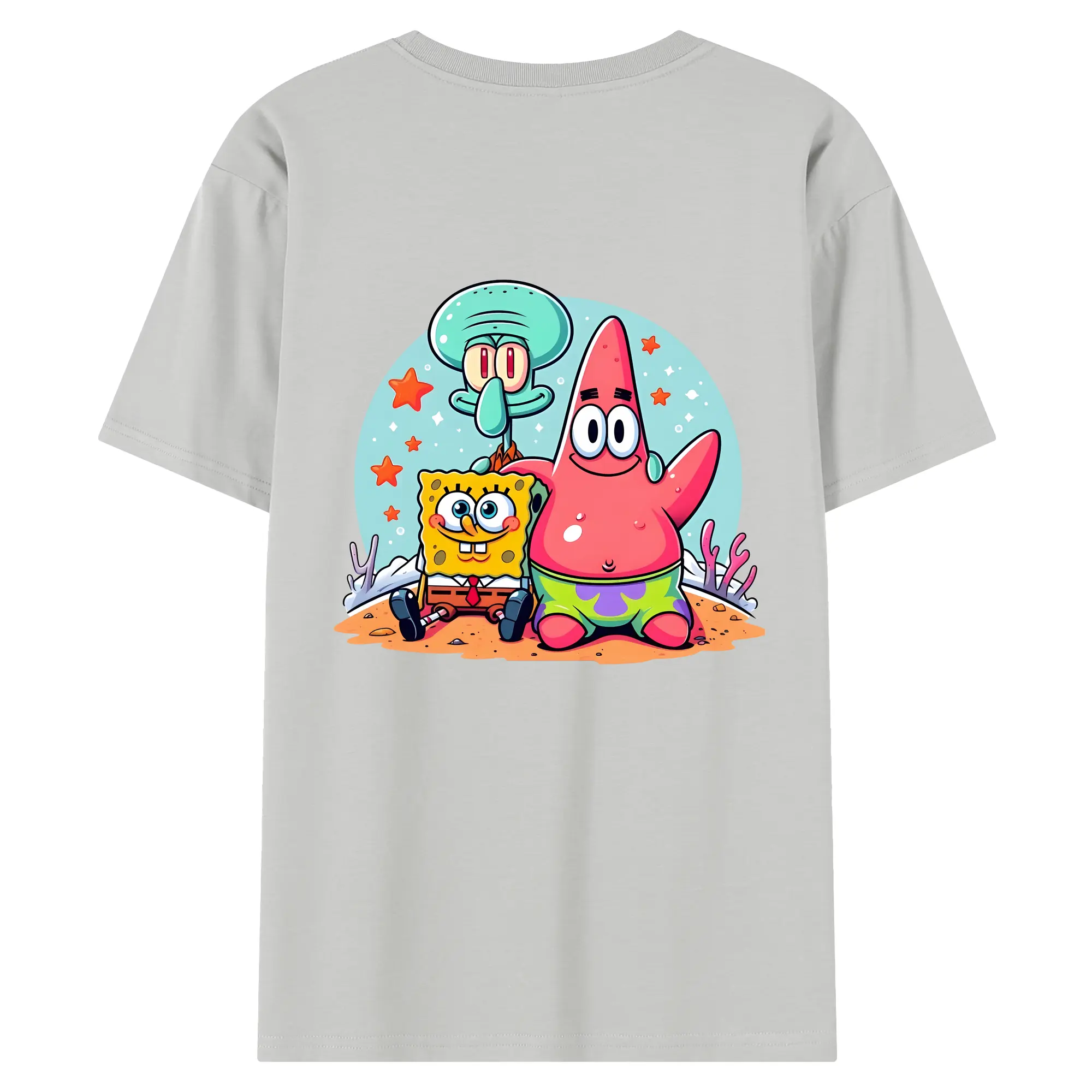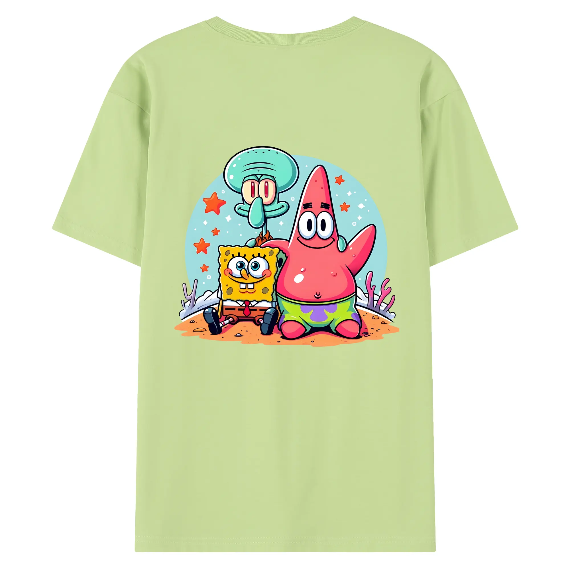 スポンジボブ グッズ パトリック・スター - 綿100% ヴィンテージ風 半袖Tシャツ ・ 背面プリント ・ 柔らか肌触り ・ 通気性 快適 ・ スポーツ カジュアル 外出用