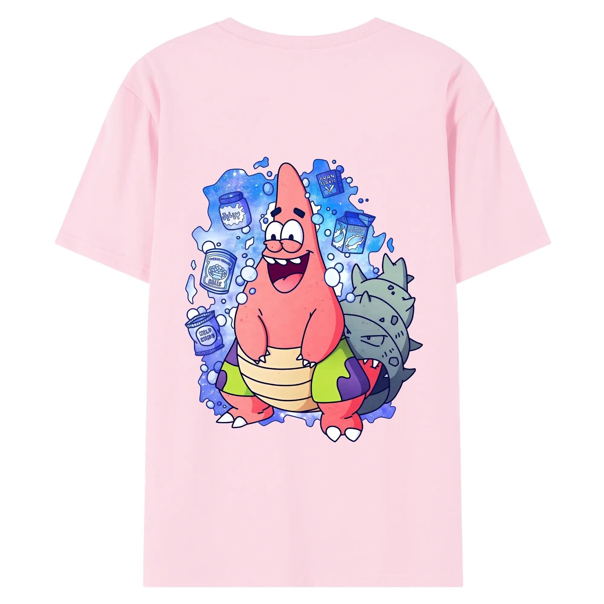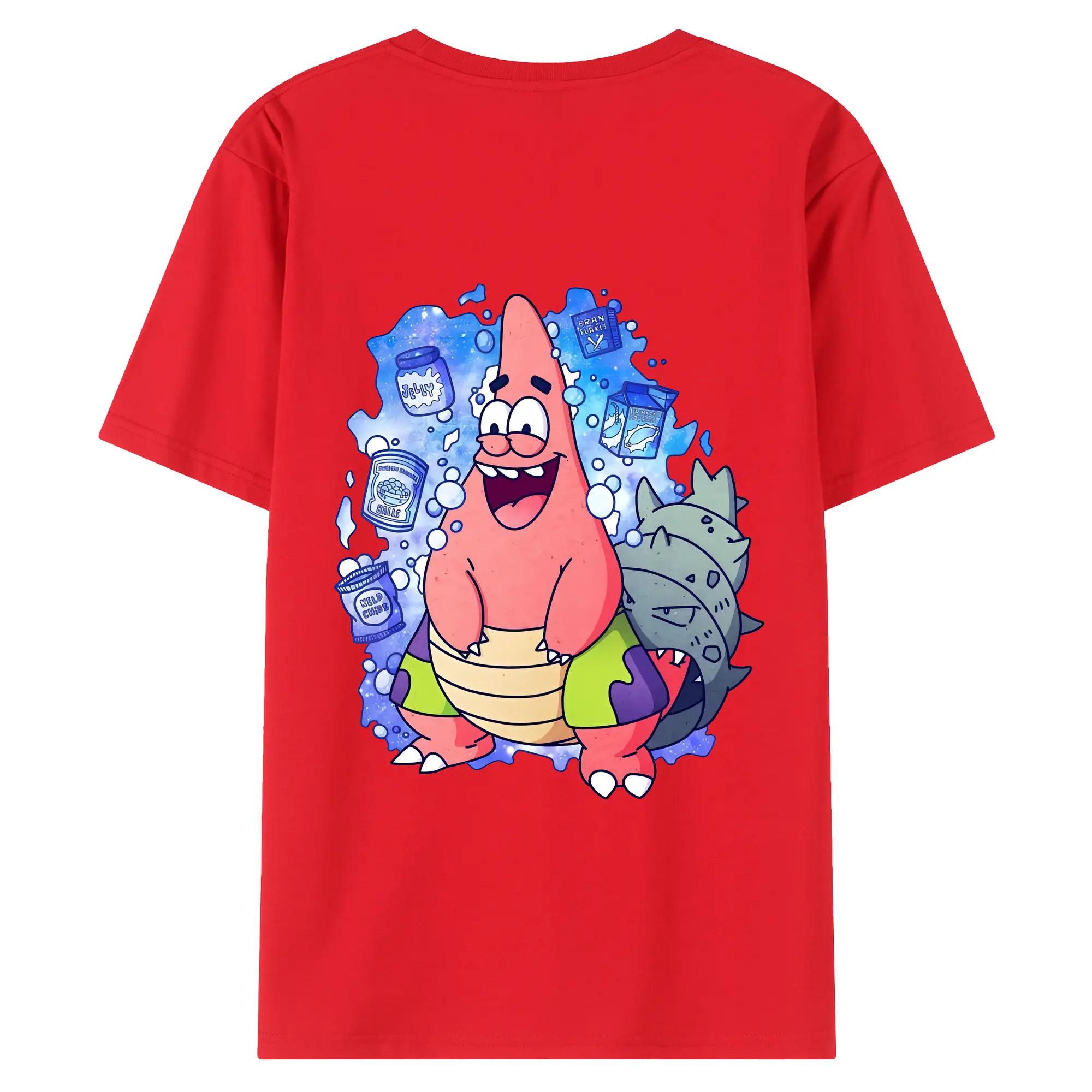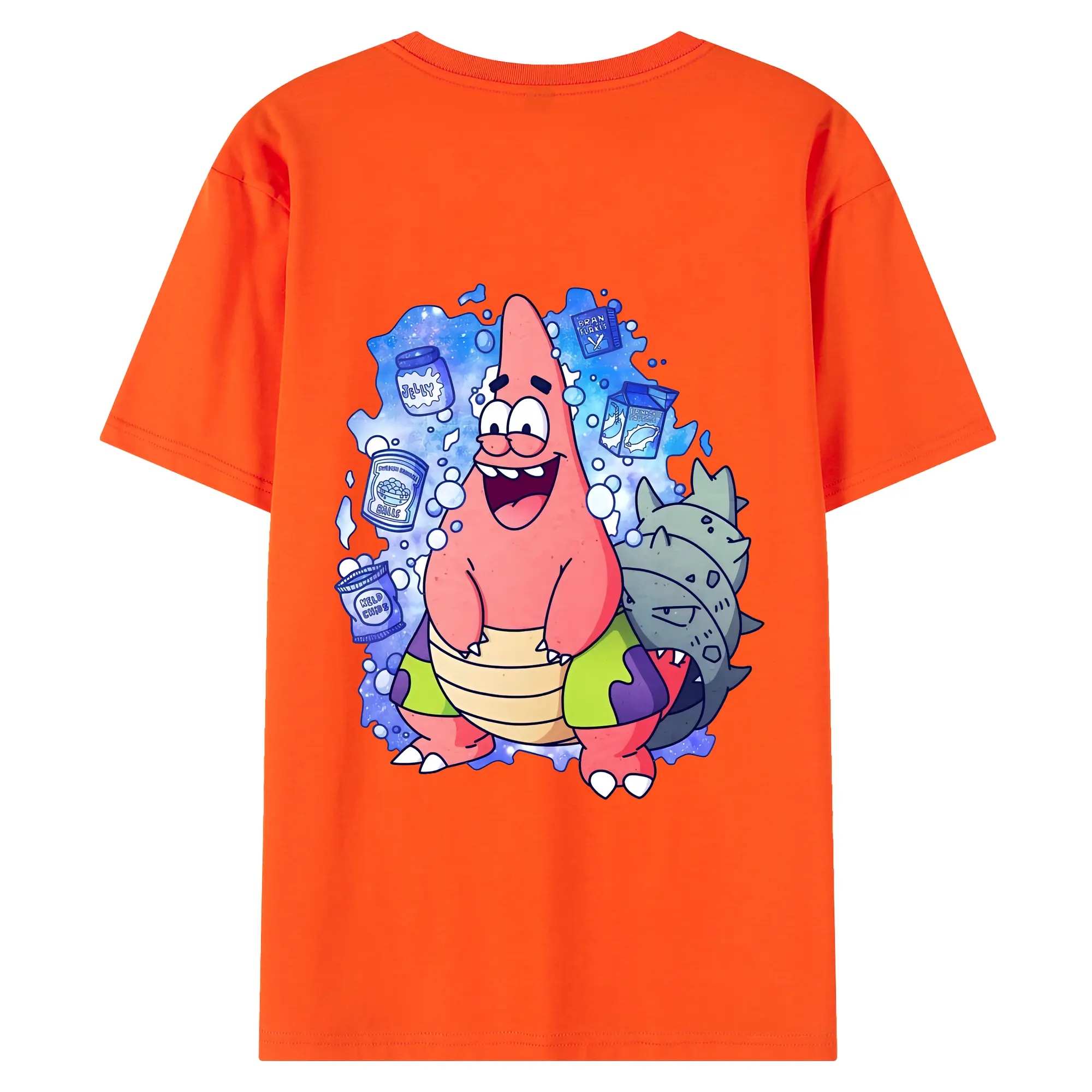 スポンジボブ グッズ パトリック・スター - 綿100% 半袖Tシャツ ・ フロントプリント ・ 快適 通気性 ・ 日常使い 散歩 スポーツ用