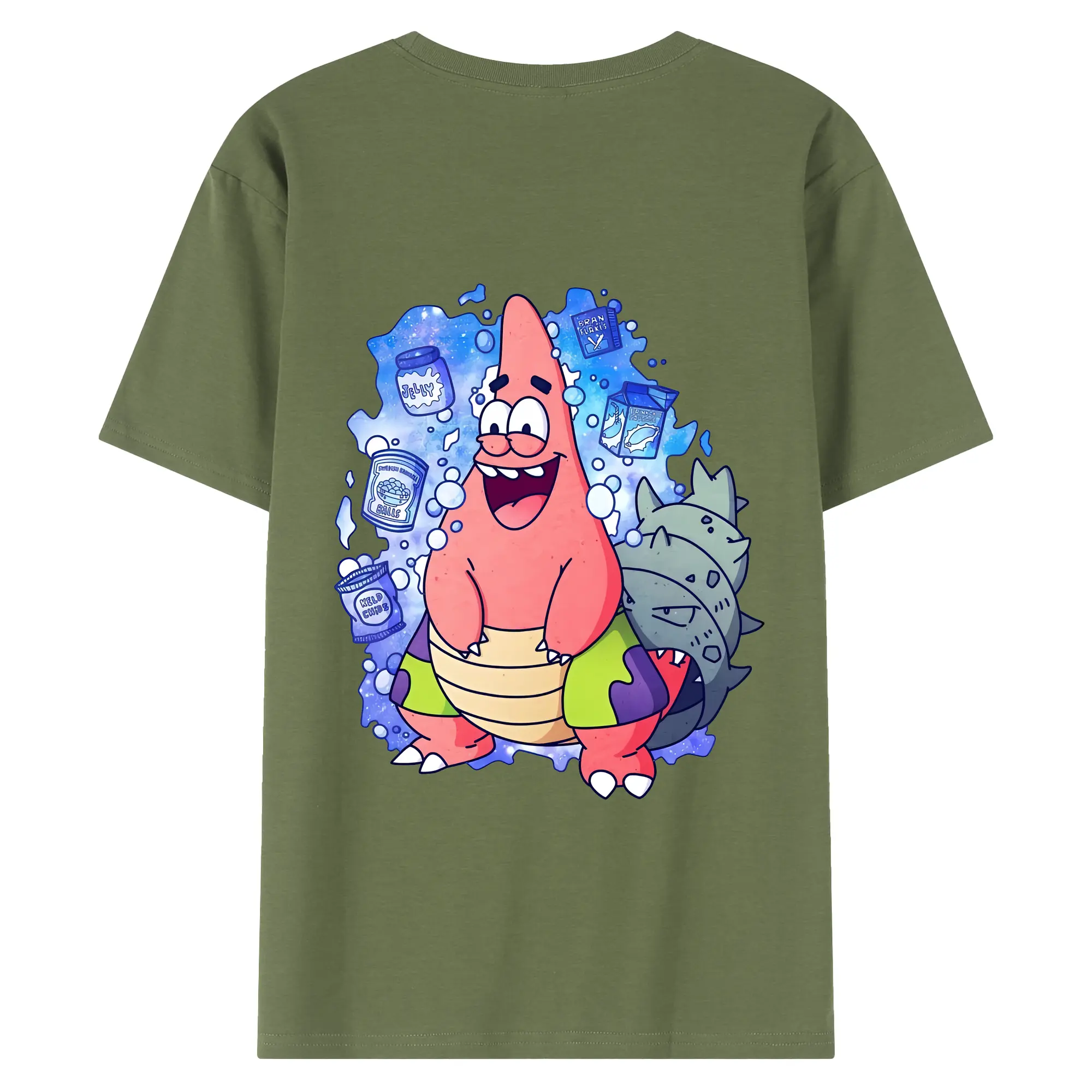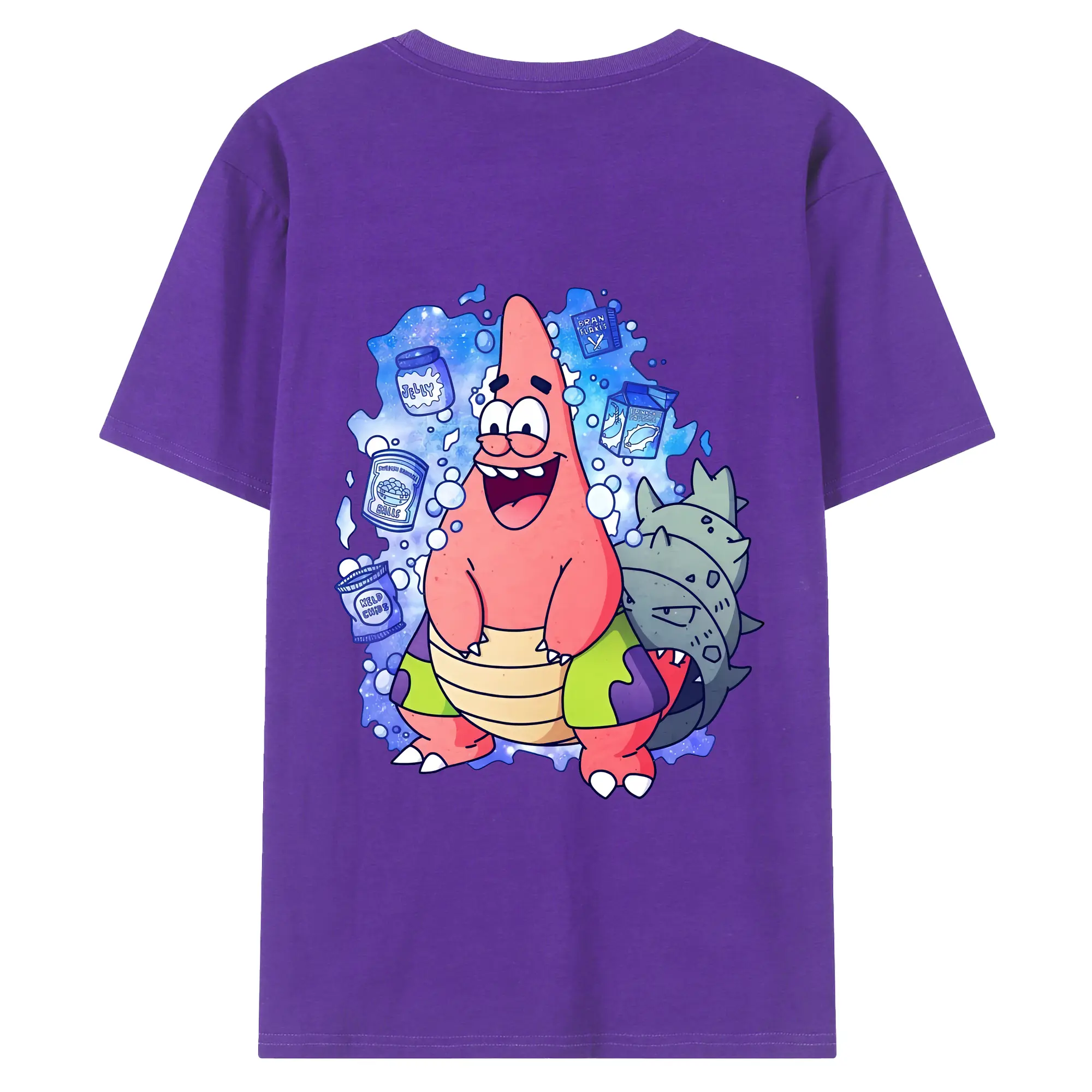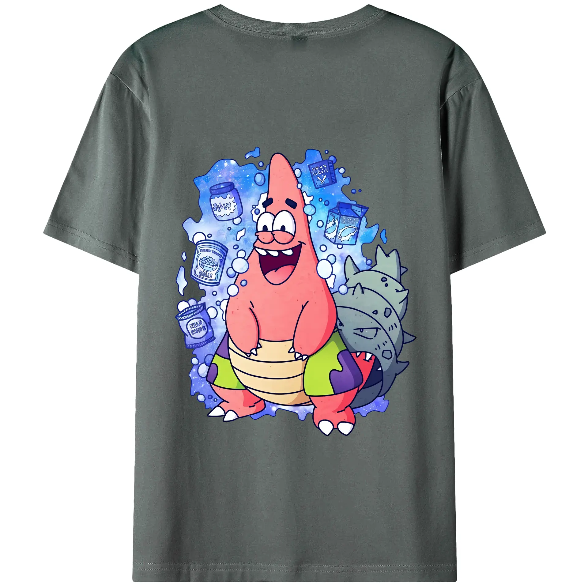 スポンジボブ グッズ パトリック・スター - 綿100% 半袖Tシャツ ・ フロントプリント ・ 快適 通気性 ・ 日常使い 散歩 スポーツ用