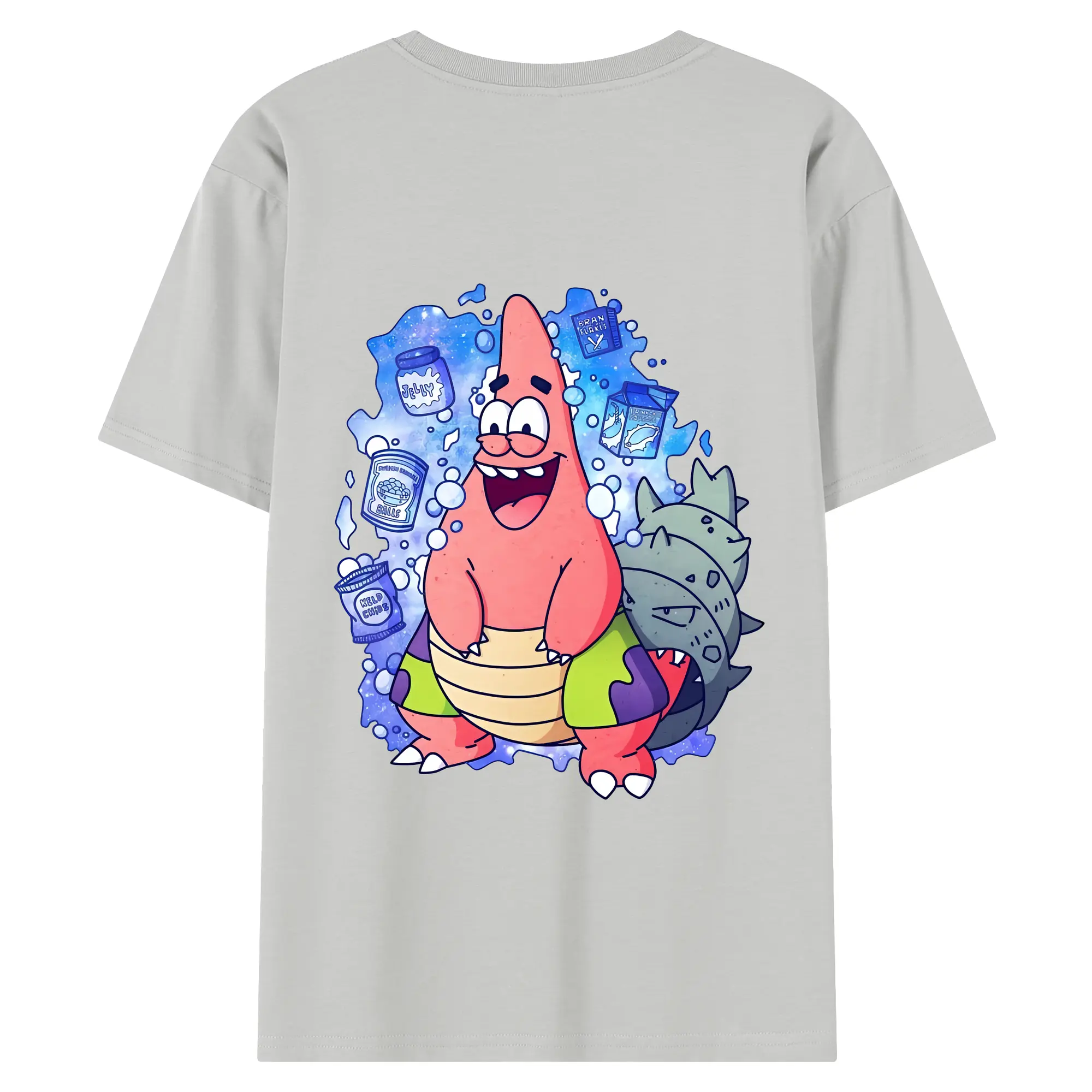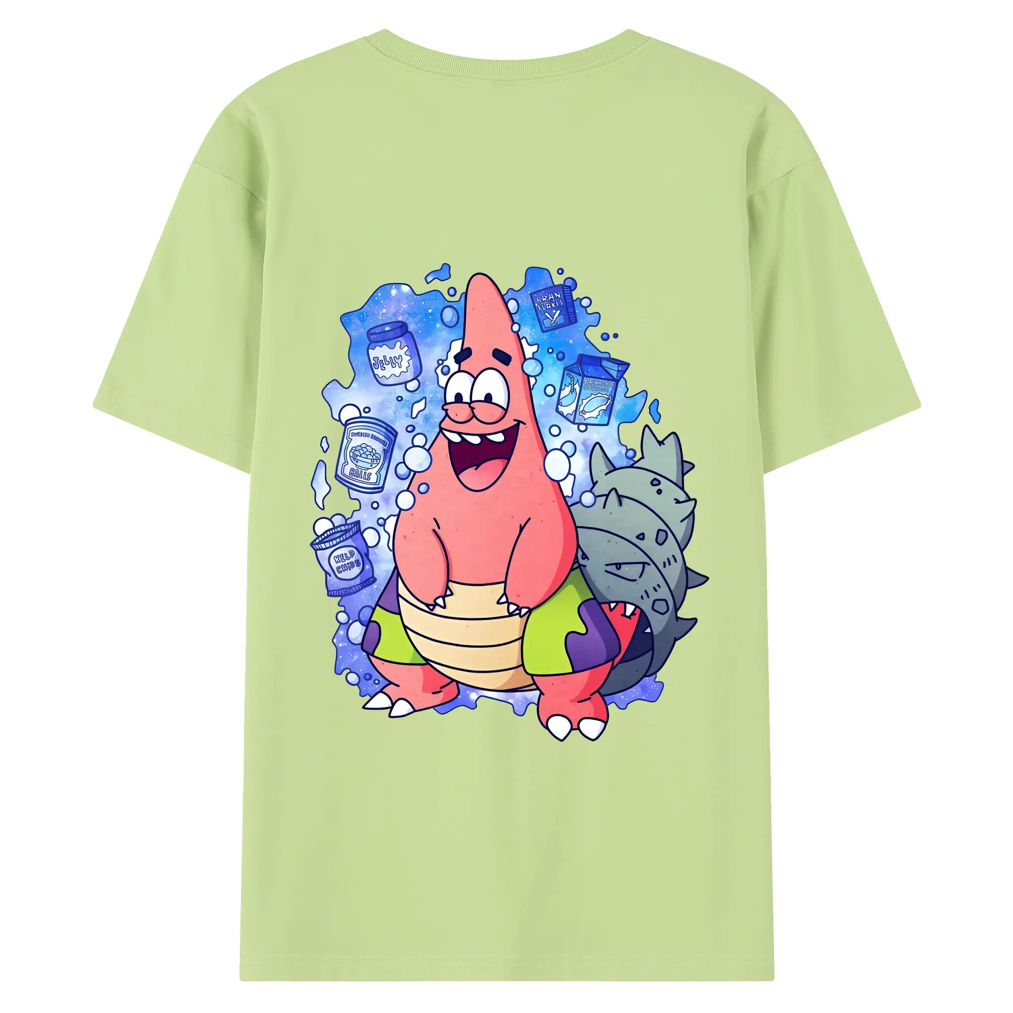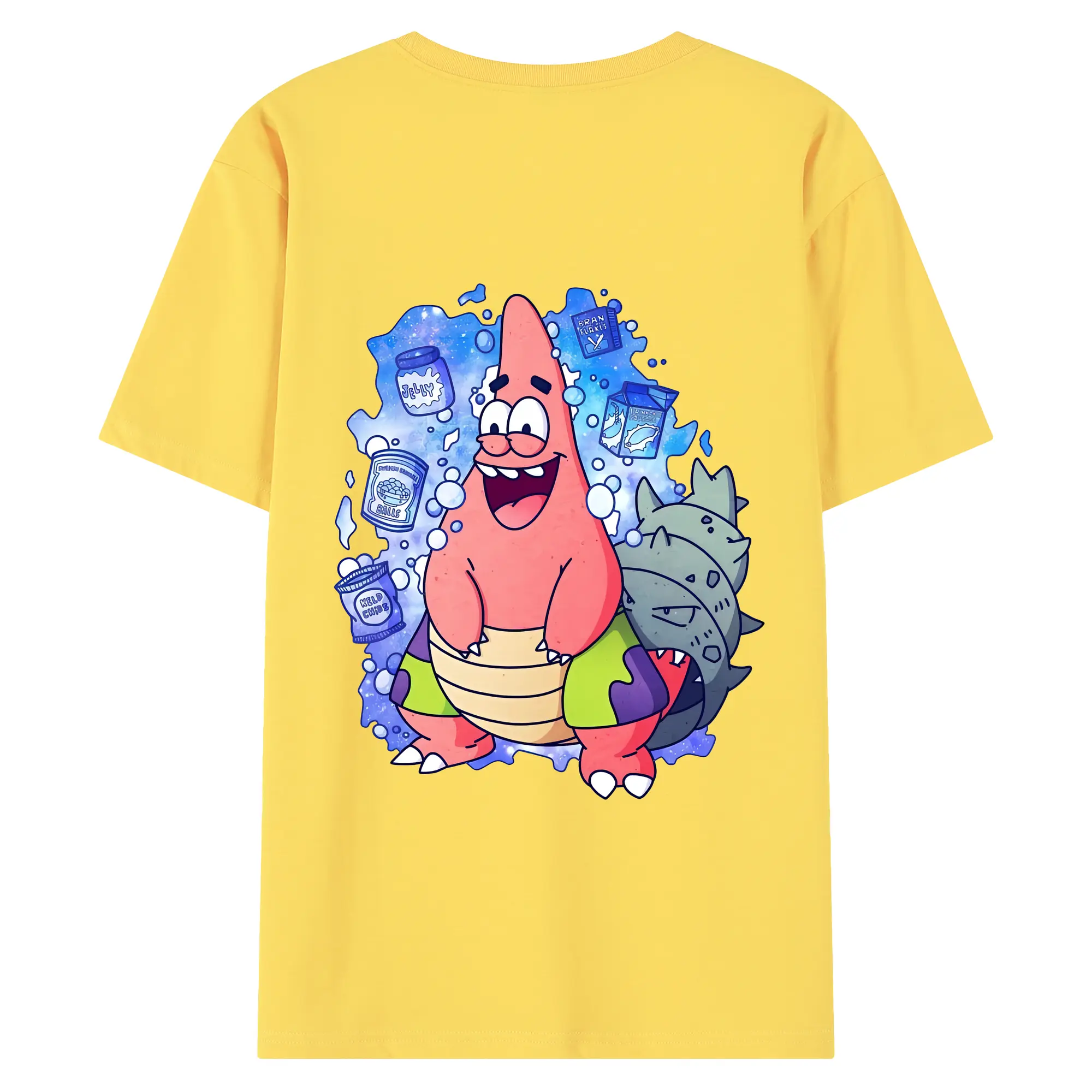 スポンジボブ グッズ パトリック・スター - 綿100% ヴィンテージ風 半袖Tシャツ ・ 背面プリント ・ 柔らか肌触り ・ 通気性 快適 ・ スポーツ カジュアル 外出用