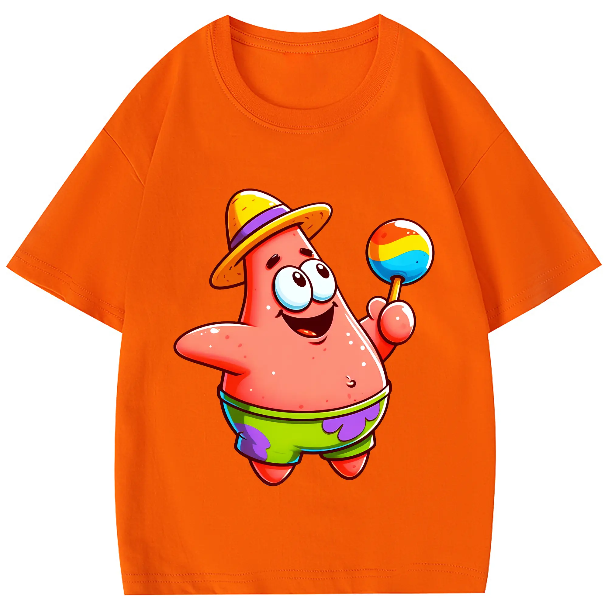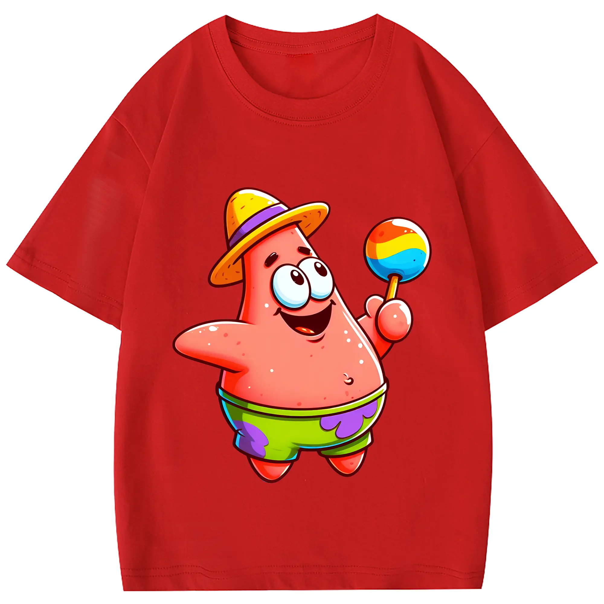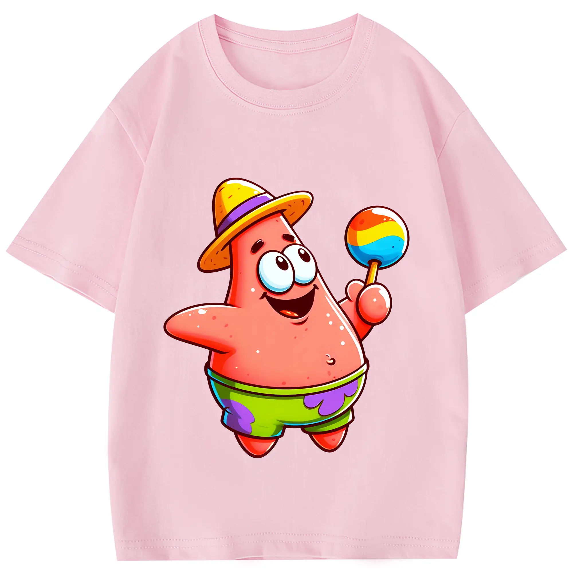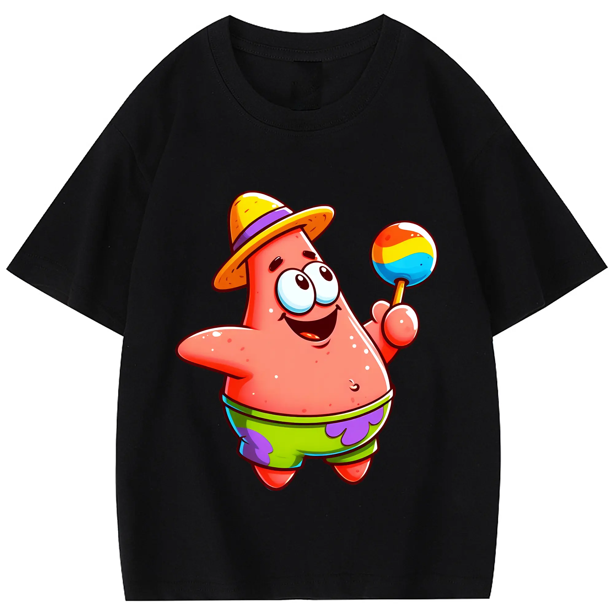 スポンジボブ グッズ パトリック・スター - 綿100% 半袖Tシャツ ・ フロントプリント ・ 快適 通気性 ・ 日常使い 散歩 スポーツ用