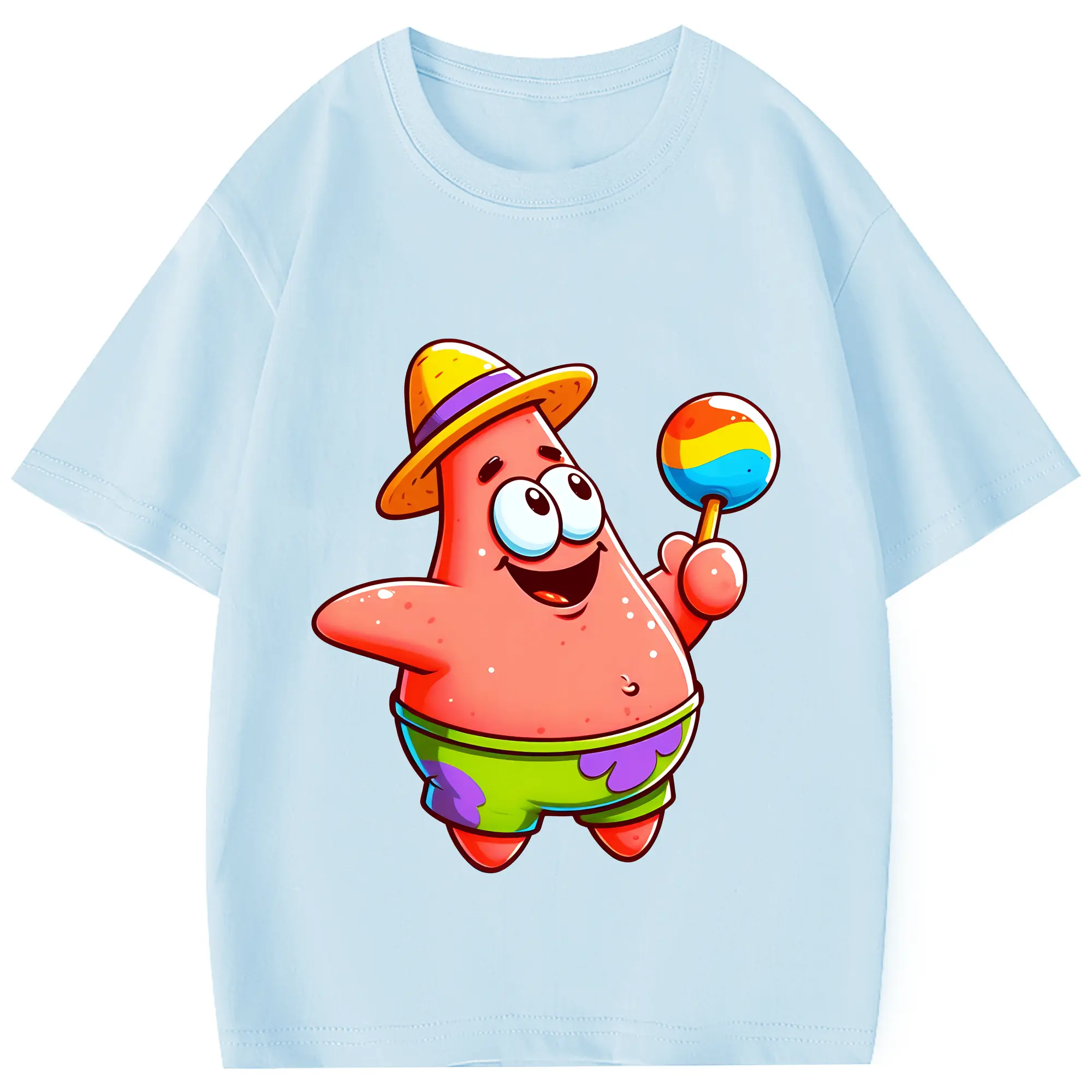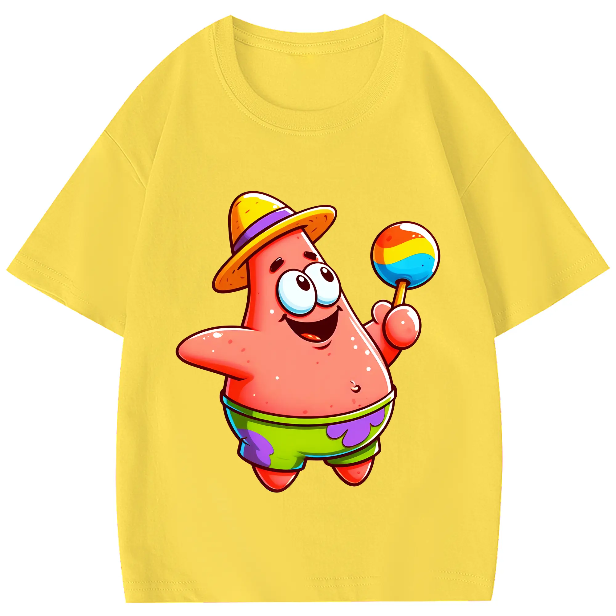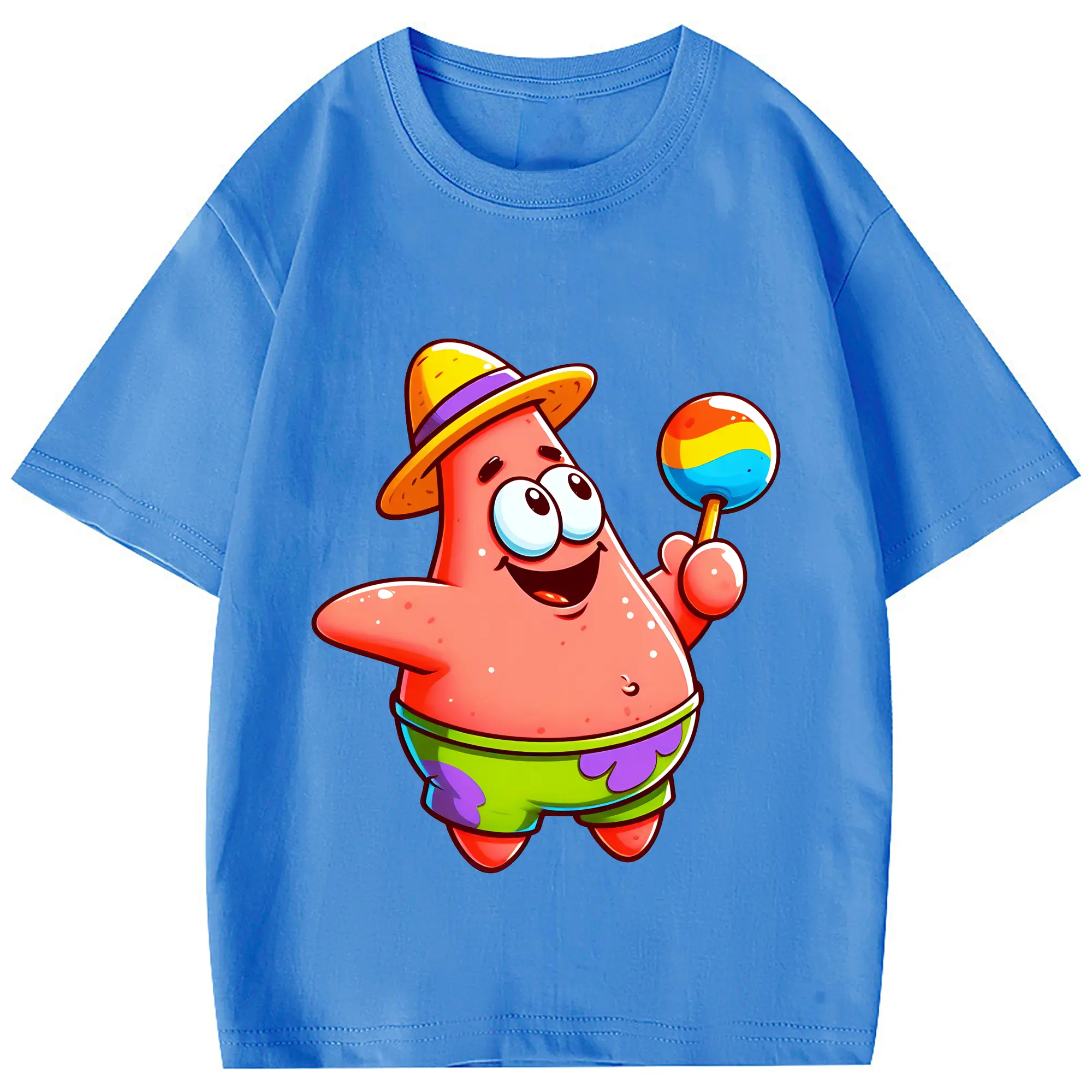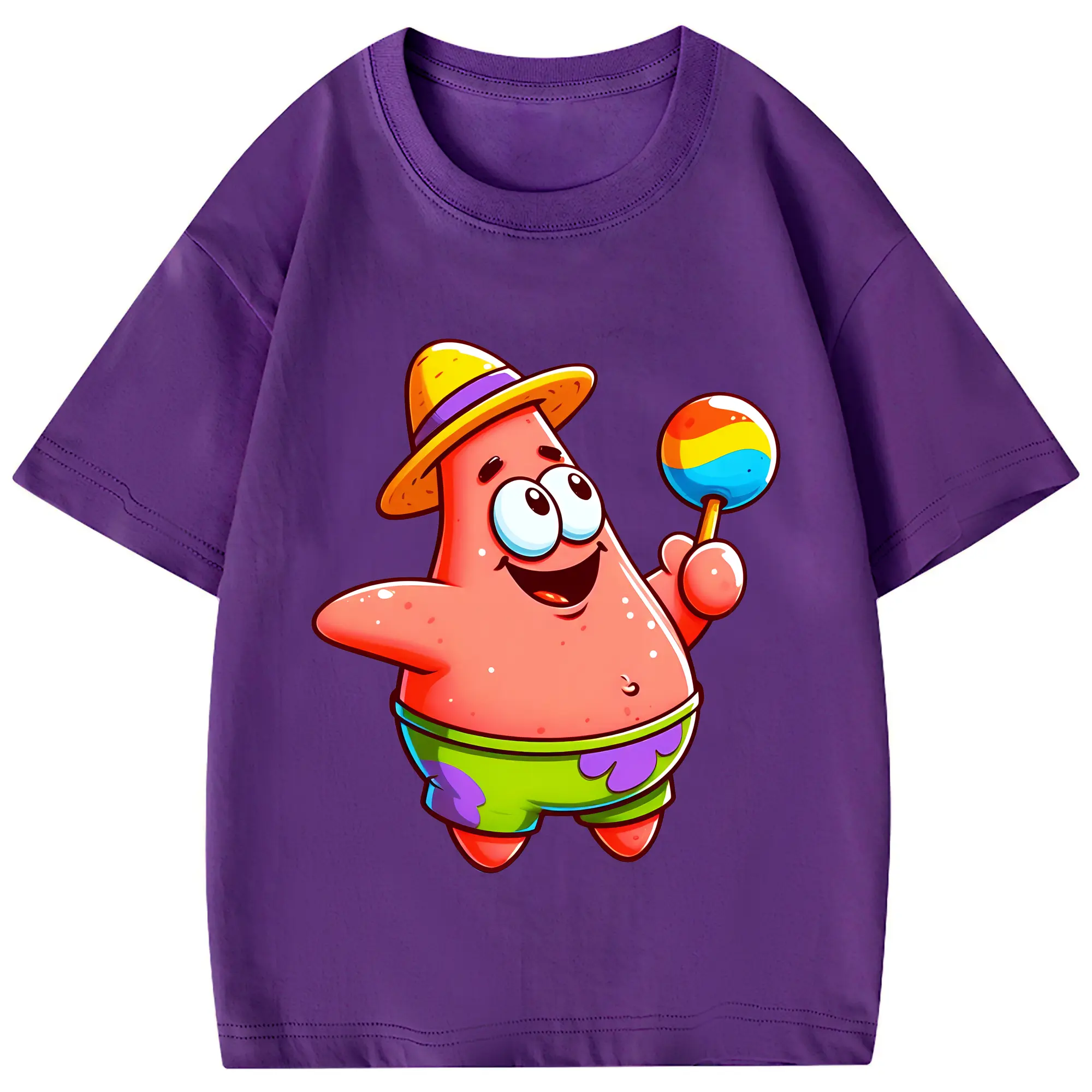 スポンジボブ グッズ パトリック・スター - 綿100% 半袖Tシャツ ・ フロントプリント ・ 快適 通気性 ・ 日常使い 散歩 スポーツ用