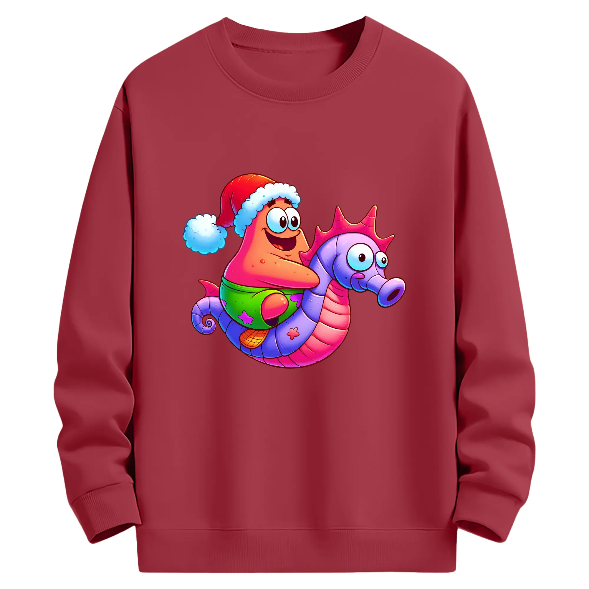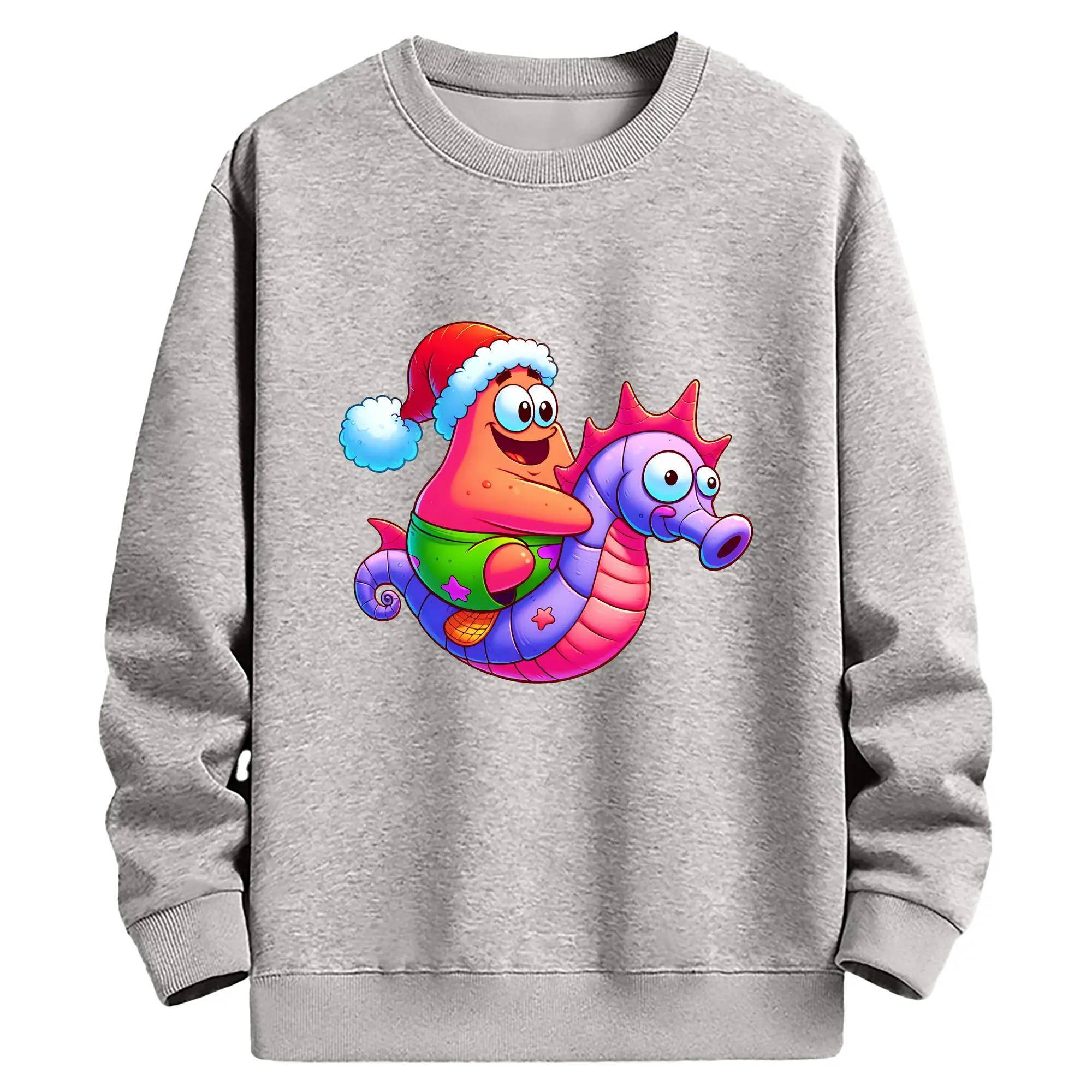 スポンジボブ グッズ パトリック・スター - 薄手 クルーネック スウェット 裏毛260g · ポリエステル 春秋向け カジュアル 男女兼用 · トレーナー デイリー スポーツ 散歩に最適
