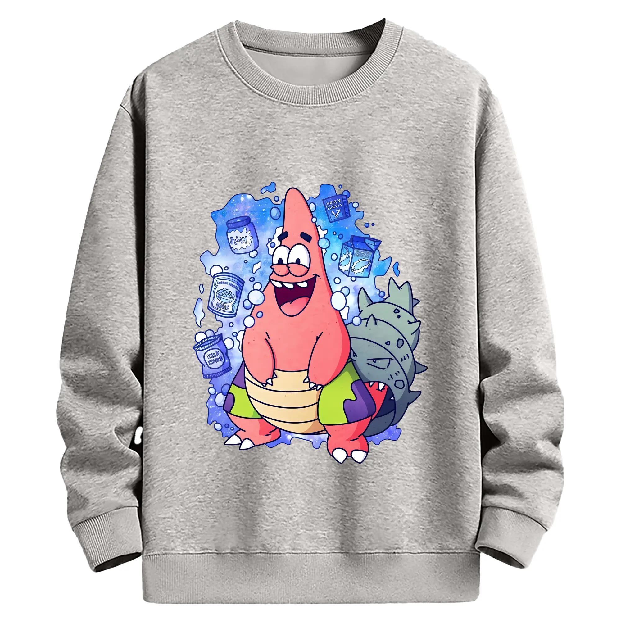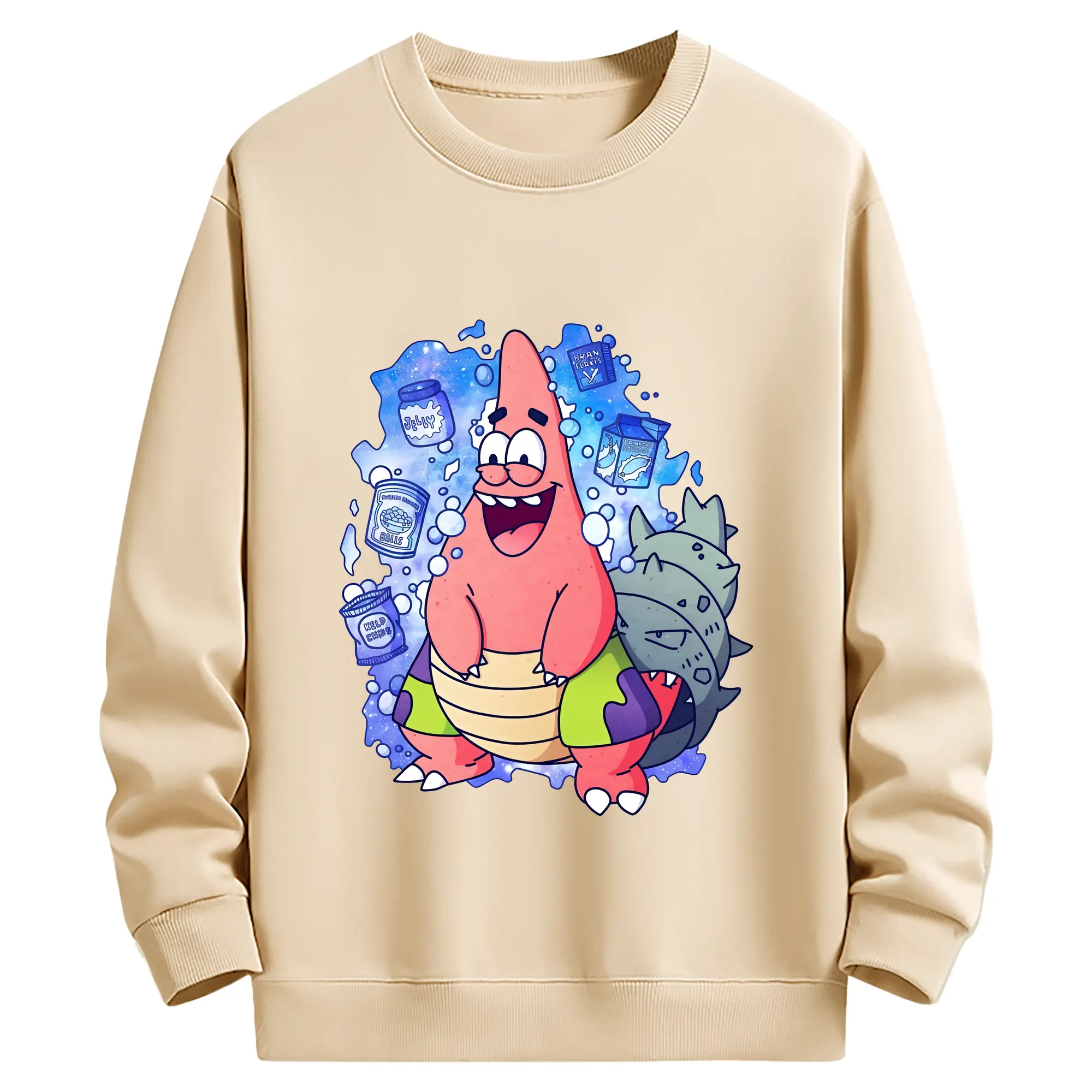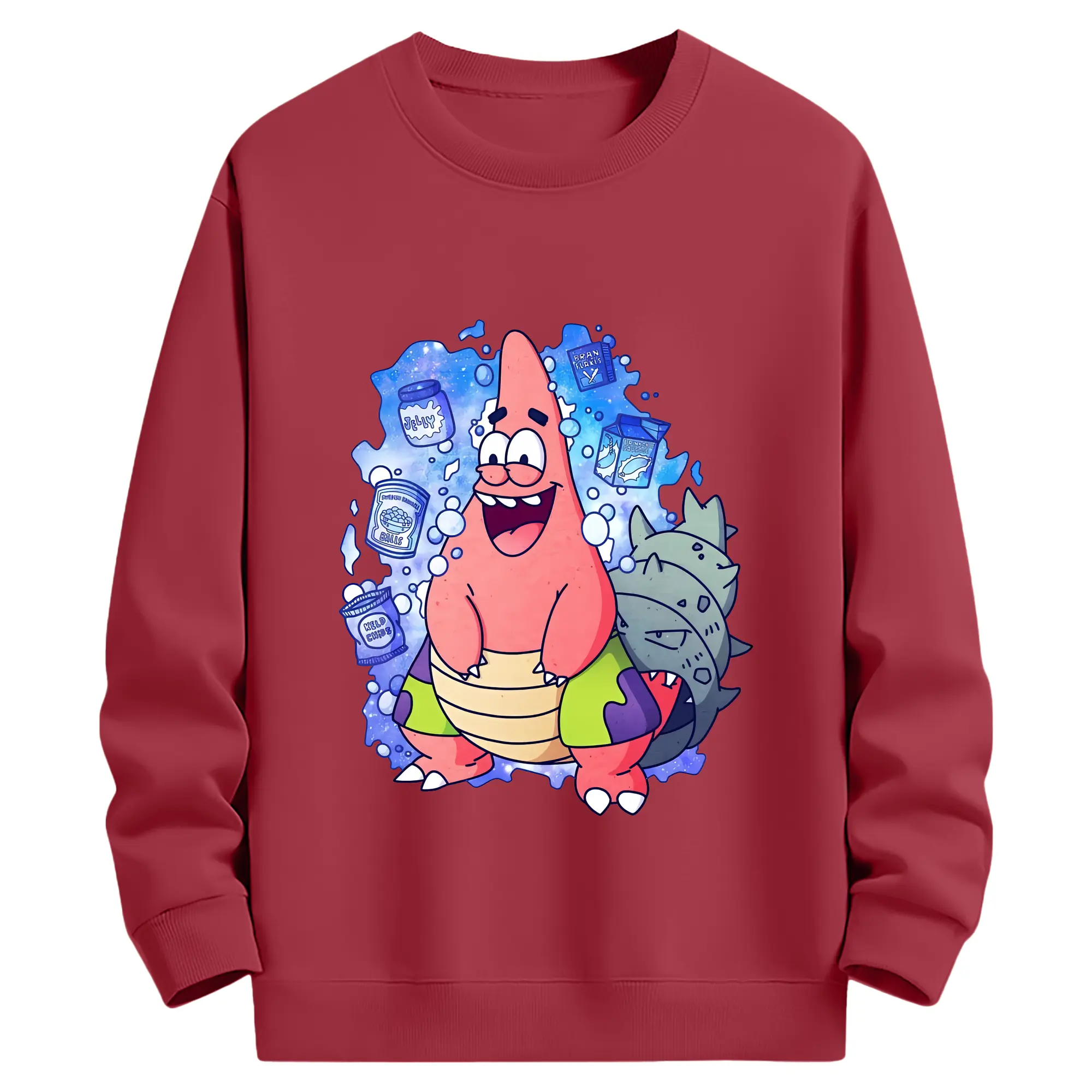 スポンジボブ グッズ パトリック・スター - 薄手 クルーネック スウェット 裏毛260g · ポリエステル 春秋向け カジュアル 男女兼用 · トレーナー デイリー スポーツ 散歩に最適