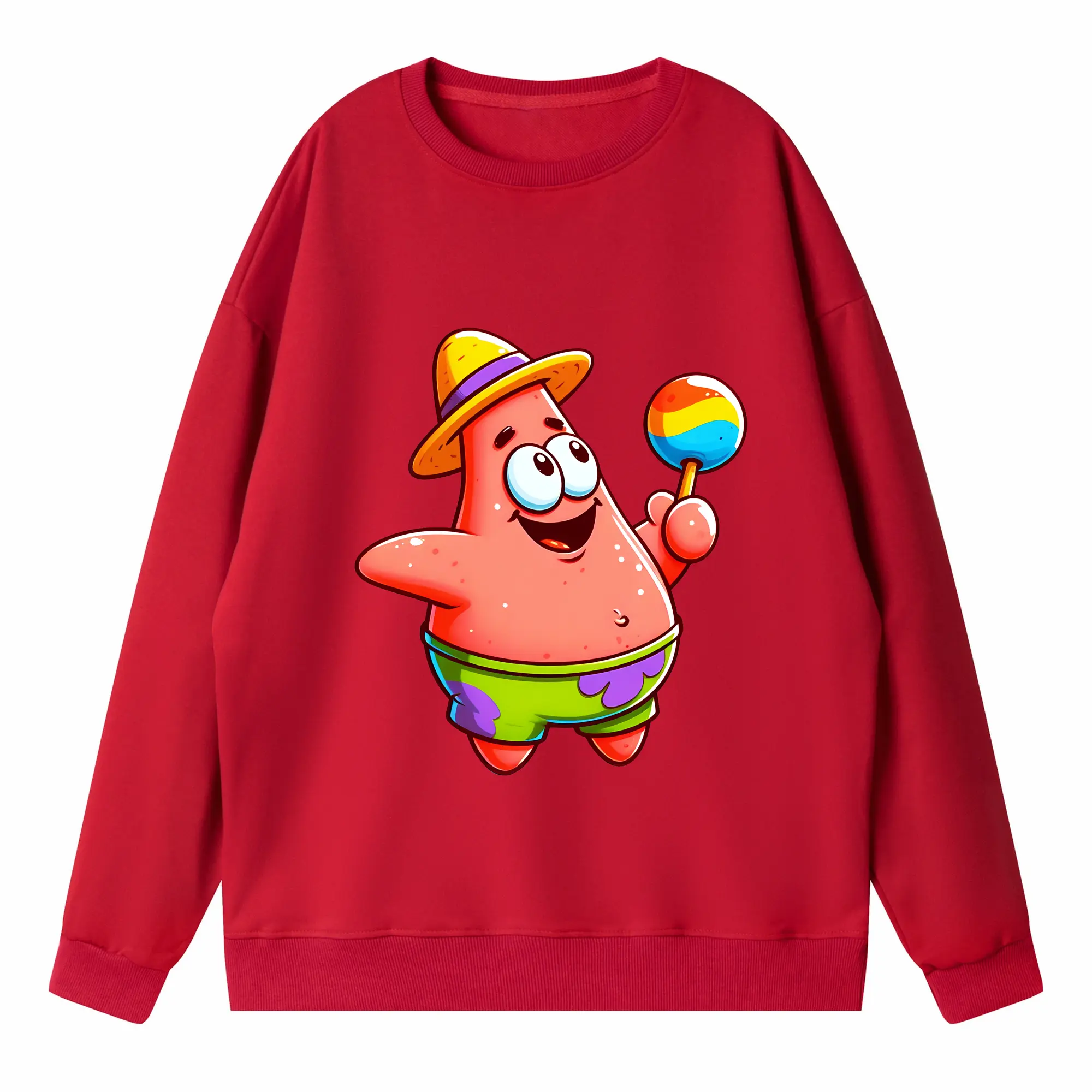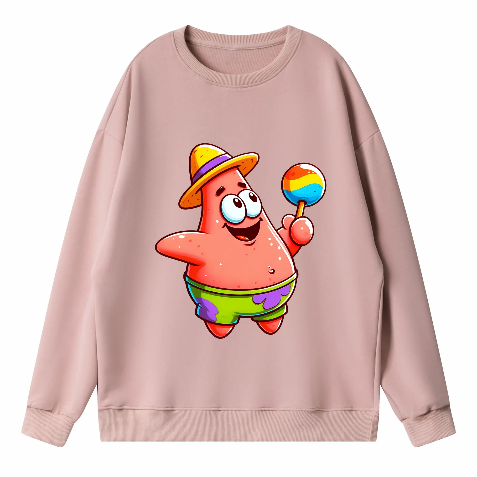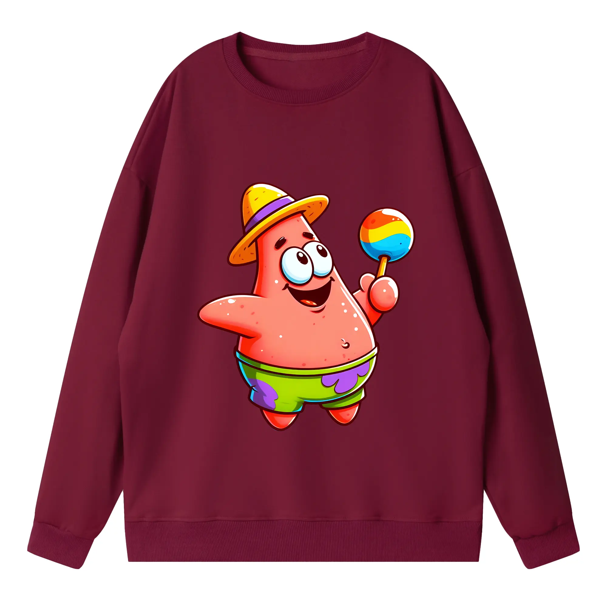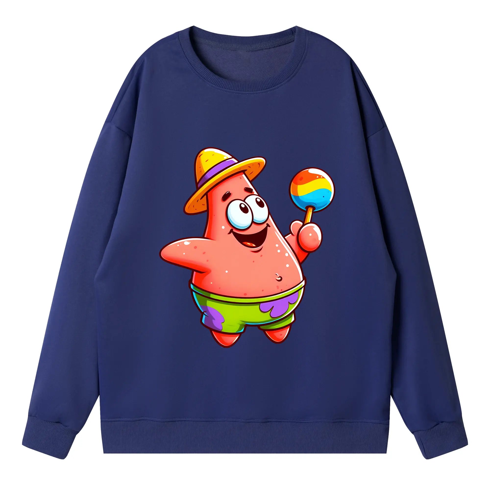 スポンジボブ グッズ パトリック・スター - 高品質 クルーネック スウェット ・ コットン59% ポリエステル41% ・ ユニセックス 長袖 トレーナー ・ カジュアル デイリー スポーツ 散歩用